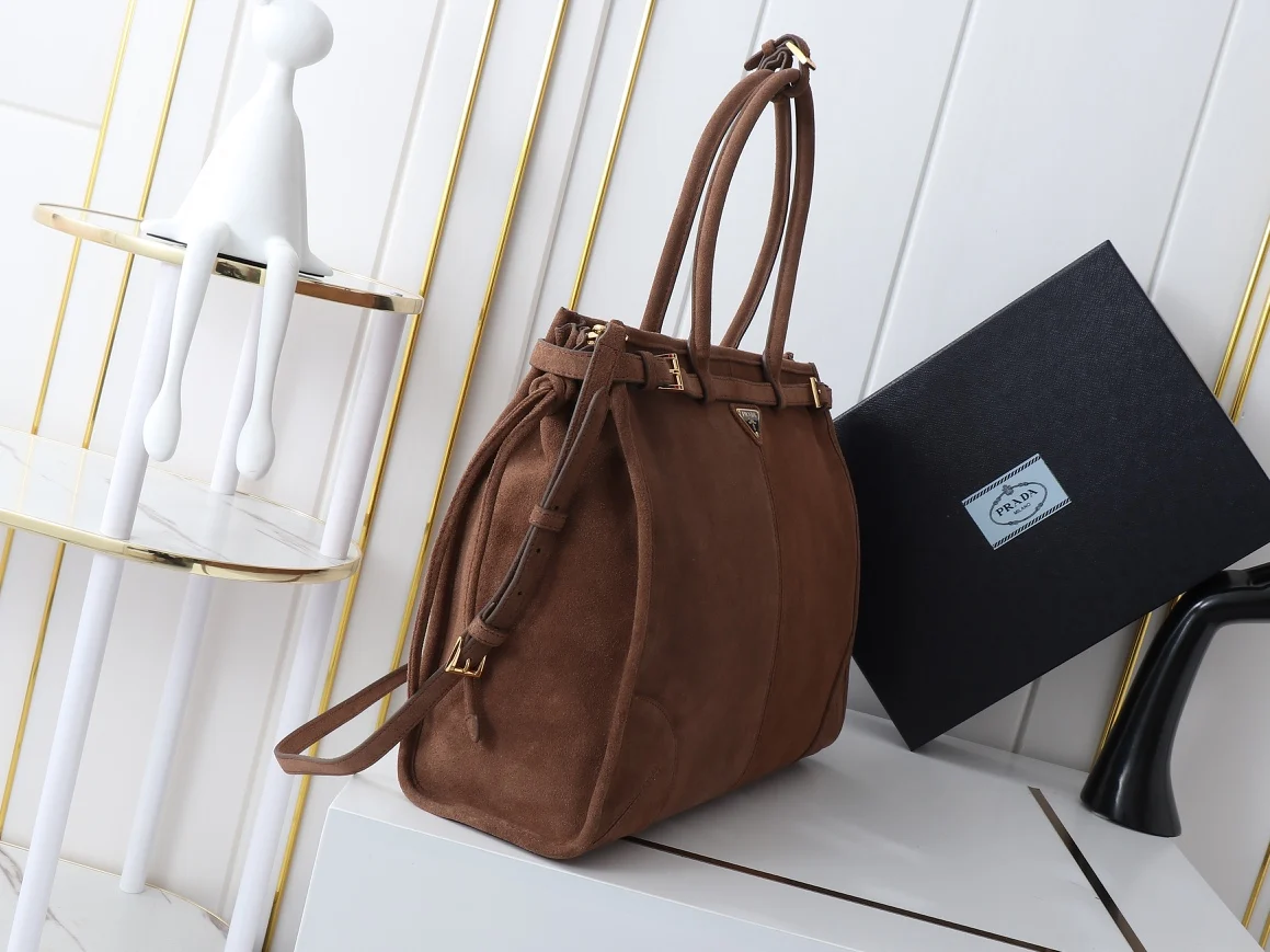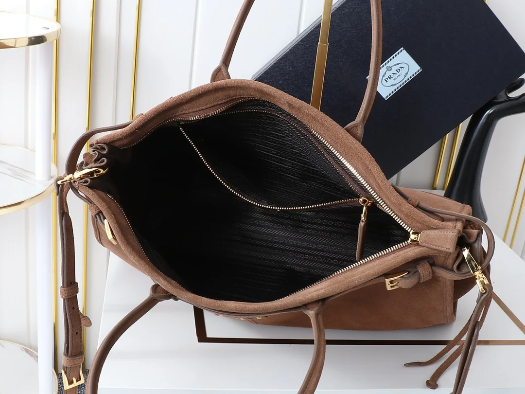 普拉达1BA439 绒面麂皮特大号Soft Lux 手提斜挎包