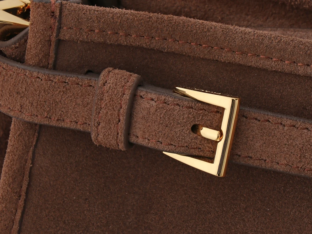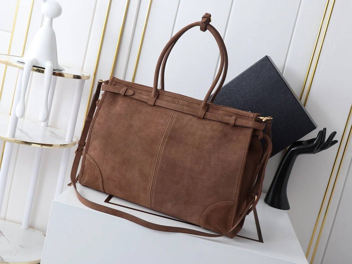 新款绒面麂皮(特大号)Soft Lux到货 这款手提斜挎包采用进口磨砂皮 散发出古典气息 配有一条可拆卸调节的长肩带 方便不同场合搭配 容量空间非常大 巨巨好用 绝对是时商达人们的必备款 赶紧把这款复古格调手拎包带回家吧