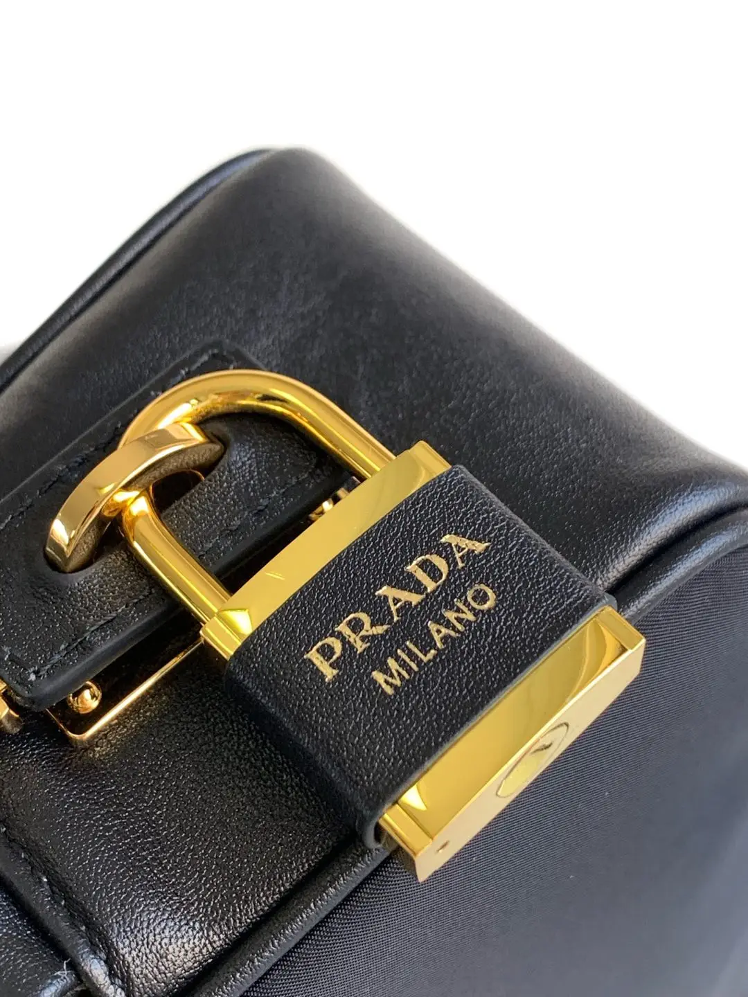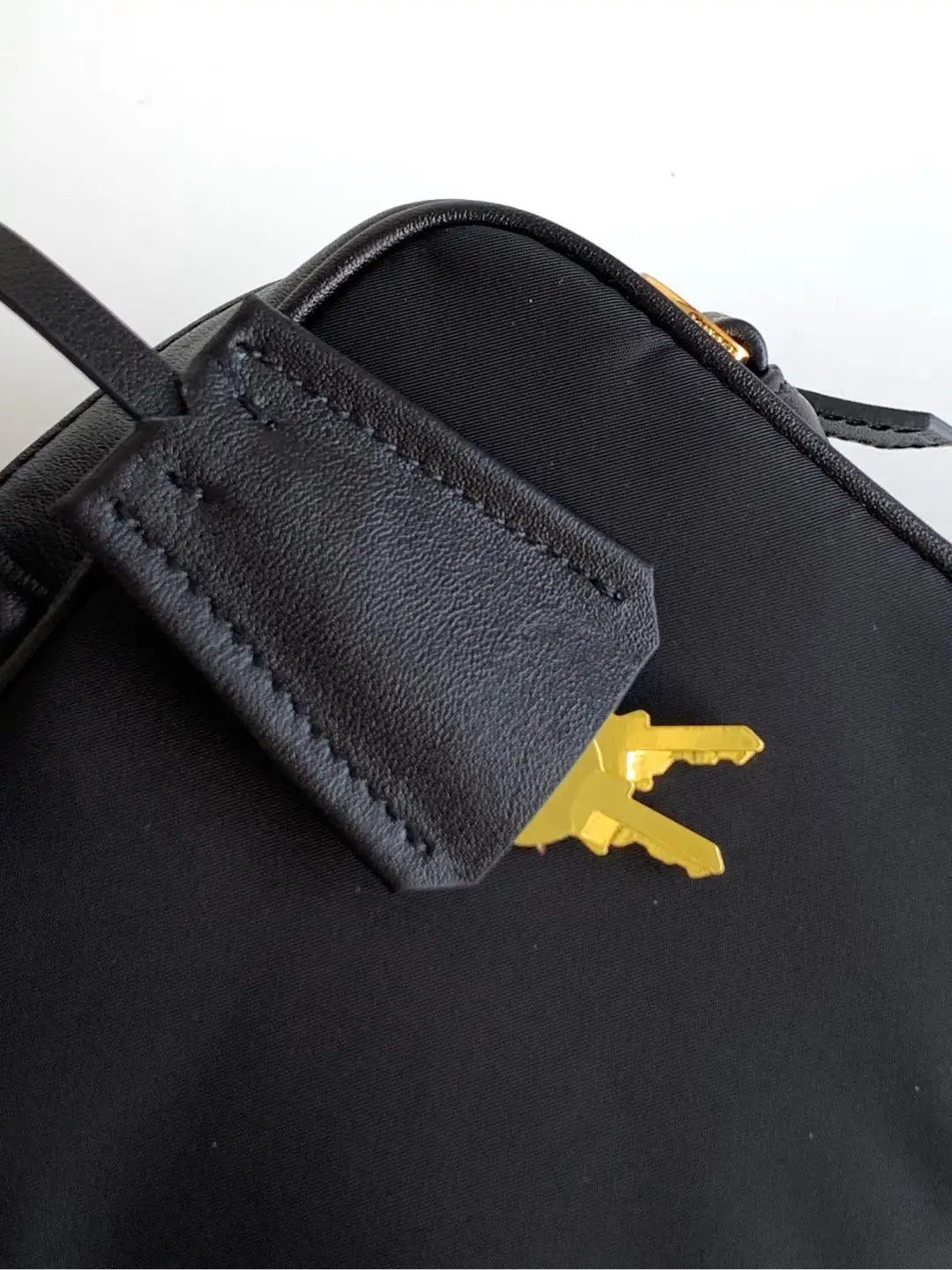 这款Tessuto Tocker手提包造型挺括而小巧 采用再生尼龙 Re-Nylon 和进口小牛皮材质 配有一条可拆卸长肩带 精致优雅 饰有金属五金配件 拉链和最爱挂锁开合增添别致素 容量空间大 又是一款永久不过爆款赶紧入手吧