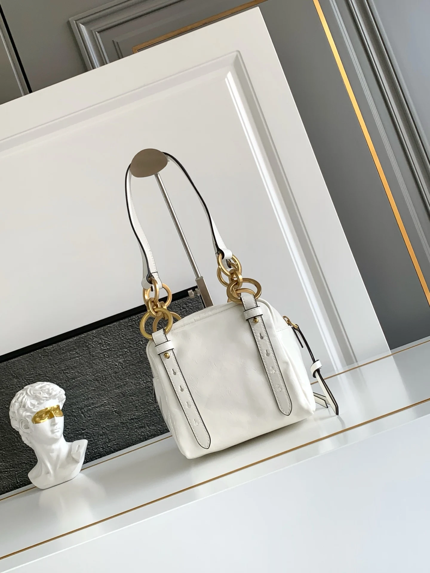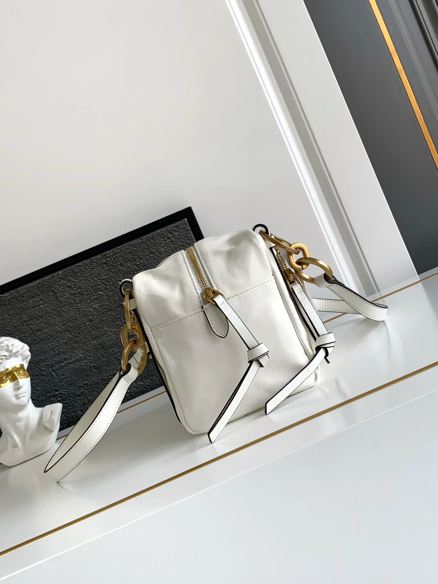 这款新方正手提包甄选复古感柔软油腊皮革制成 复古金属五金配件与典藏素拉链口袋 彰显复古魅力 容量空间大 手提和肩带都可以 上身效果时尚又百塔 又是一款永久不过时爆款 赶紧入手吧