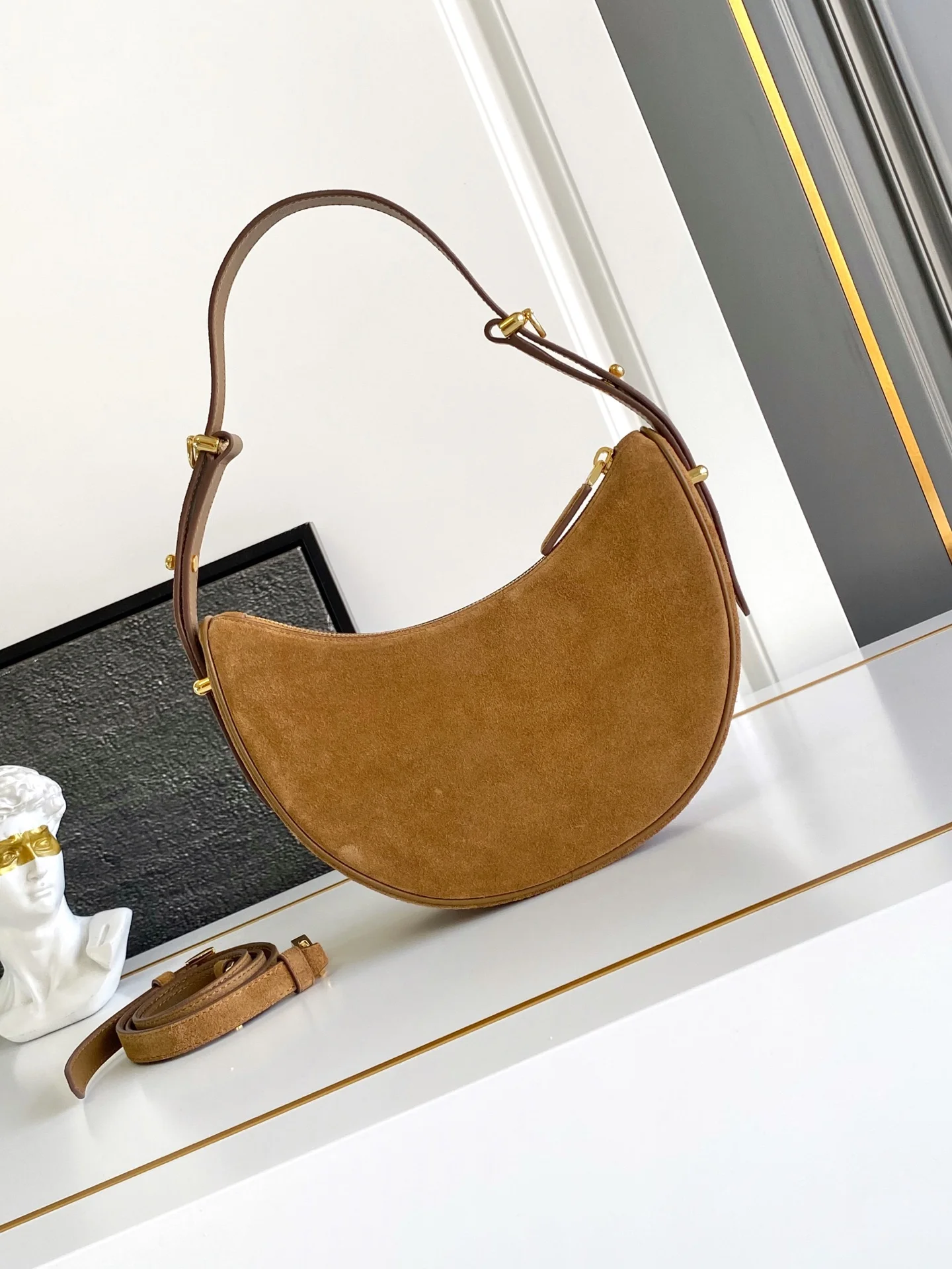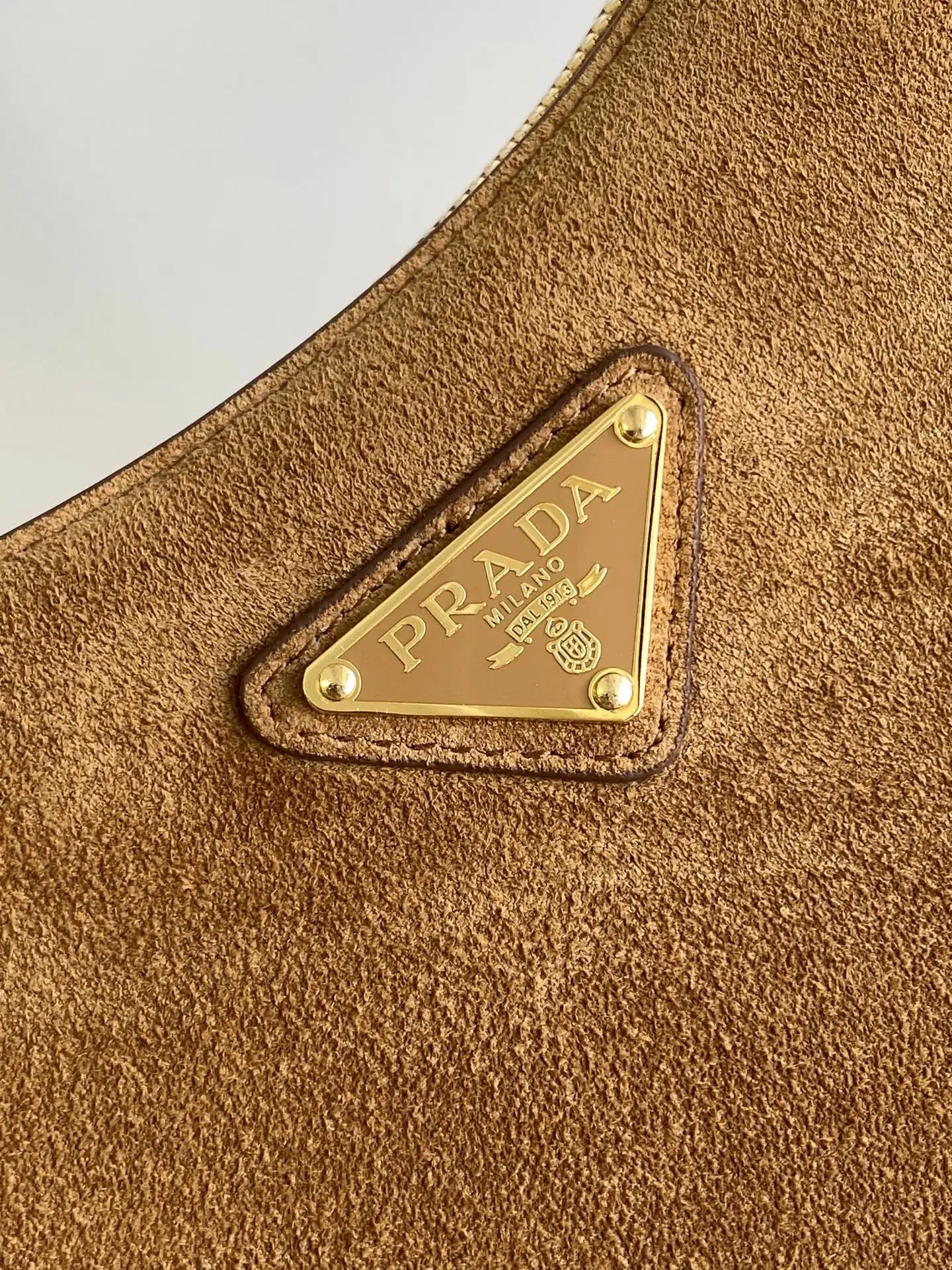 普拉达1BC194 Arque绒面麂皮腋下包 单肩背包