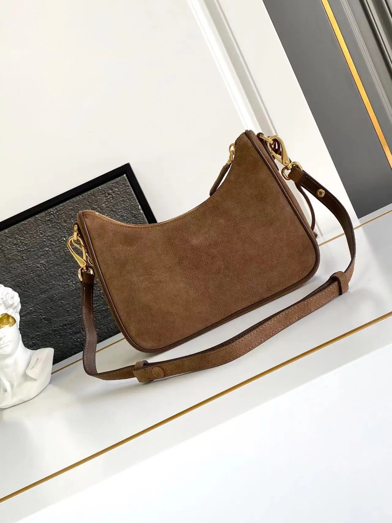普拉达1BC204 Hobo麂皮绒面腋下包 斜挎包