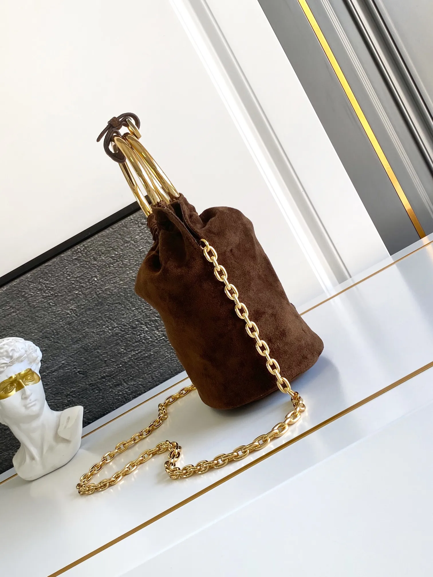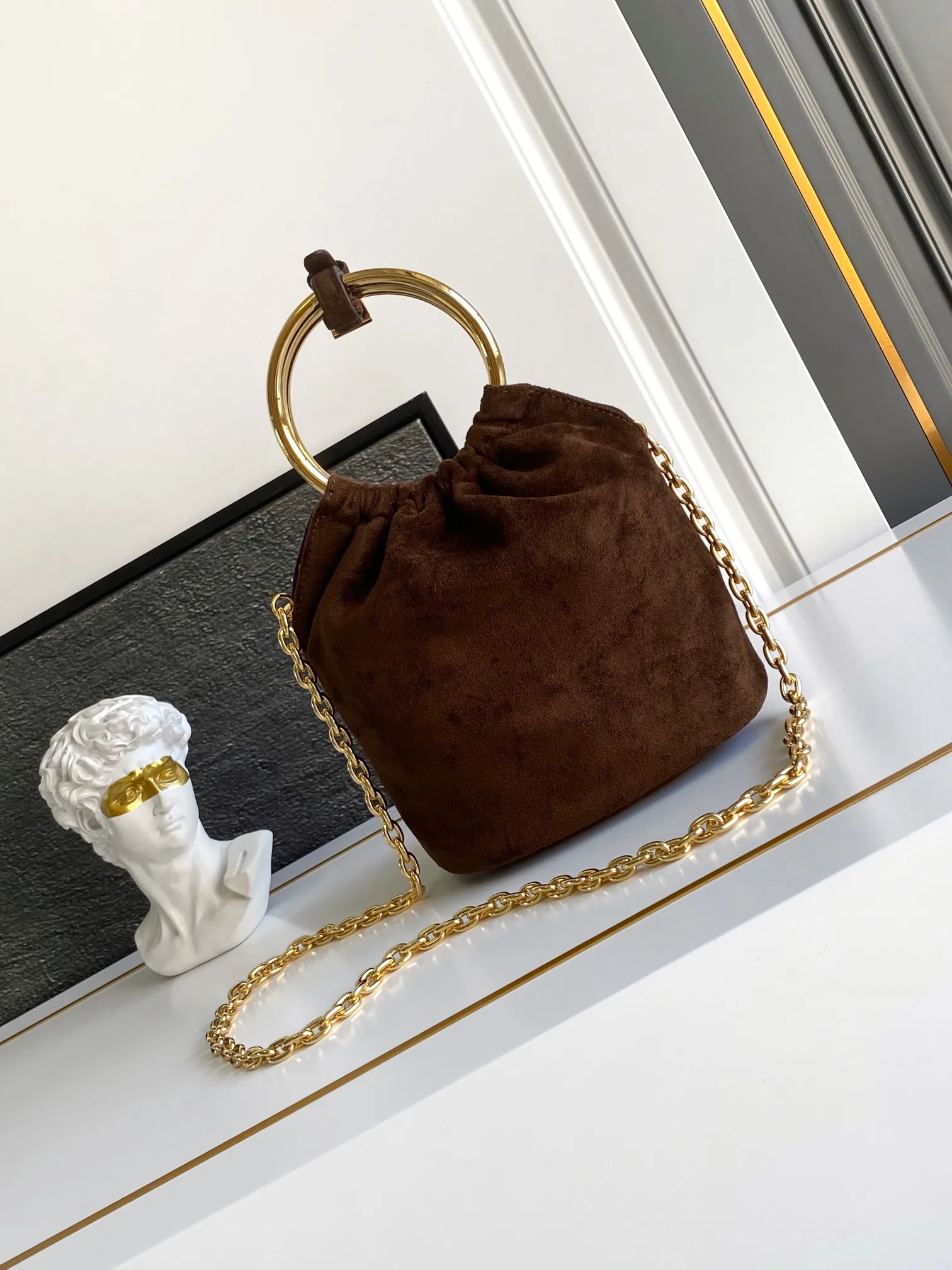 新款水桶包麂绒棕色