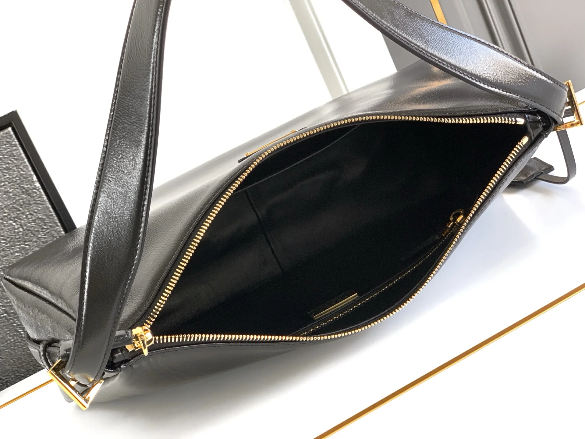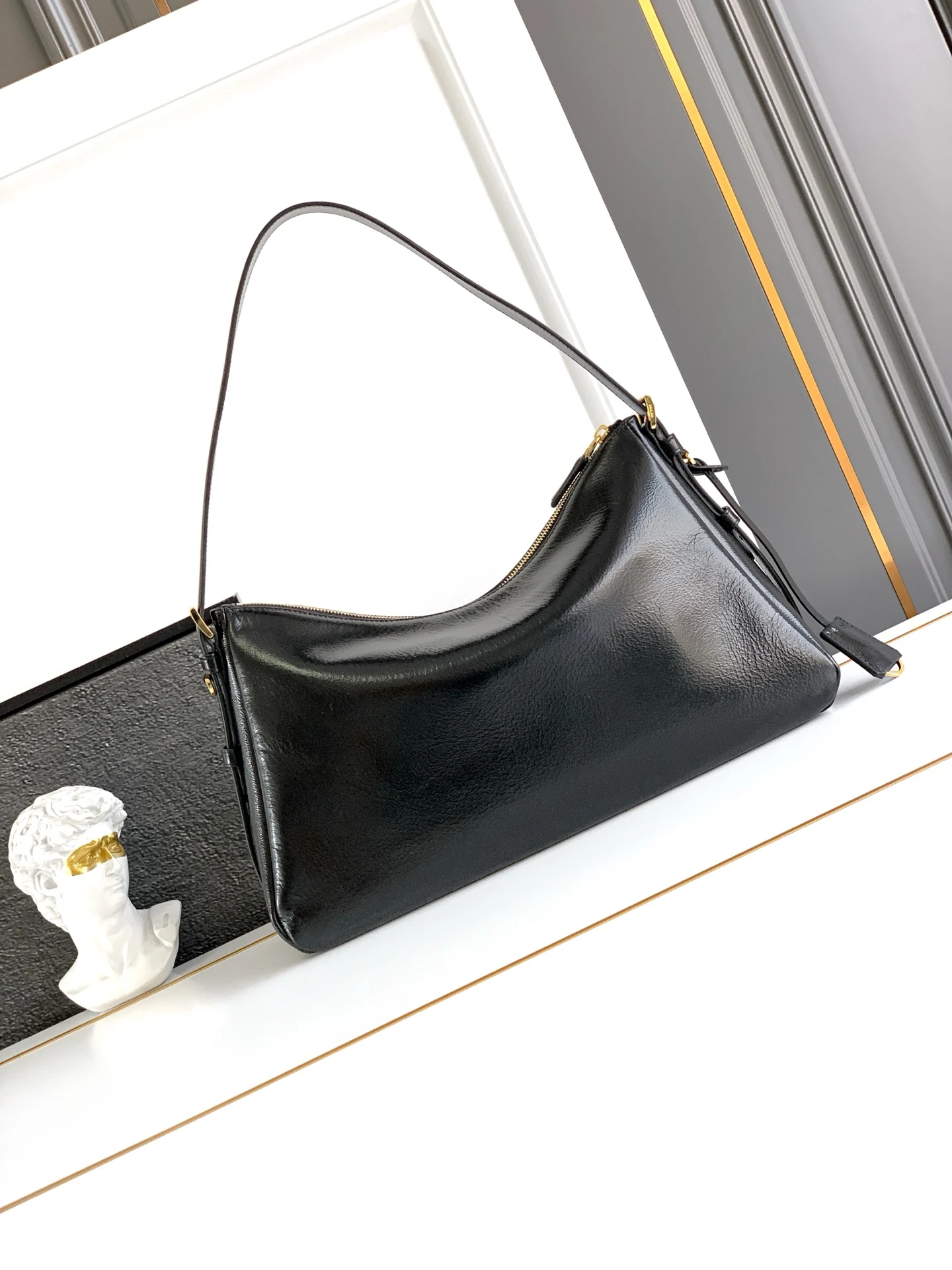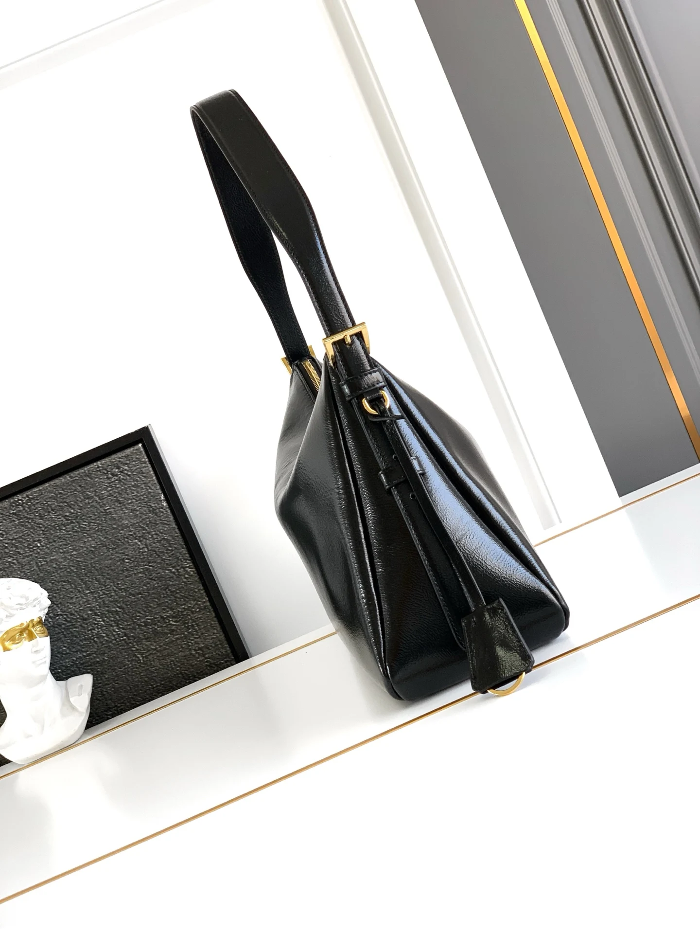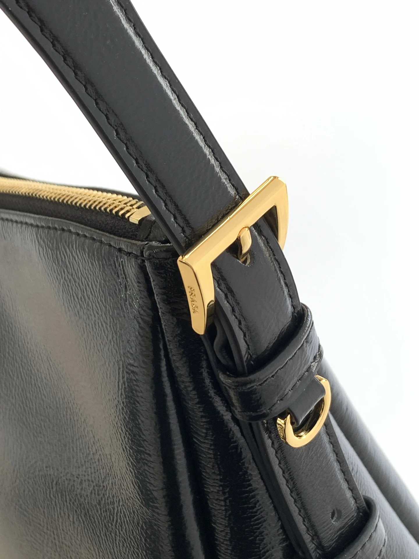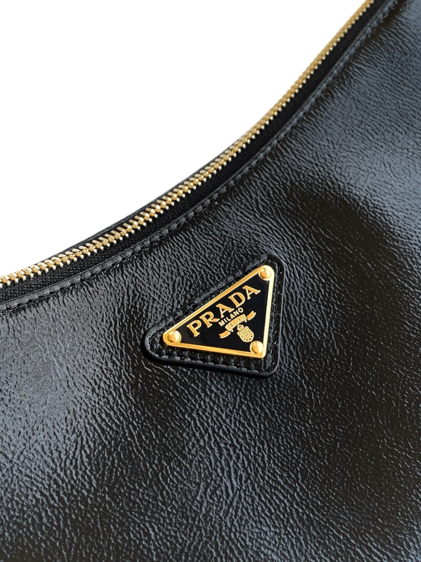 Prada最新款手袋 皱漆皮 新款单肩包的设计灵感源自对Hobo廓形的探索 线条柔美 颇具现代感 皮质柔软 超级百搭 背法很多 婉转的皮革轮廓结合容量大空间充足 內里配有拉链袋 一个插袋金属五金配件点缀其间 上身效果非常时尚又大气 赶紧入手吧 又是一款永久不过时爆款