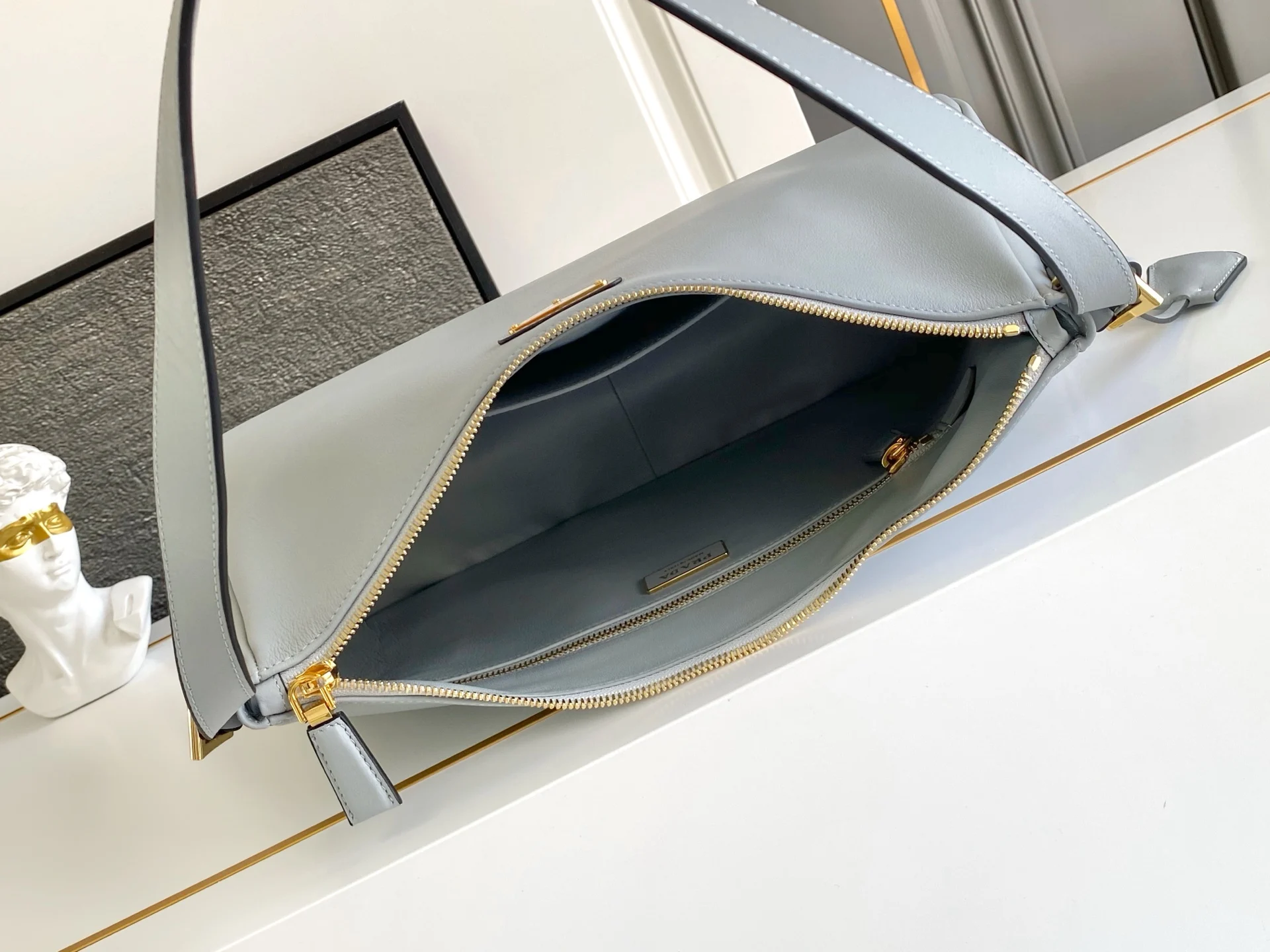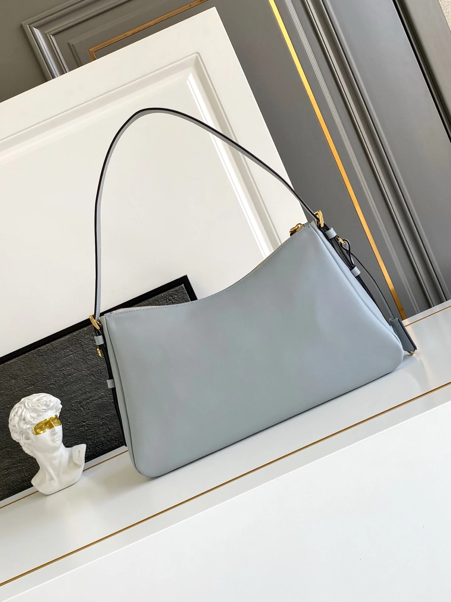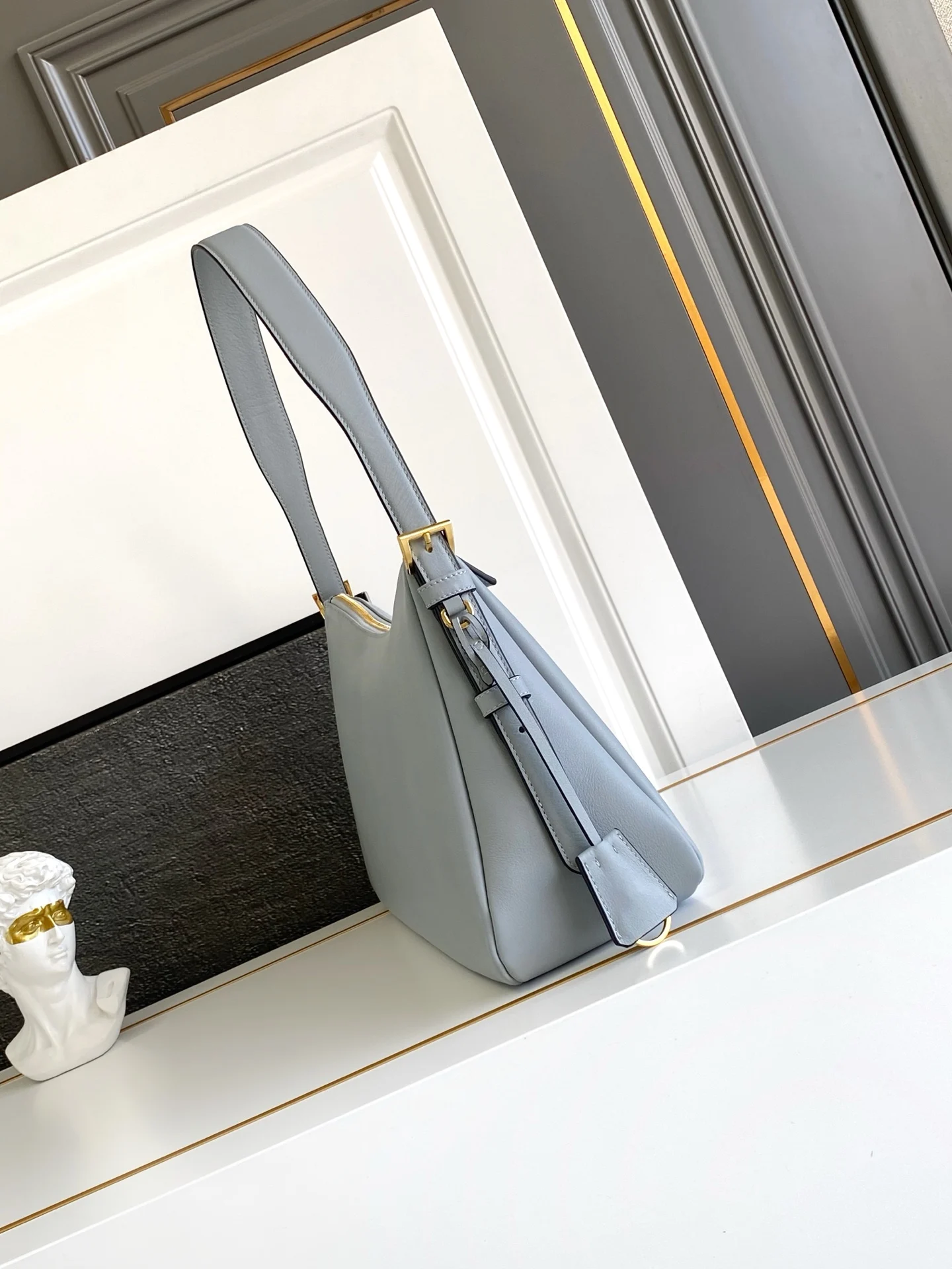 新款Aimee腋下包这款皮革Hobo腋下包设计气质简约 采用进口小牛皮 正面金属三角形珐琅徽标 配有可拆卸皮革肩带 皮质细腻柔软 实用轻便容量空间大高级百搭 又一个时尚爆款 赶紧入手吧 太美了