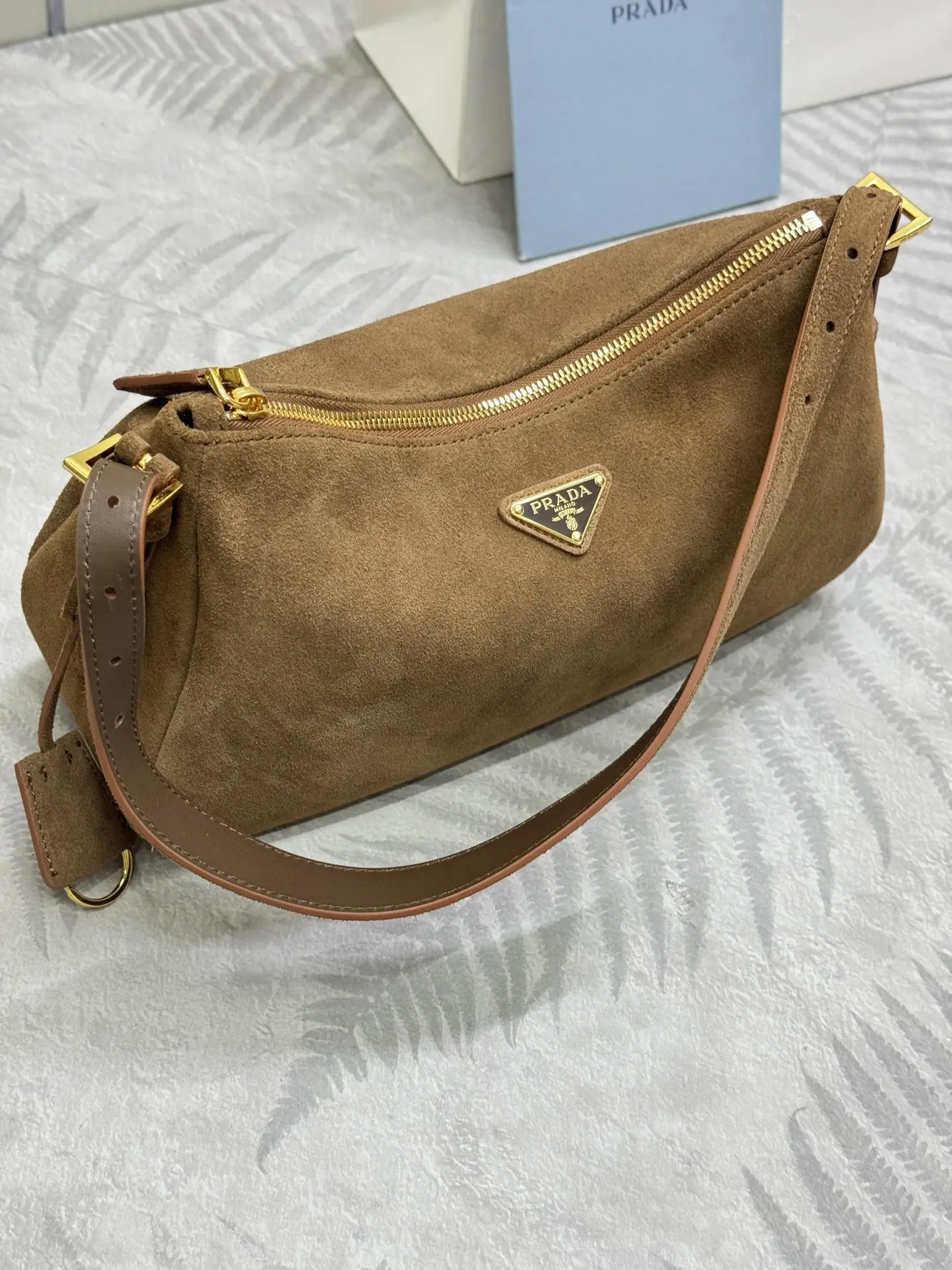 这款皮革Hobo腋下包设计气质简约 采用进口绒皮 磨砂皮 正面金属三角形珐琅徽标 配有可拆卸皮革肩带 皮质细腻柔软 实用轻便容量空间大高级百搭 又一个时尚爆款 赶紧入手吧 太美了