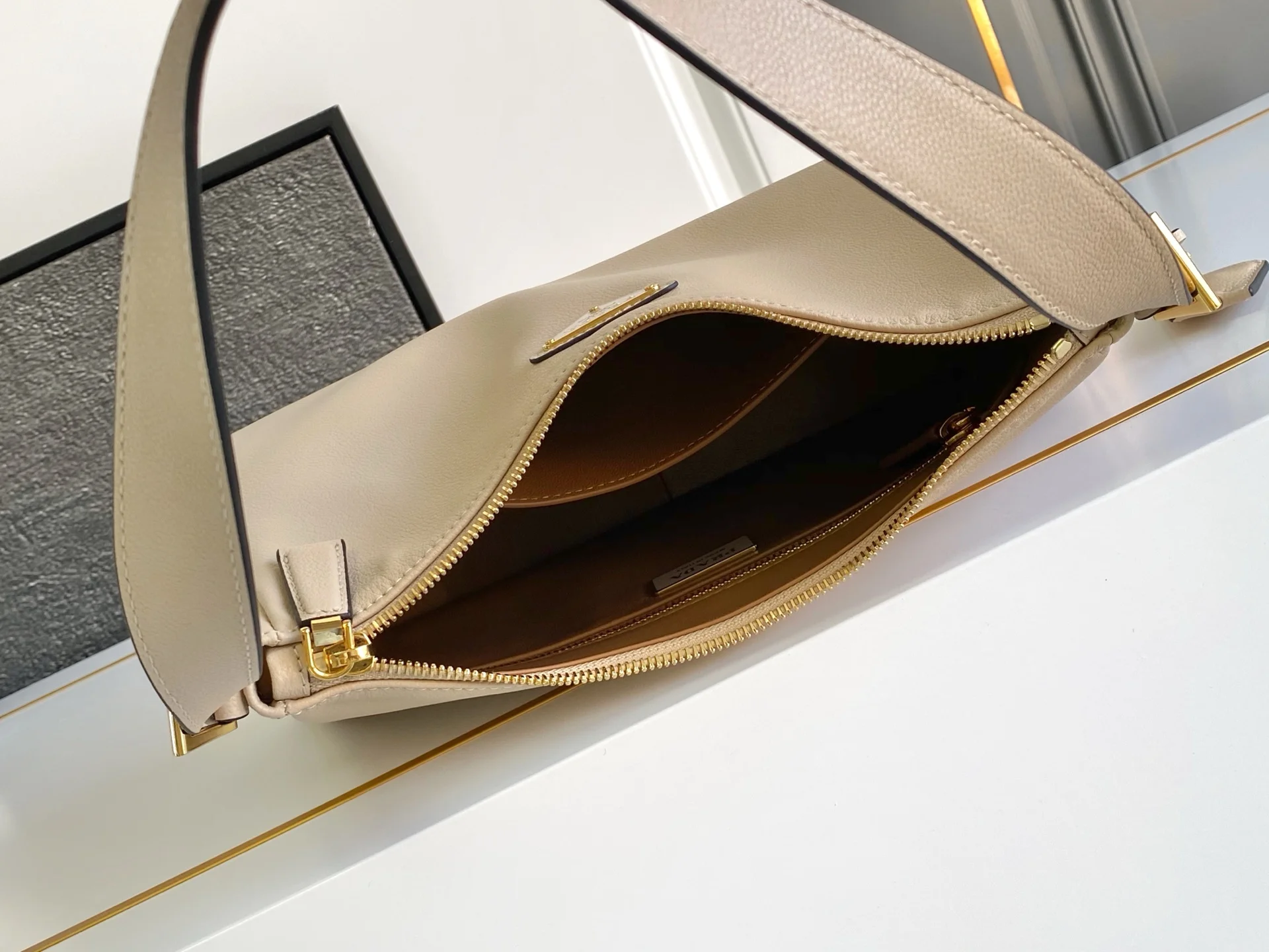 新款Aimee腋下包这款皮革Hobo腋下包设计气质简约 采用进口小牛皮 正面金属三角形珐琅徽标 配有可拆卸皮革肩带 皮质细腻柔软 实用轻便容量空间大高级百搭 又一个时尚爆款 赶紧入手吧 太美了
