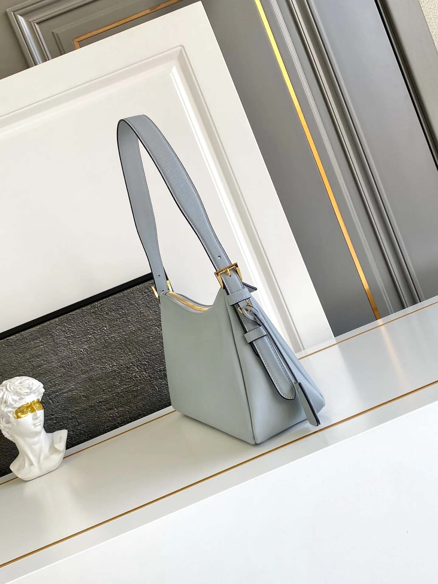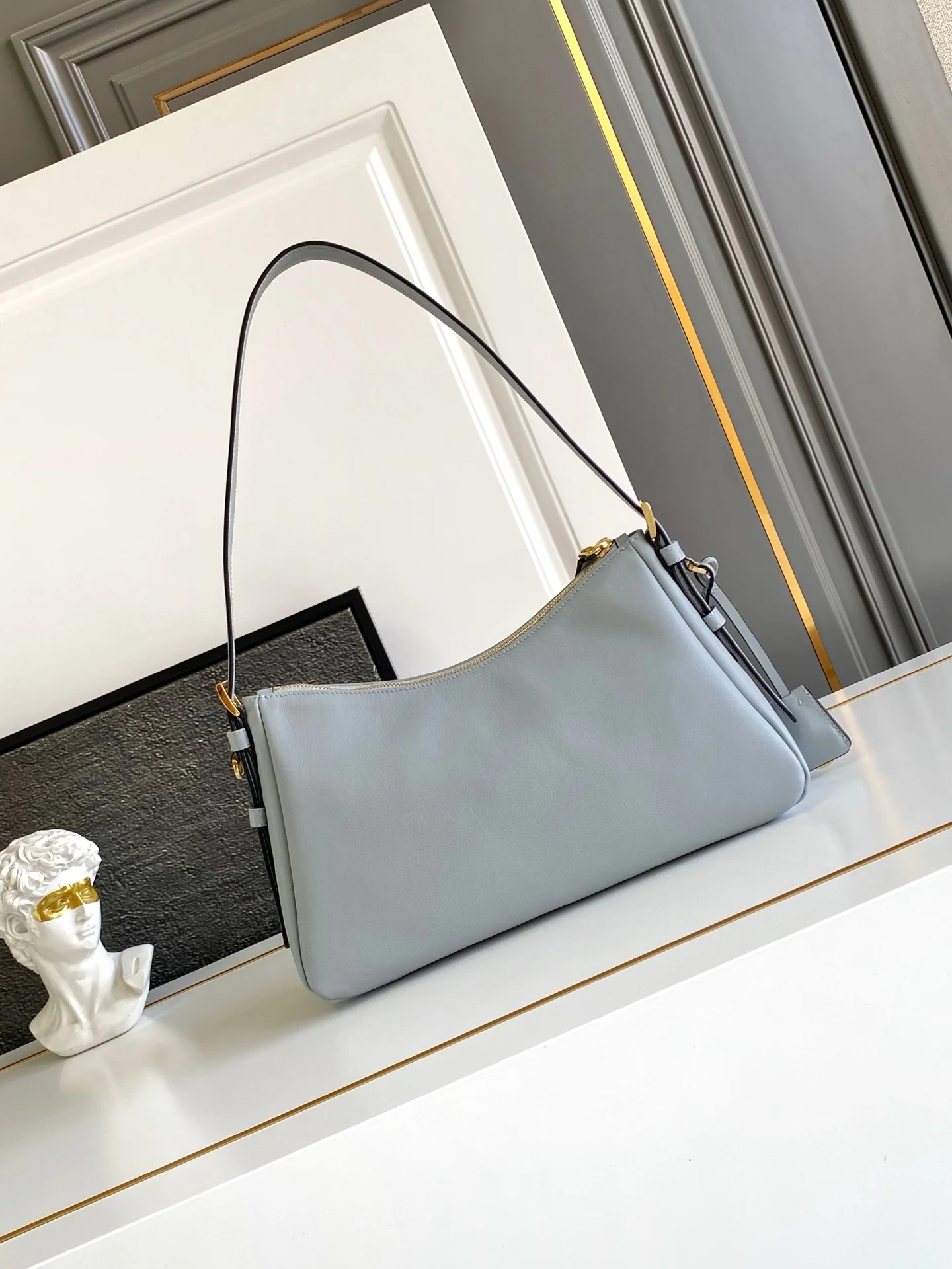 新款Aimee腋下包这款皮革Hobo腋下包设计气质简约 采用进口小牛皮 正面金属三角形珐琅徽标 配有可拆卸皮革肩带 皮质细腻柔软 实用轻便容量空间大高级百搭 又一个时尚爆款 赶紧入手吧 太美了