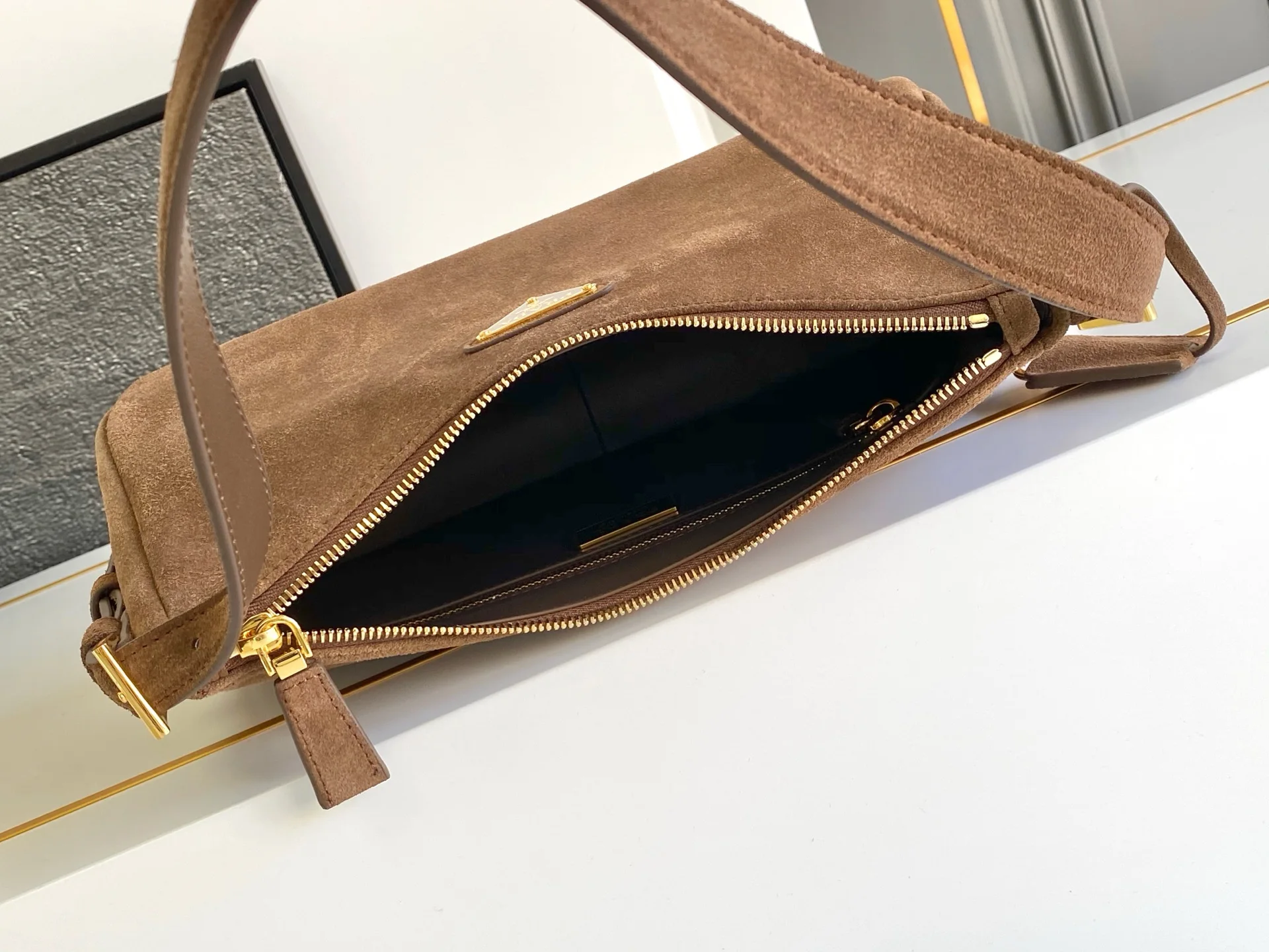 普拉达1BC229 新款麂皮Aimee腋下包小号 单肩背包