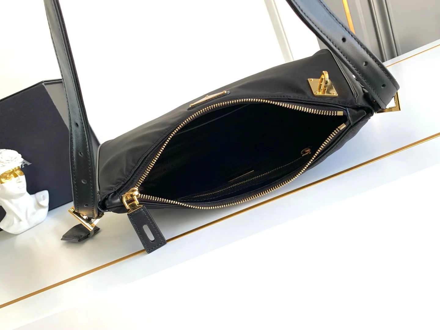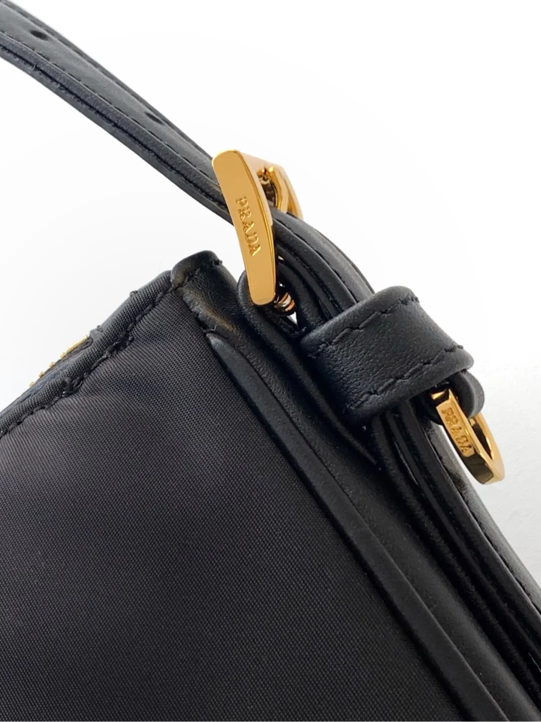 新款单肩包这款单肩包风格现代百搭 采用再生尼龙 Re-Nylon 材料制成 搭配精致的皮革细节 容量宽敞 搭配拉链和挂锁开合 可拆卸钥匙扣 饰有金属三角形徽标 通勤包型可休闲可酷背起来又实用又时尚,超级有品味男女共用款喜欢的宝宝赶紧入手