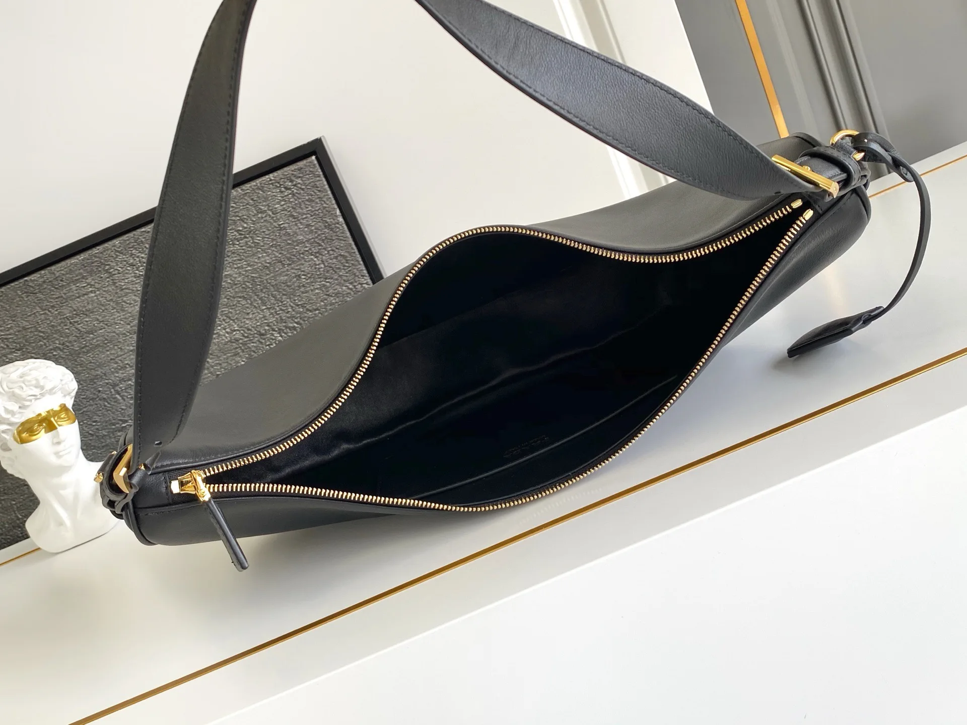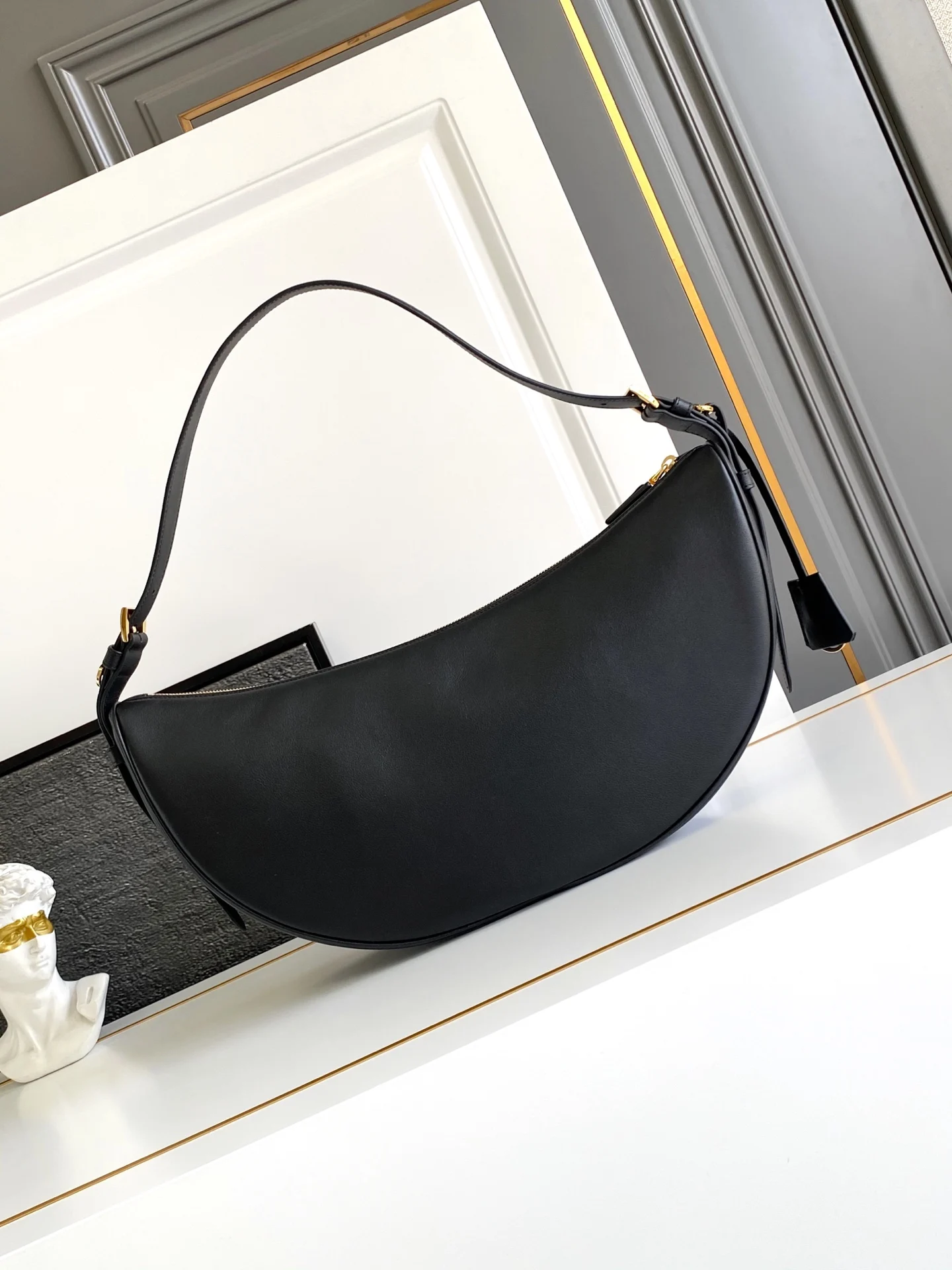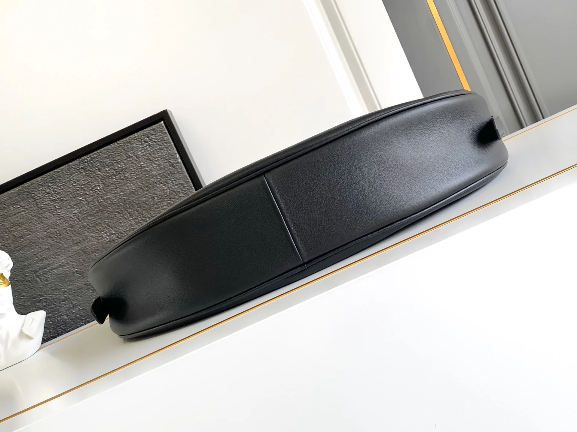 新品这款皮革手袋采用柔软轻盈的设计 焕新诠释经典新月版型 优美弧线勾勒Oversize体量 成就空间充裕的百搭配饰 可调节手提柄方便肩背或斜挎 精美现代 空间容量大 上身效果超有范宝宝们 赶紧入手吧