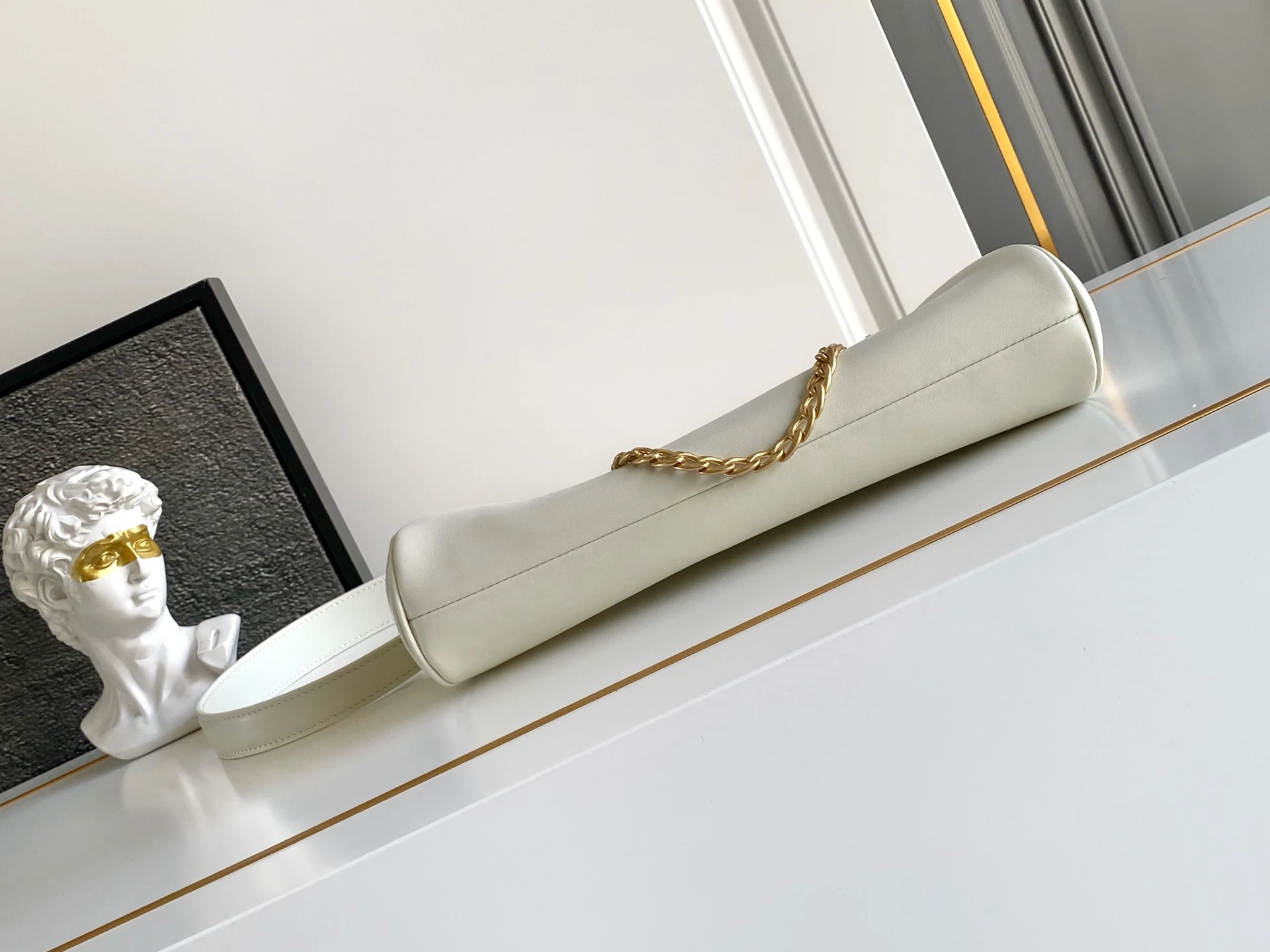 秋冬新款 链条款双肩带手袋 以复古魅力的廓形为特色 实用且现代的结构重新演绎 经典的女性化造型通过柔和廓形得到丰富 并通过皮革的做旧处理得到强调 这种处理是通过创新的工艺技术获得的 手提柄为设计增添了多样化的素 彰显实用而高雅的风格 双肩带可拆卸皮革手提柄 磁扣开合 正面印刻字徽标配拉链口袋 简约又时尚 赶紧入手吧