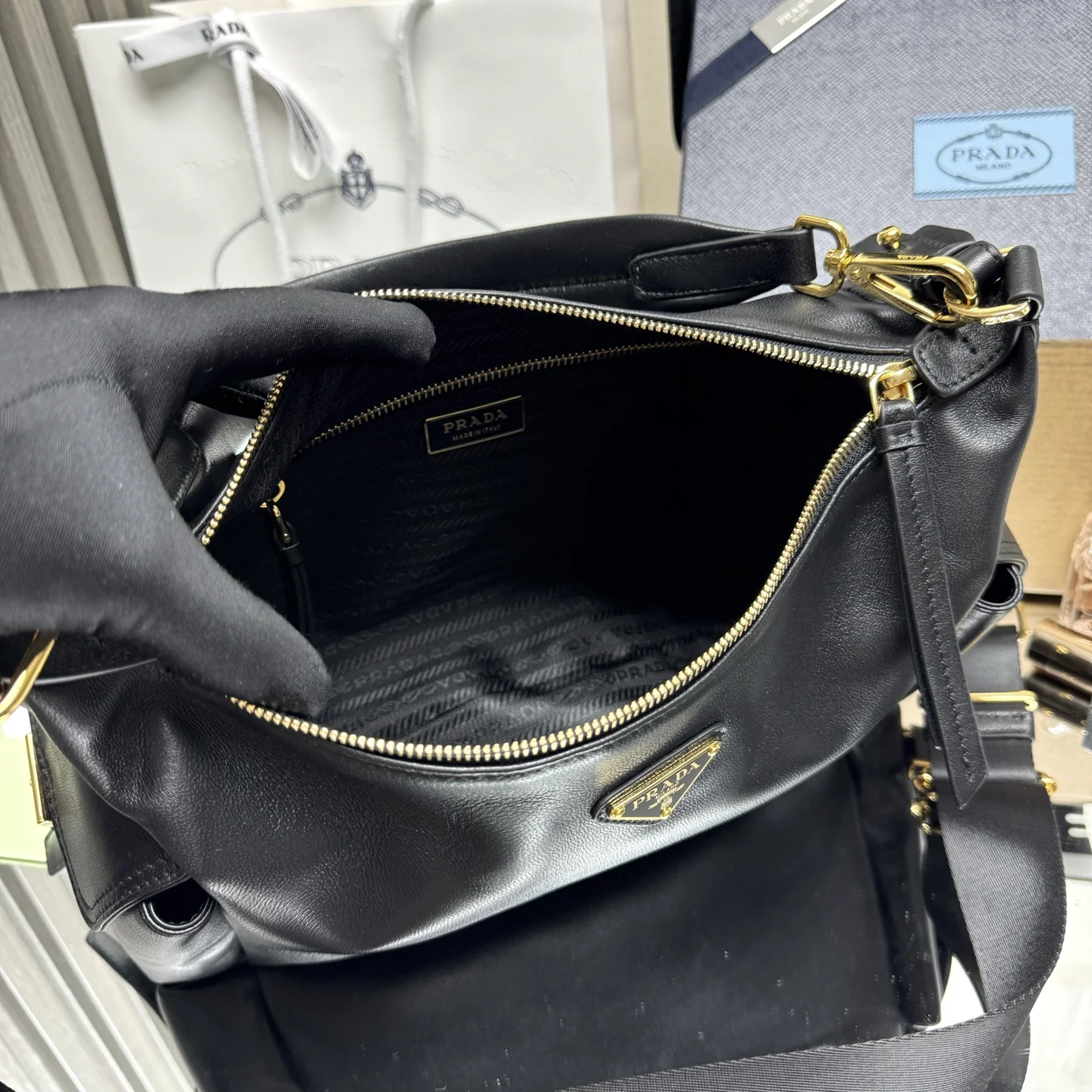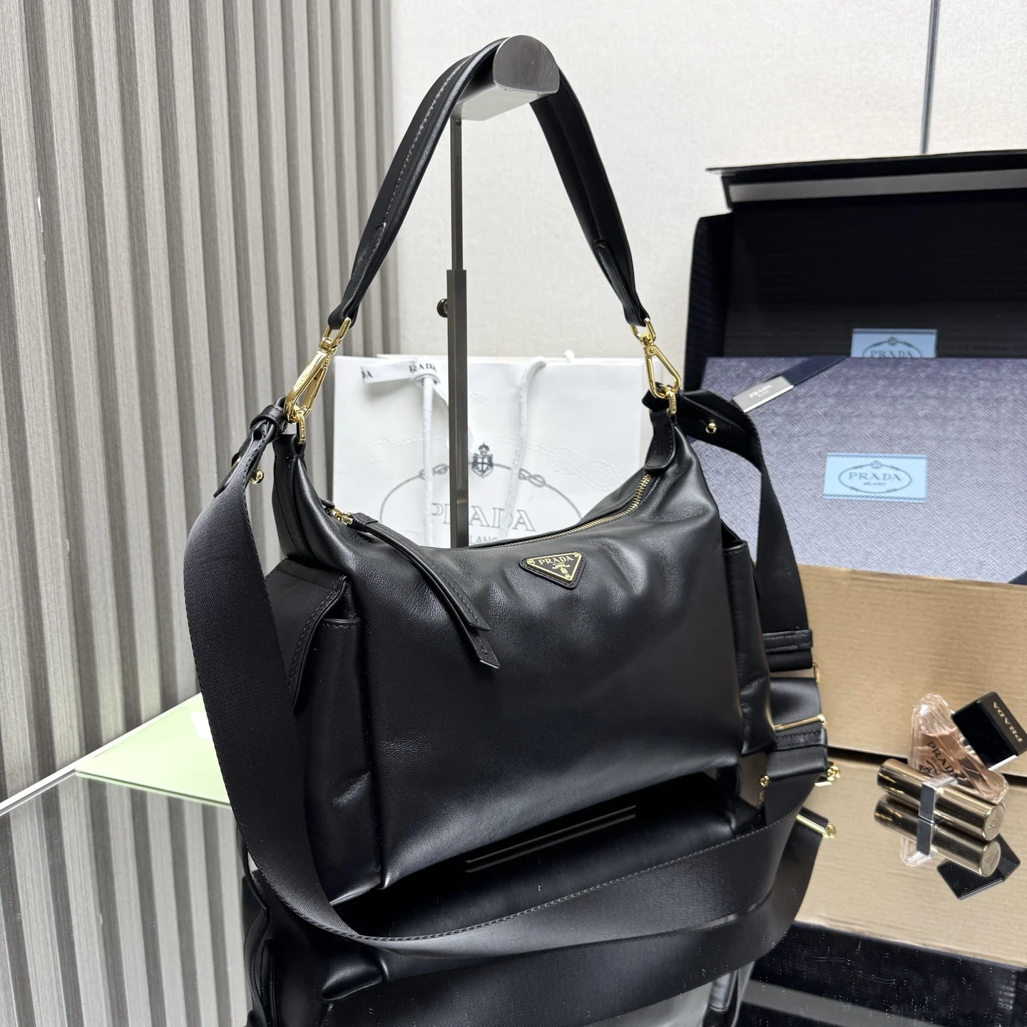 顶级原单 新品羊皮1BC264探索包这款探索包采用进口羊皮 具有柔软的轮廓和多个口袋 轻质实用的Re-Nylon强调了设计的多功能风格 而皮革细节和标志性点缀则反映了P家的手工传统 配有2条可拆卸 可调节的编织标志带肩带 容量空间大 上身效果非常时尚 又是一款永久不过时爆款 值得拥有尺寸 长32x高22x底11.5cm