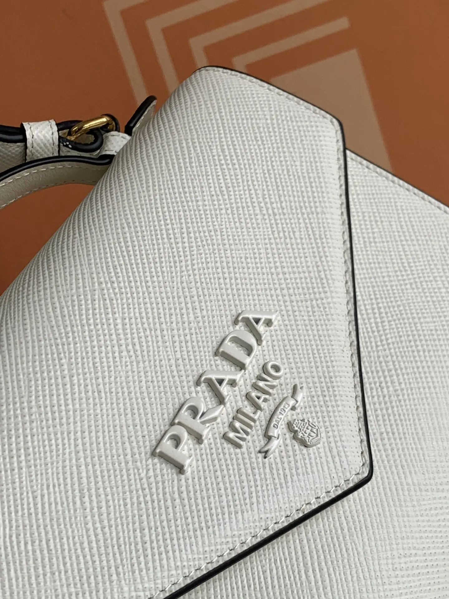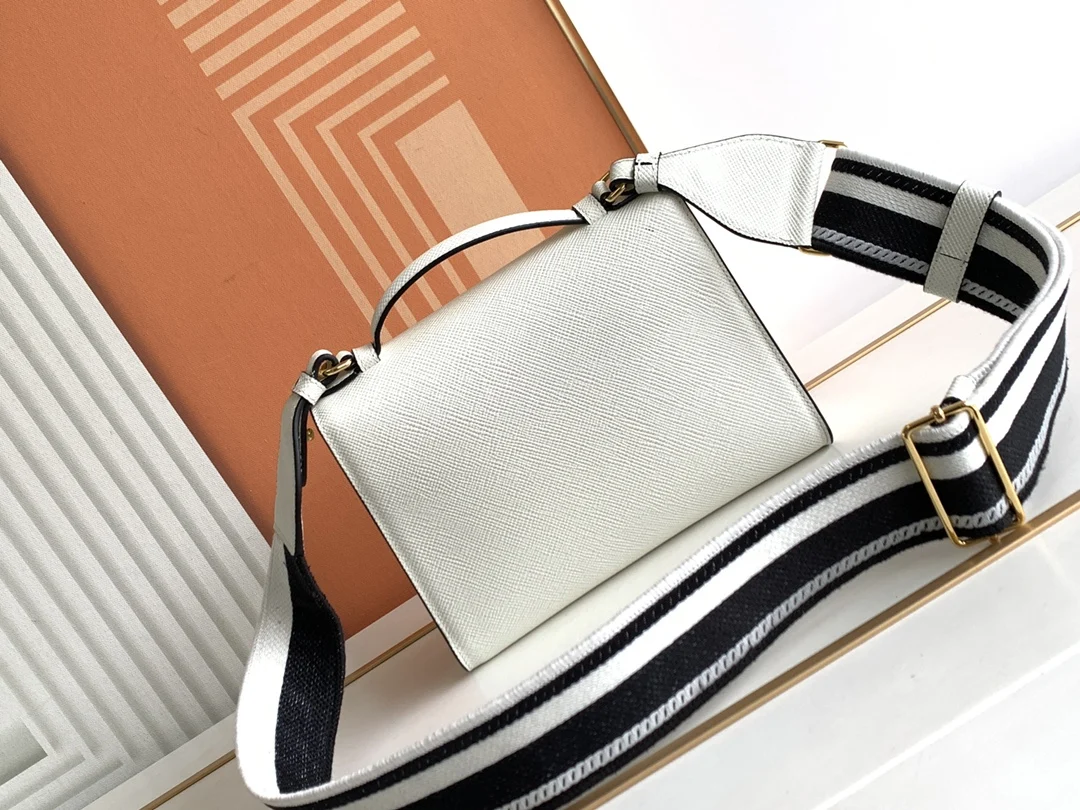 这款Saffiano皮革Monochrome手袋用同色效果的标志性徽标点缀精美设计 简洁优雅的线条定义包身格调 最爱的是这条织物刺绣肩带又可拆卸其它包上搭配 手提/斜跨都可以太爱了撞色徽标刺绣令品牌格调一览无余 简约大气 赶紧入手吧