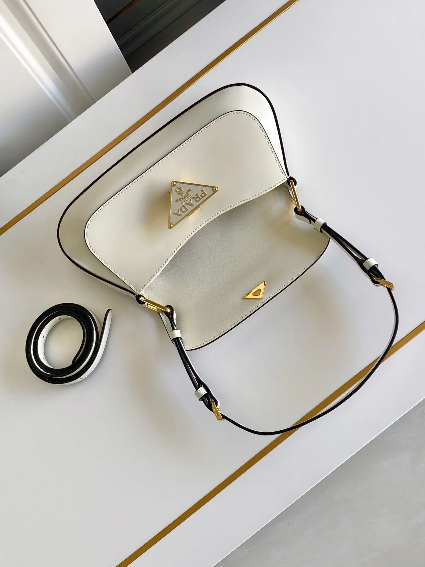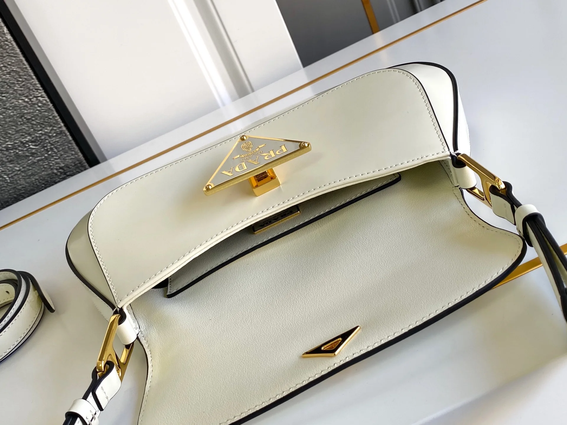 别致高贵亮面小牛皮精致时尚全新锁扣开合大Logo三角徽标完美融合于包身