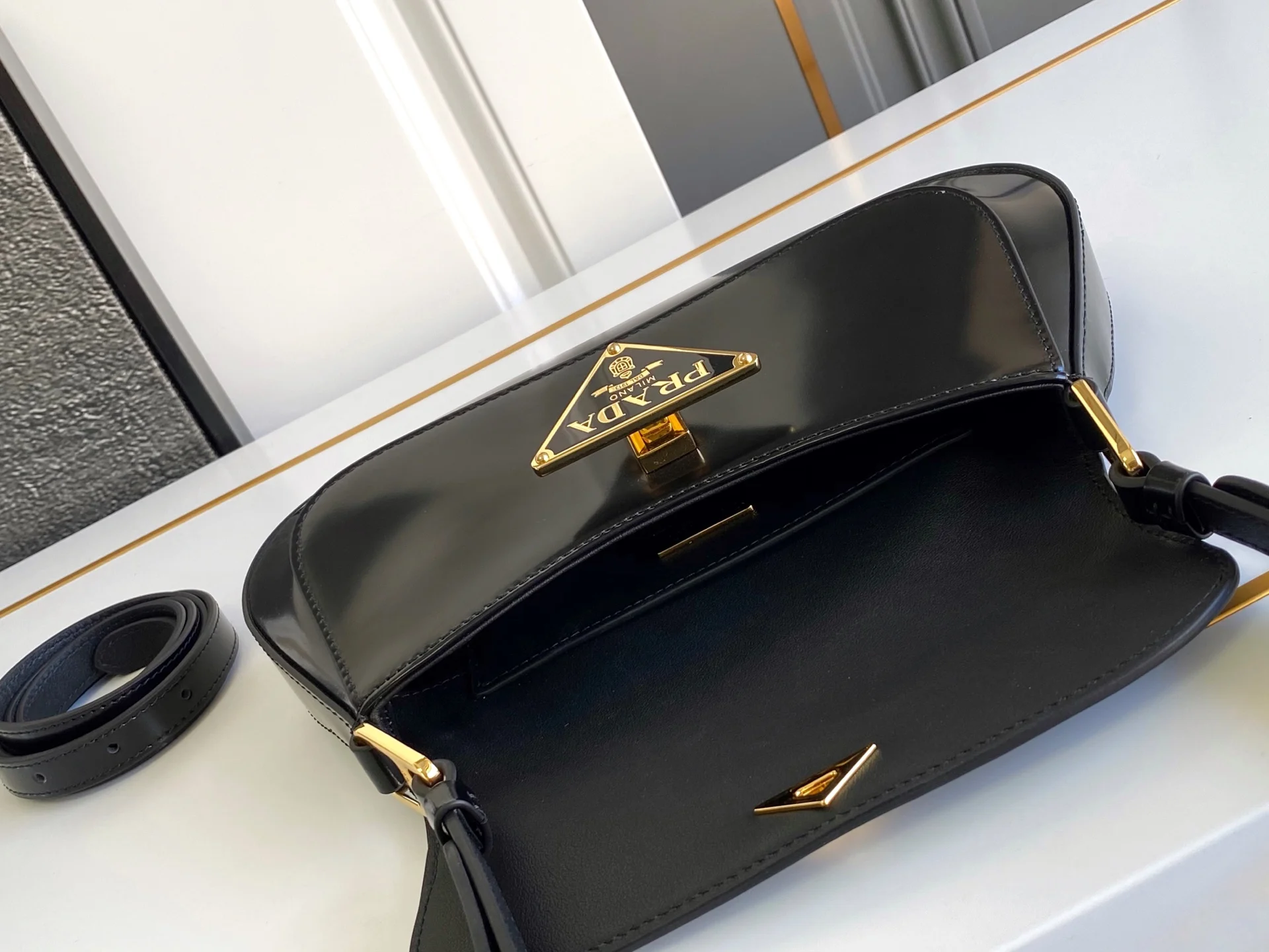 别致高贵亮面小牛皮精致时尚全新锁扣开合大Logo三角徽标完美融合于包身