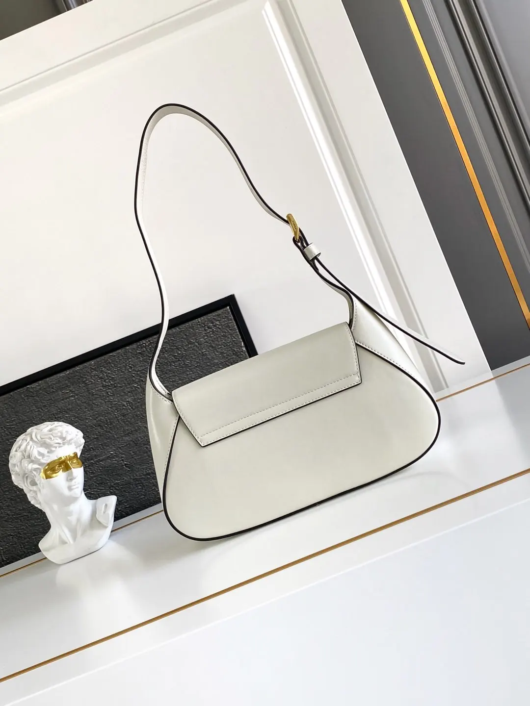 现代而精致的皮革手袋采用精致的细节和流畅的美学构造 展现卓越的工匠技艺 线条简约 造型紧凑 搭配Nappa皮革内衬与优雅的可调节提手 独有的标志性搭扣 配有磁性包盖 饰有涂珐琅三角形金属徽标