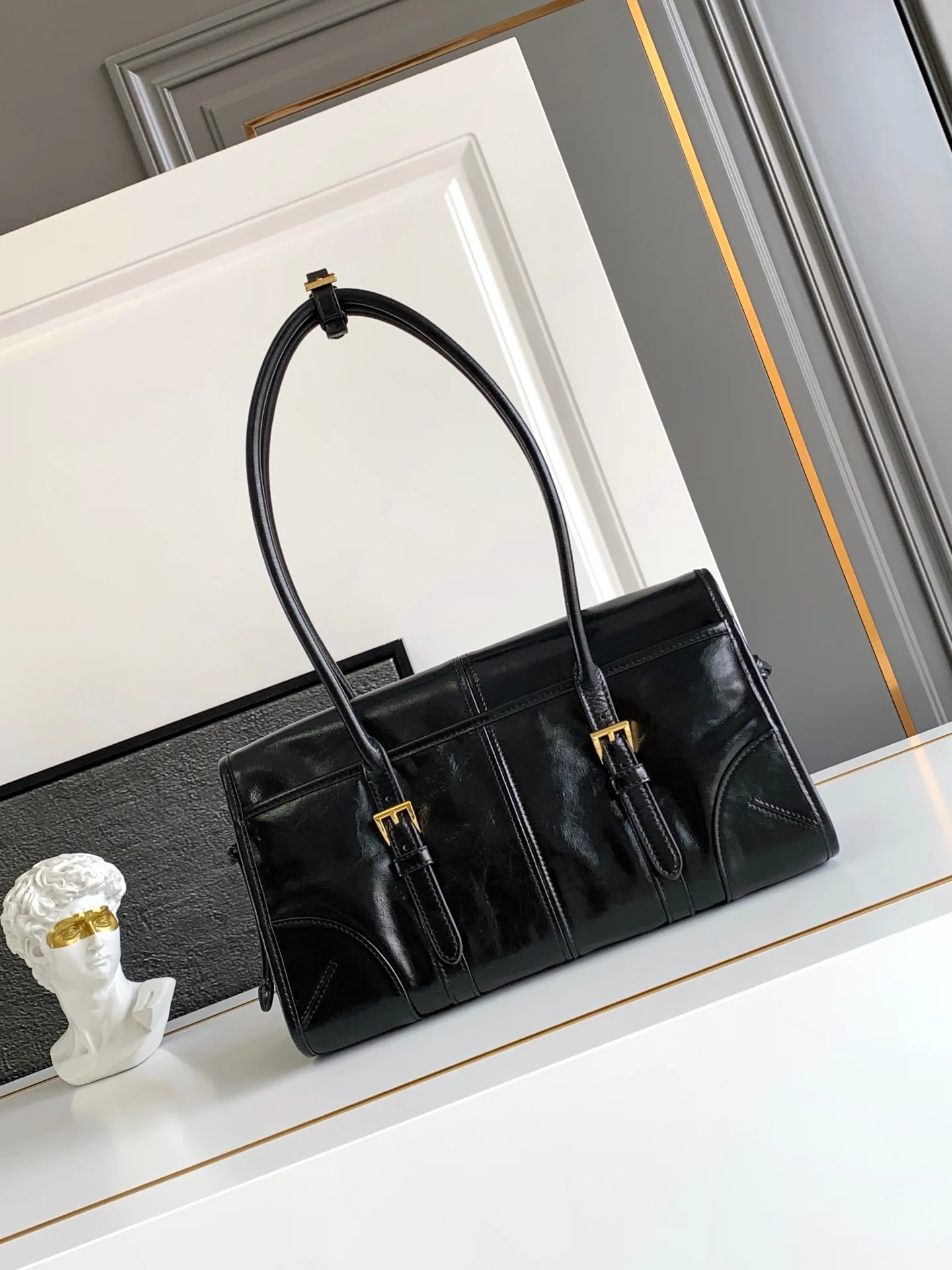 新款油腊皮腋下包双扣Soft Lux这款皮革手袋采用简洁而精致的设计 油亮的色泽散发业出古典气息 彰显现代休闲态度 长提手方便肩背 背面皮革口袋 涂珐琅三角形金属 磁扣开合翻盖设计 容量空间非常大 巨巨好用绝对是时商达人们的必备款 赶紧入手吧