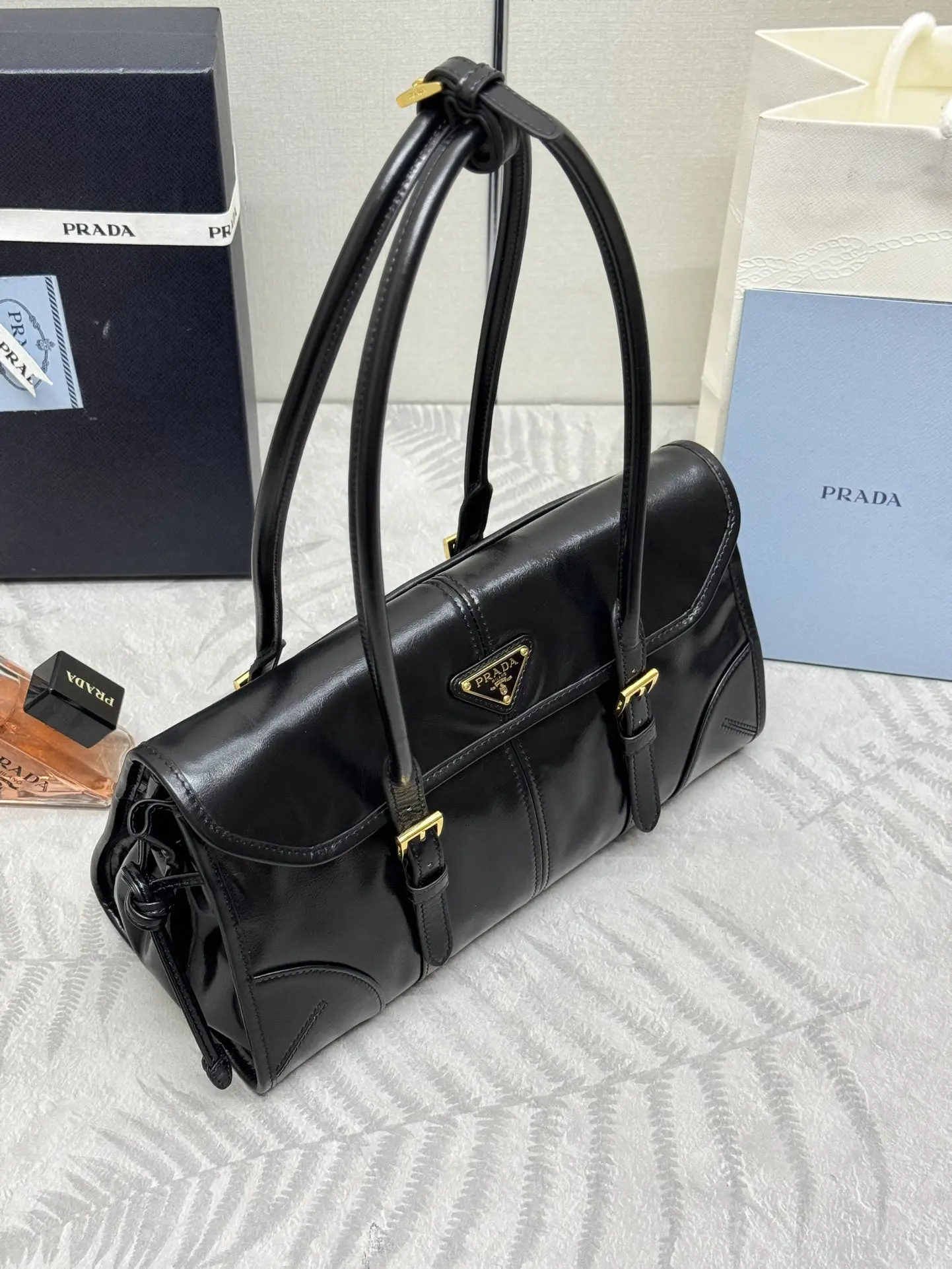 普拉达 1BD376 Soft Lux 油腊皮腋下包 单肩背包