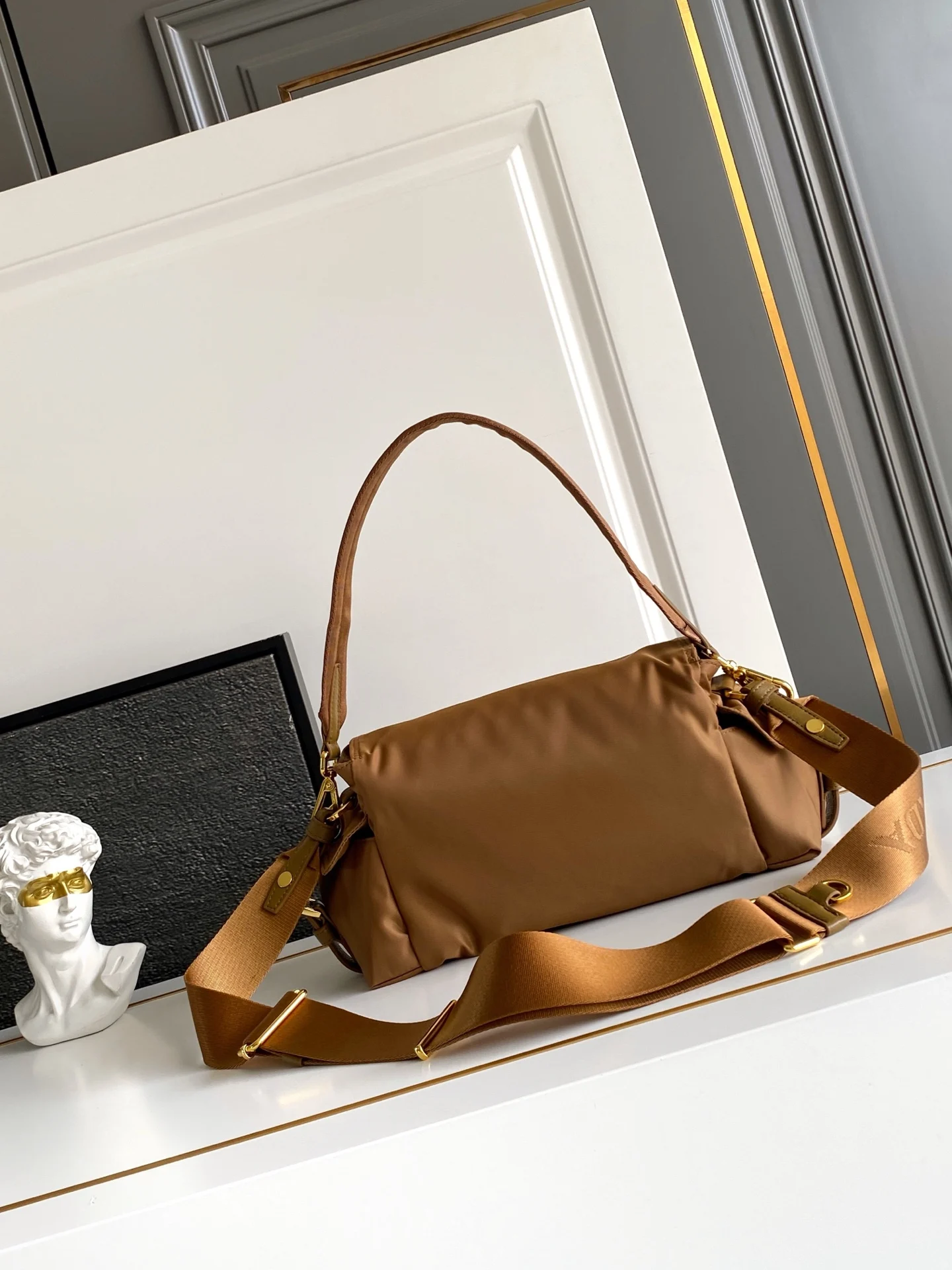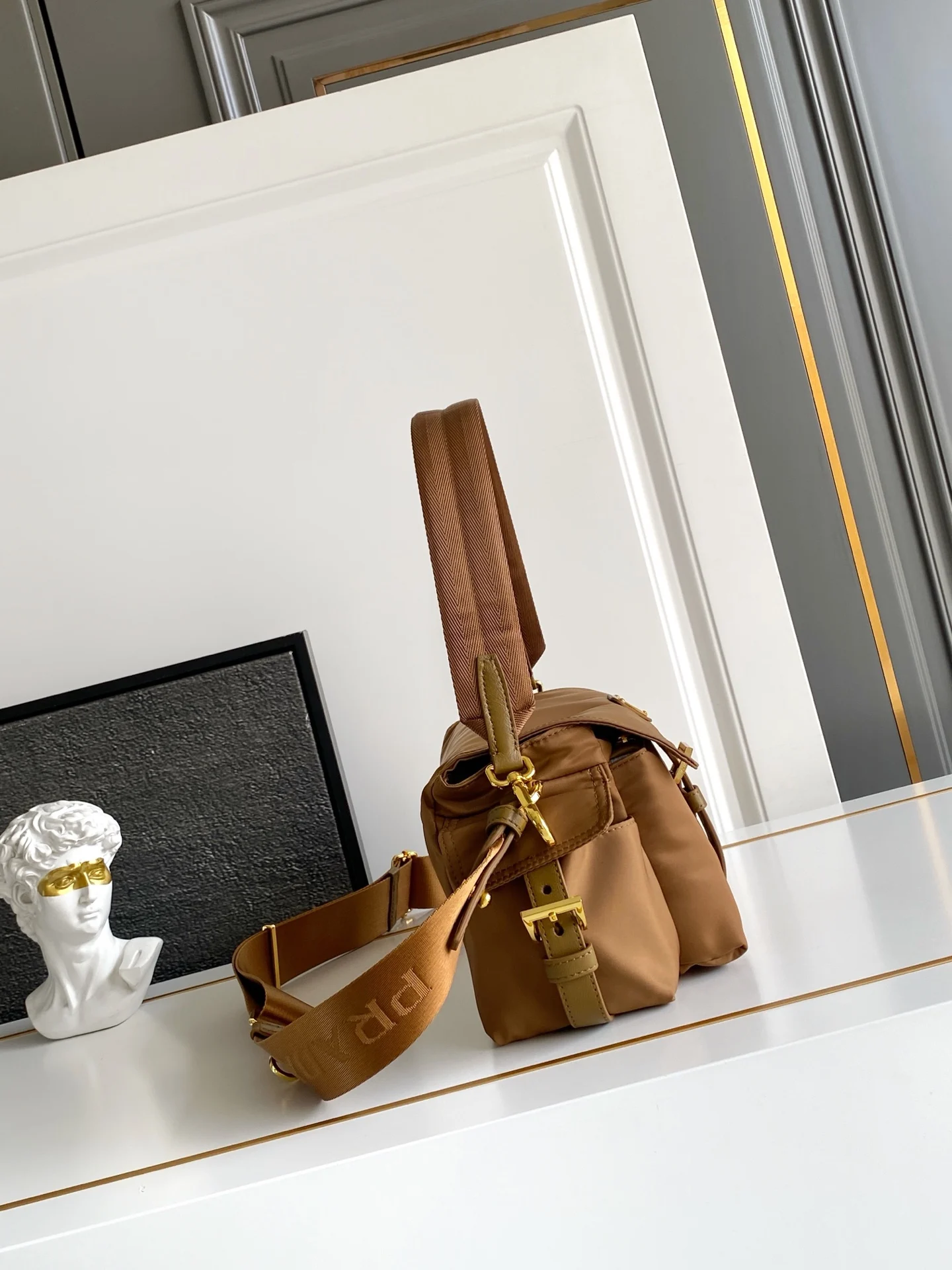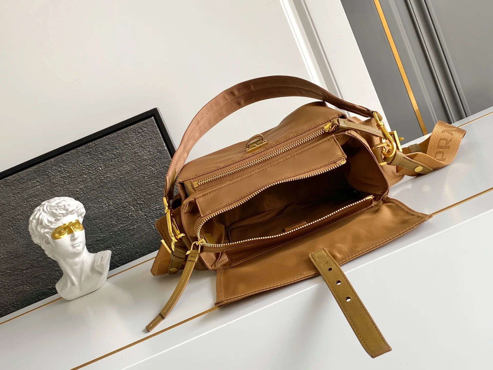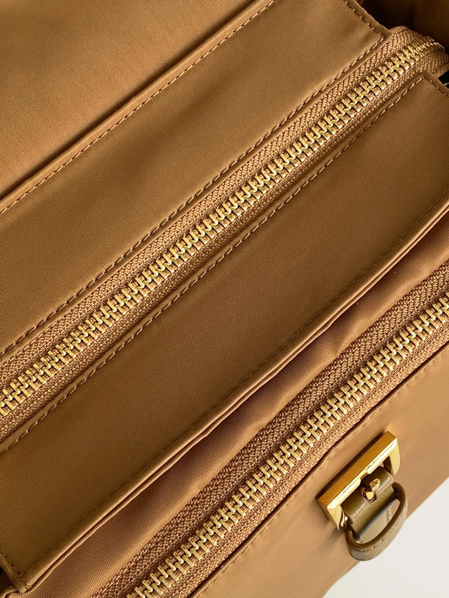 这款手袋完美融合精致与功能性 采用再生尼龙材质 轮廓柔和 配有多个口袋 轻盈实用的设计结合运动与百搭素 饰有涂珐琅三角形金属徽标 搭配皮革细节 配有2条肩带可拆卸 容量大 太完美 又是一款永久不过时爆款 大号男女共用 赶紧入手吧