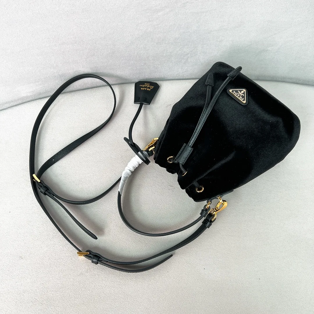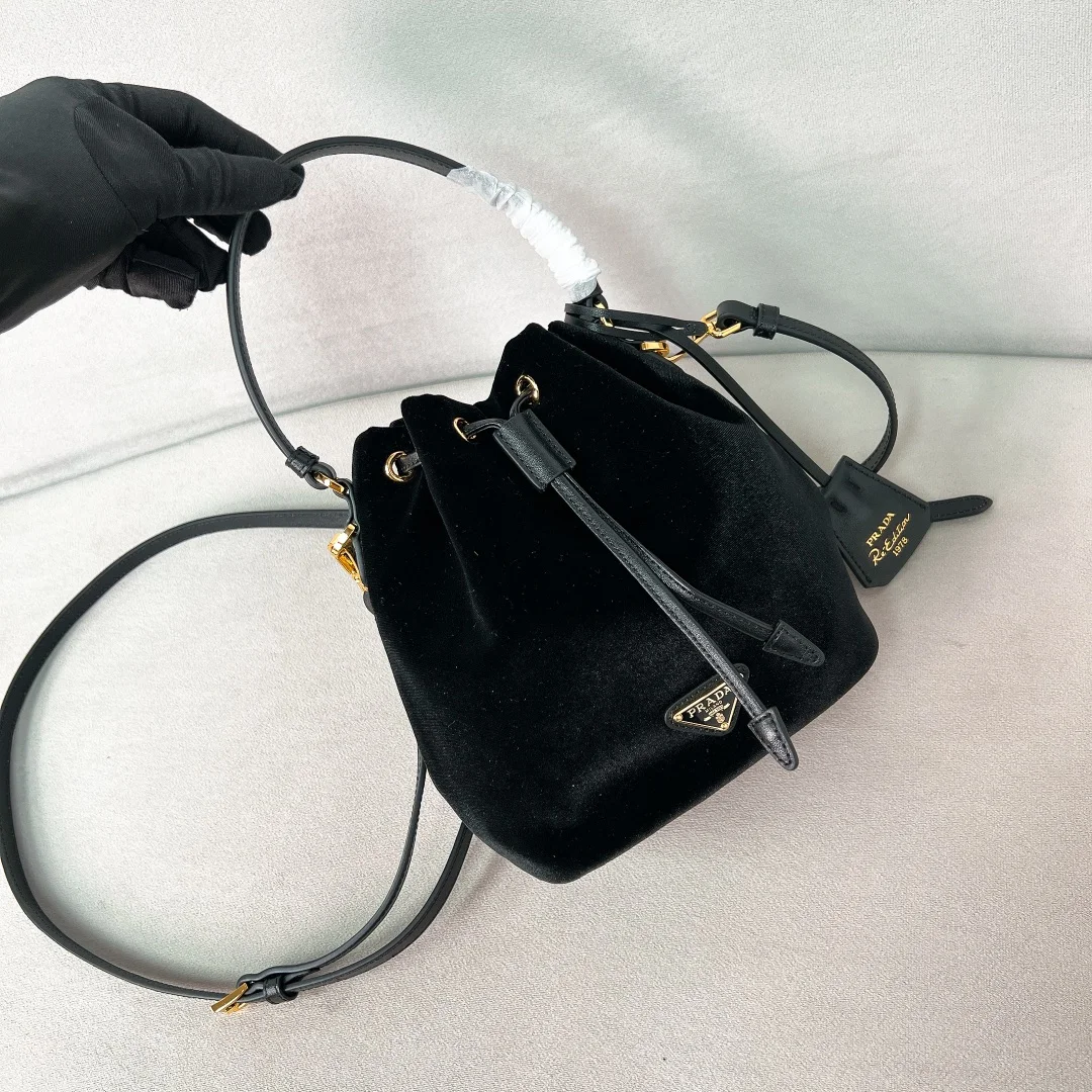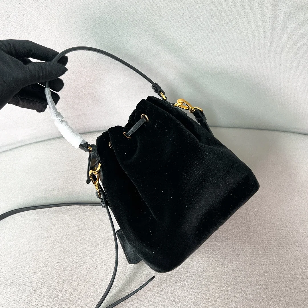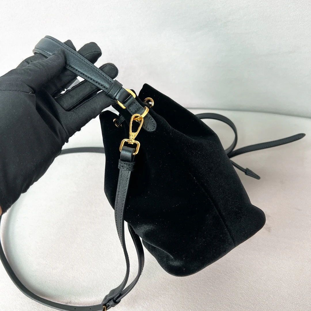 新品首发2024新品丝绒水桶包Re-Edition进口丝绒面料搭配进口小牛皮金色三角徽标拉绳扣合设计可以随意调节空间度轻便能装易搭配不同背法的随意性和随处可放的随和性拎上秒变气质小姐姐