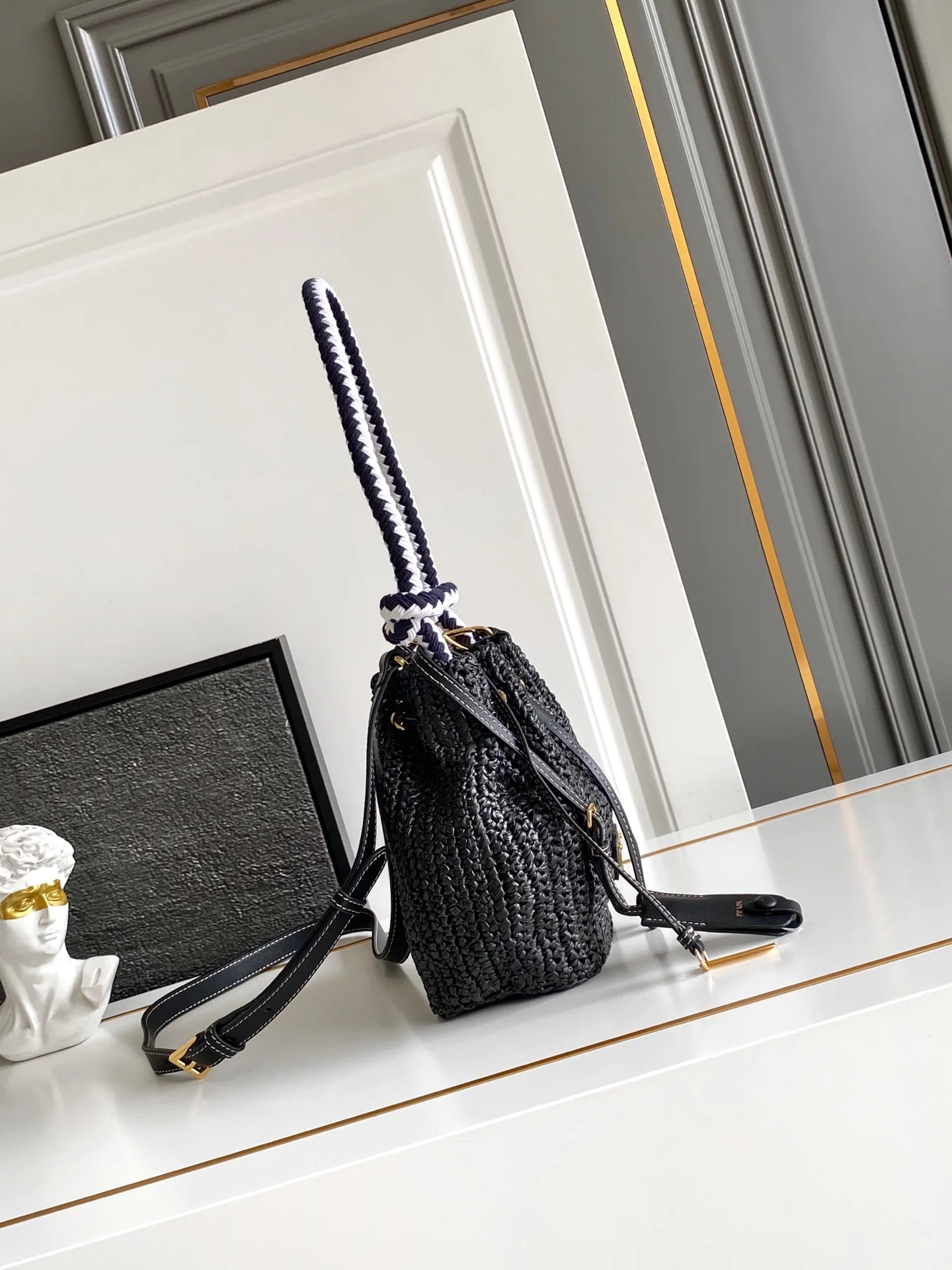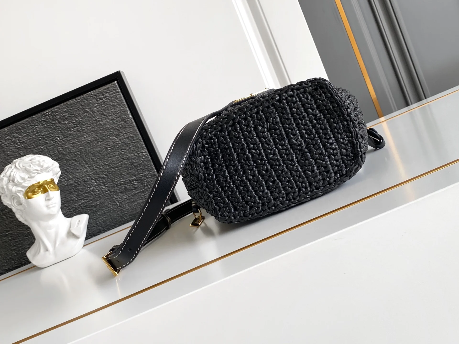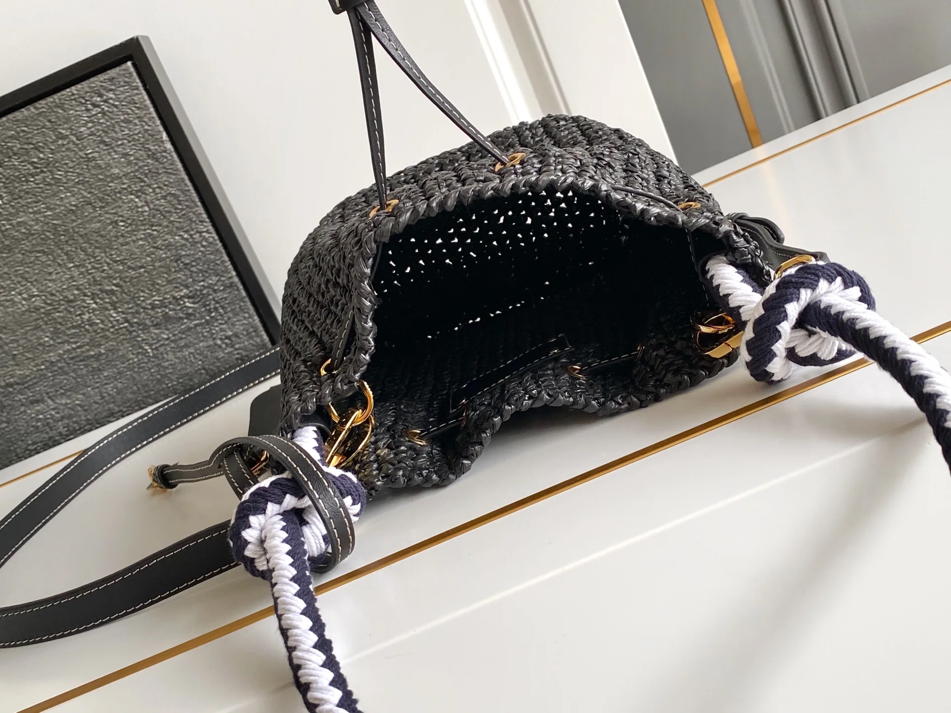 这款编织水桶包采用进口拉菲草材料 纯手工编织