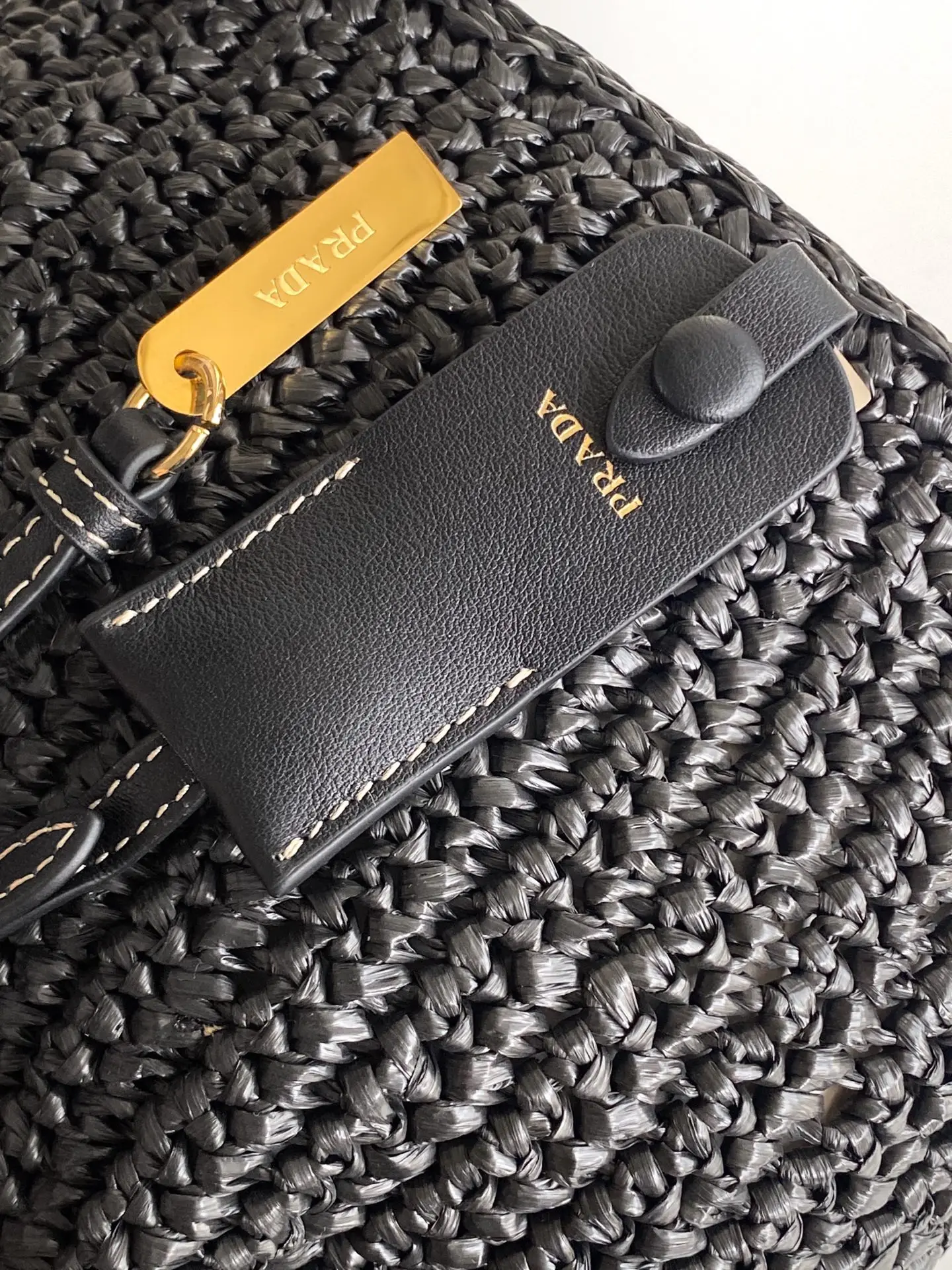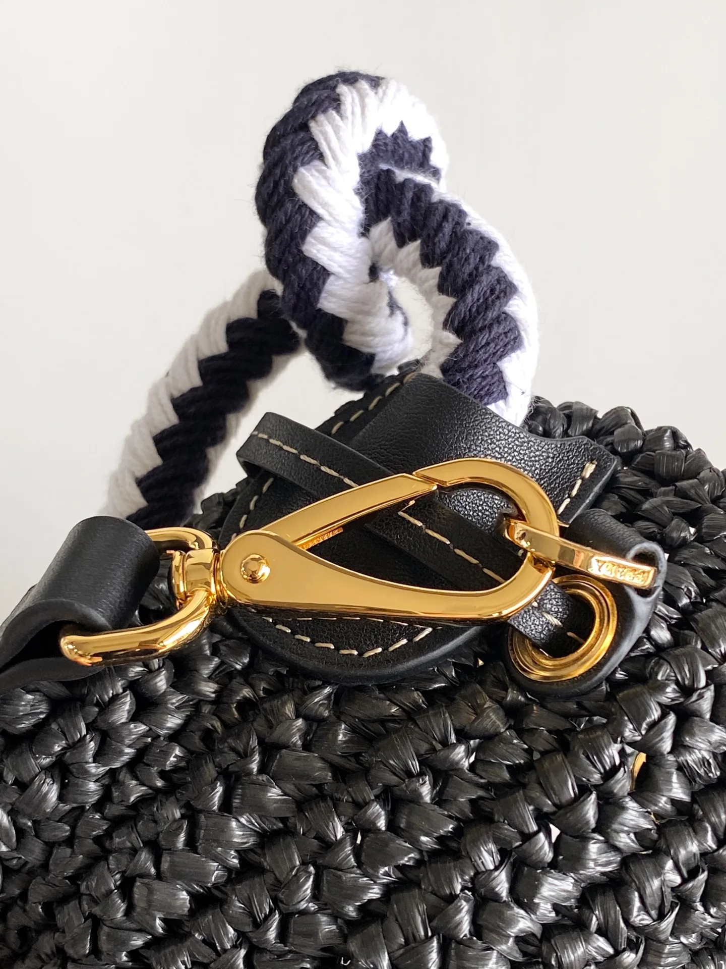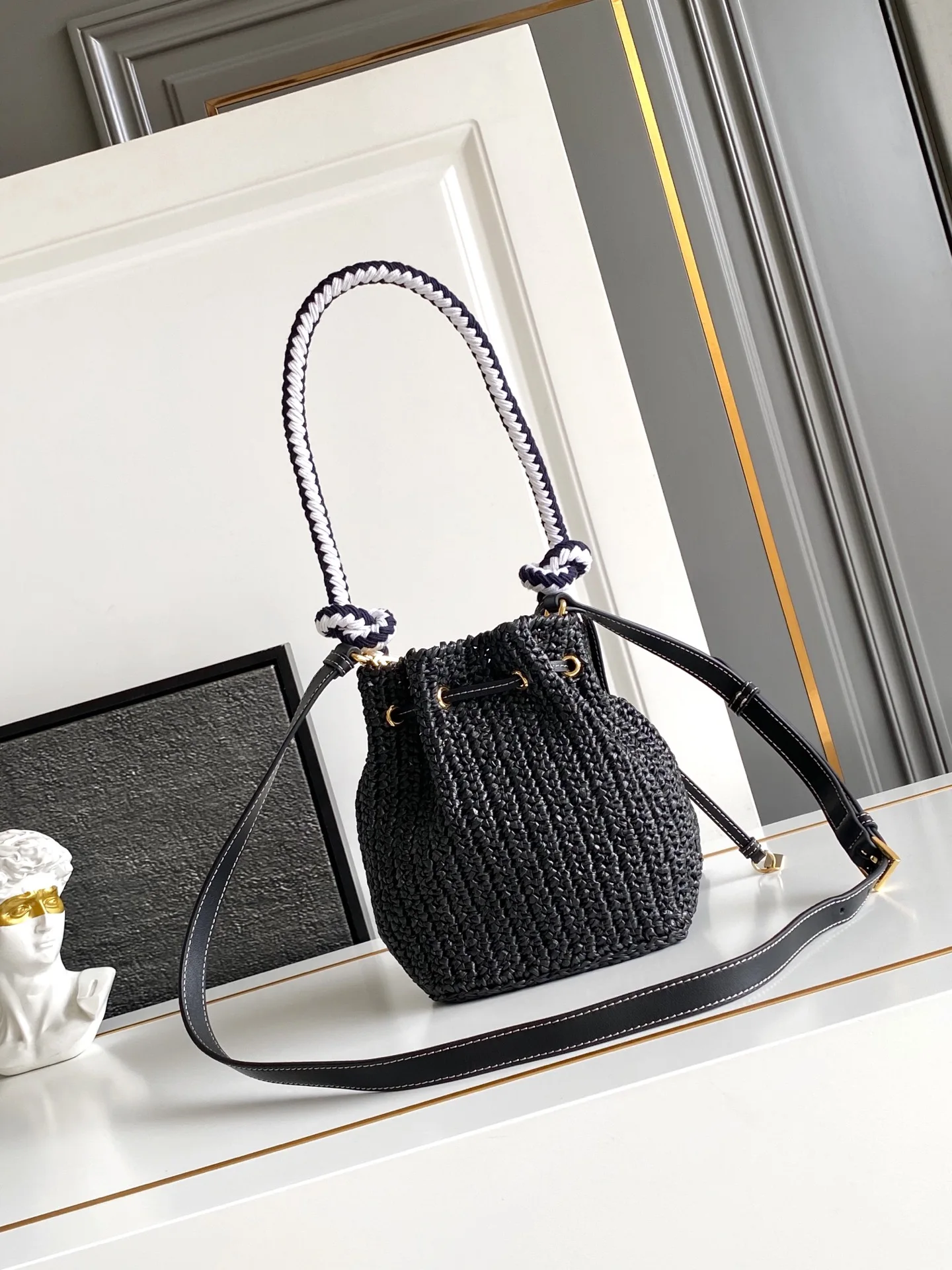 这款编织水桶包采用进口拉菲草材料 纯手工编织
