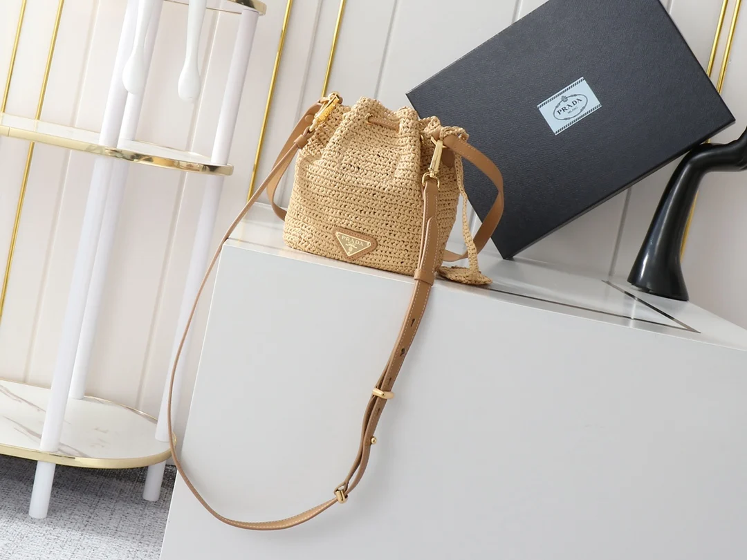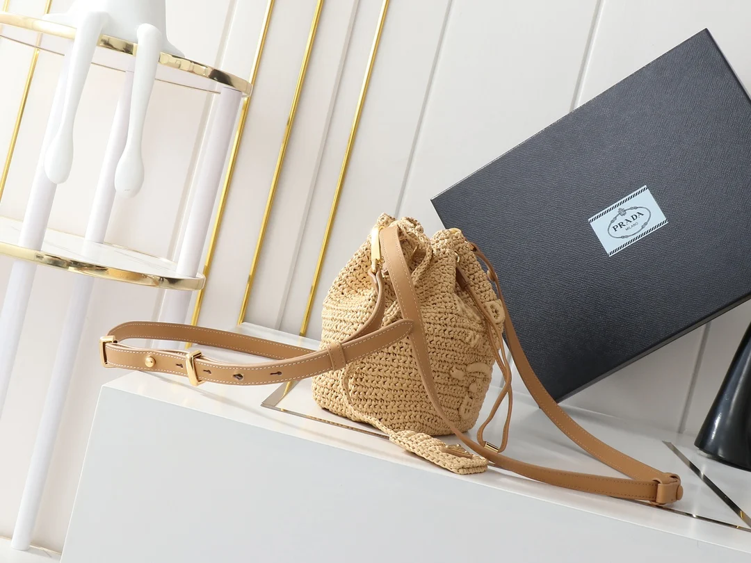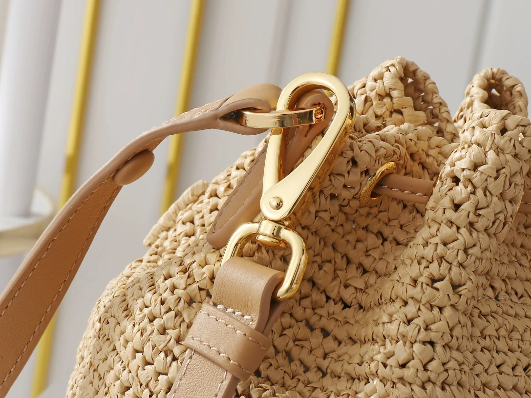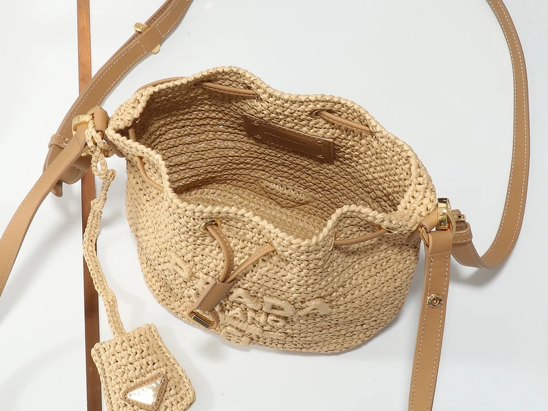 这款纯手工编织水桶包设计太棒了立体手工编织字体 配有长/短2条肩带 可交换 复杂手工显得格外大气/时尚 容量空间大 上身效果非常棒 回头率百分之百夏天必备赶紧入手吧