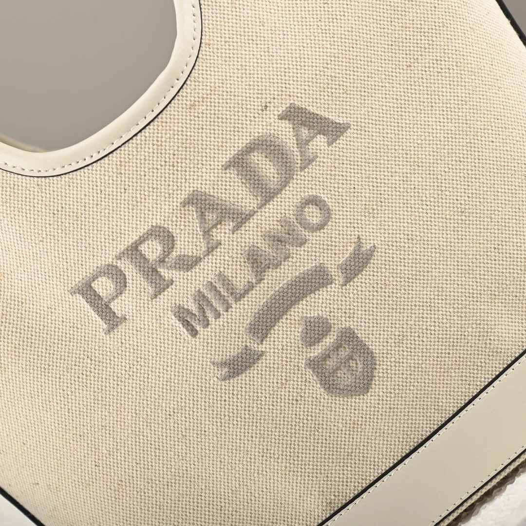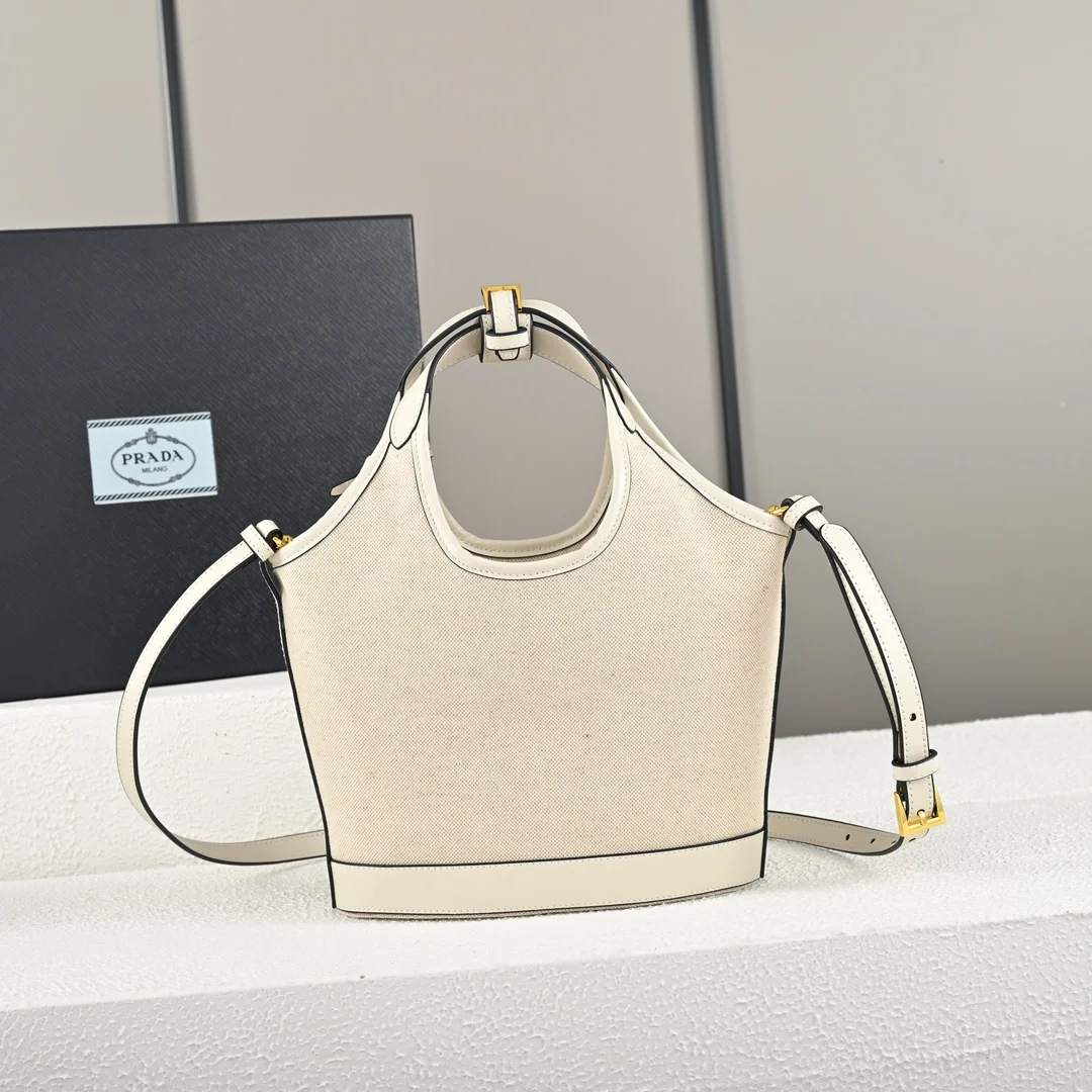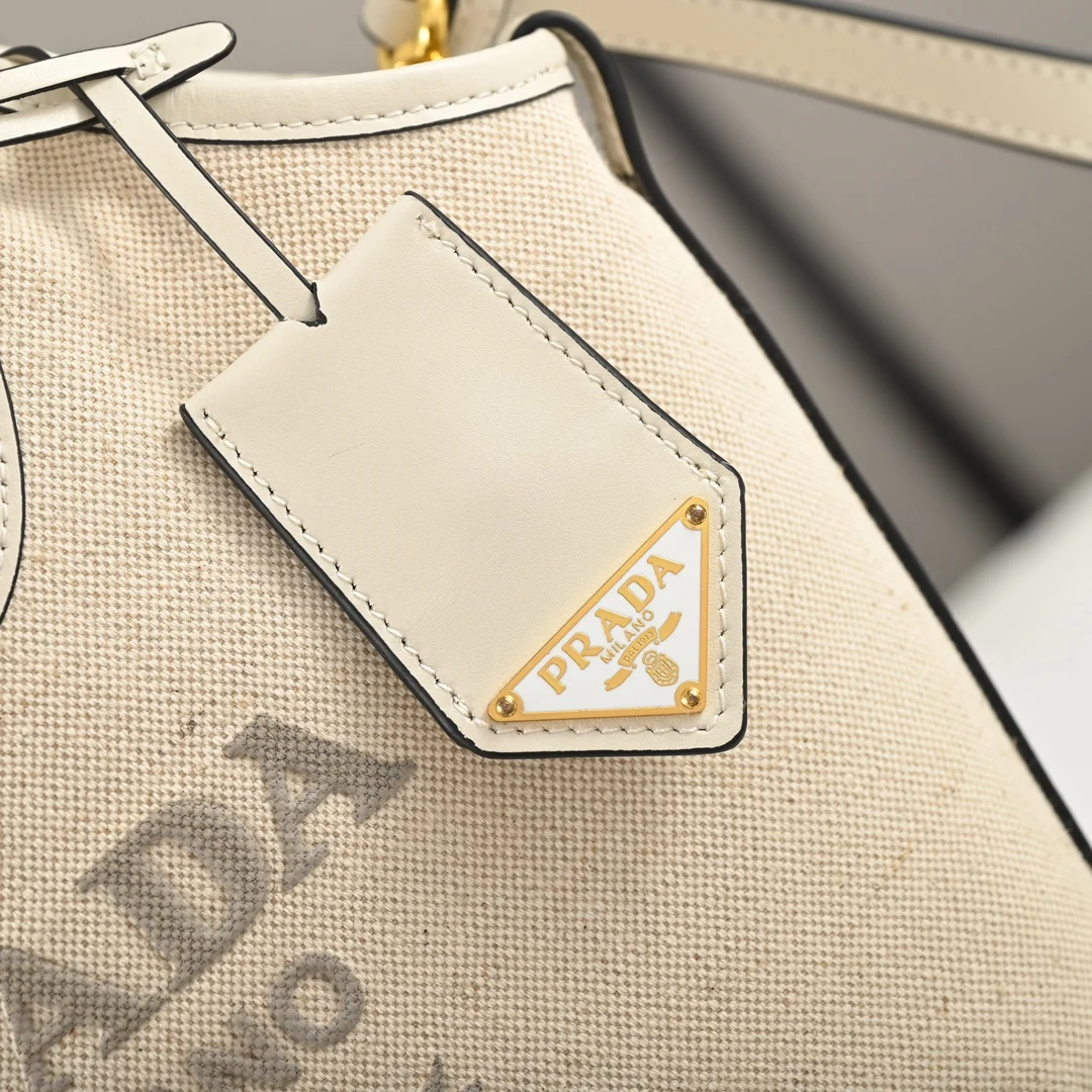 普拉达1BE074 Summer 亚麻混纺配皮托特包 手提斜挎包