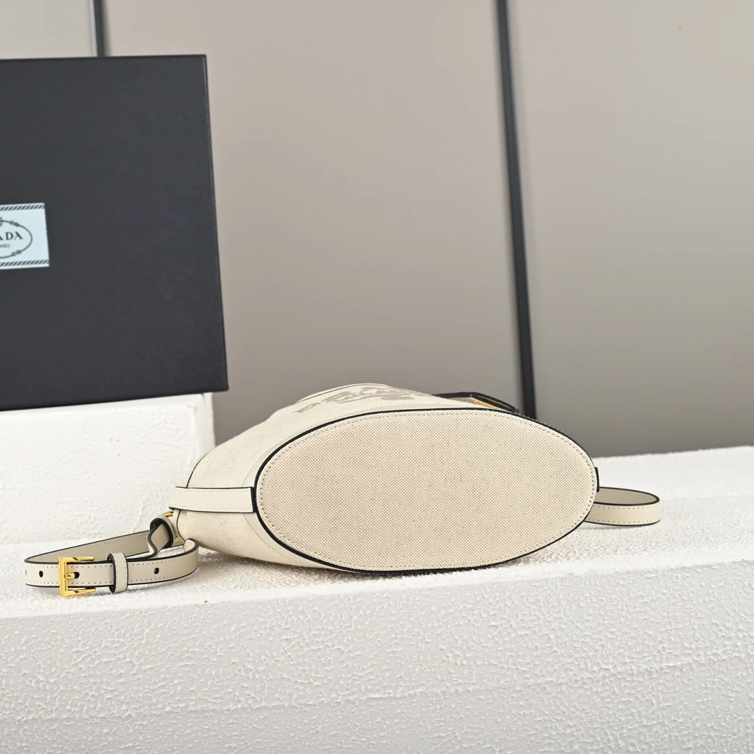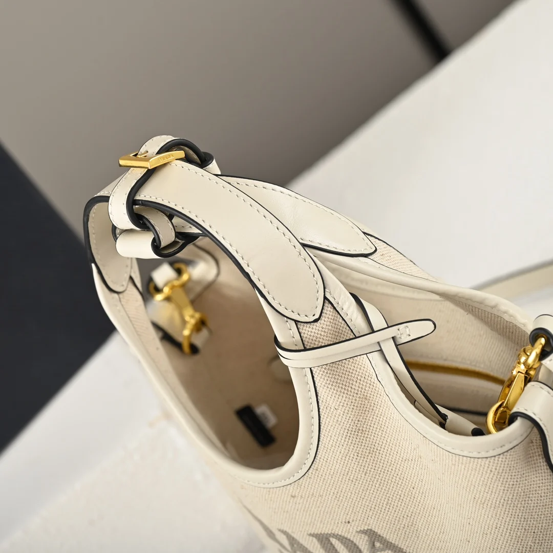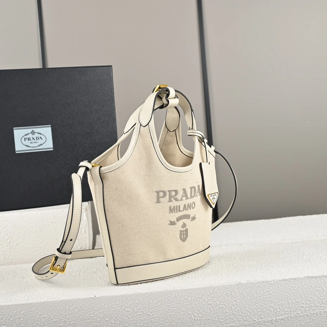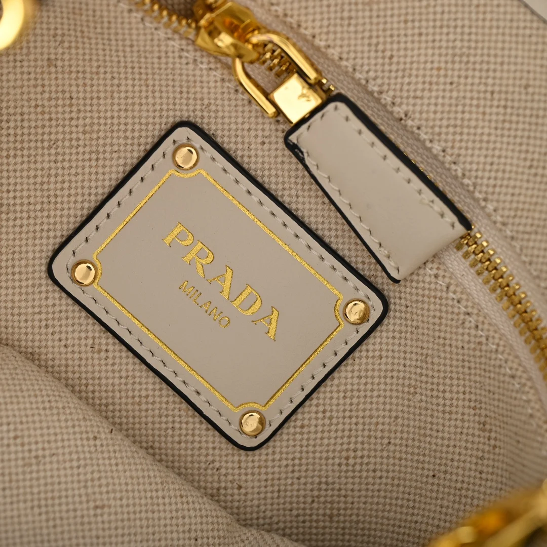 普拉达1BE074 Summer 亚麻混纺配皮托特包 手提斜挎包