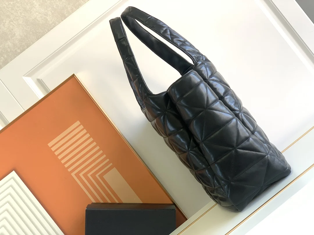 这款大购物袋采用进口羊皮 复杂手工车线菱格 手感柔软超赞 超大空间/格层多 轻便非常实用 平时背和出差用全没问题 太爱了又大又有范 喜欢宝宝们赶紧入手