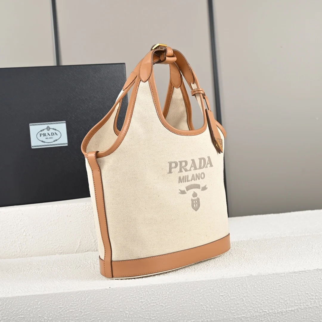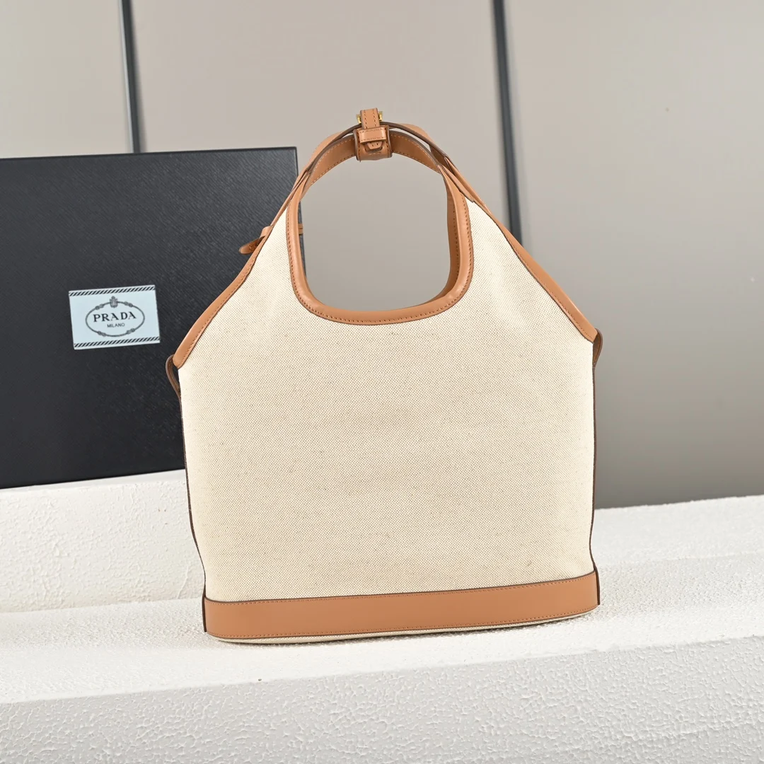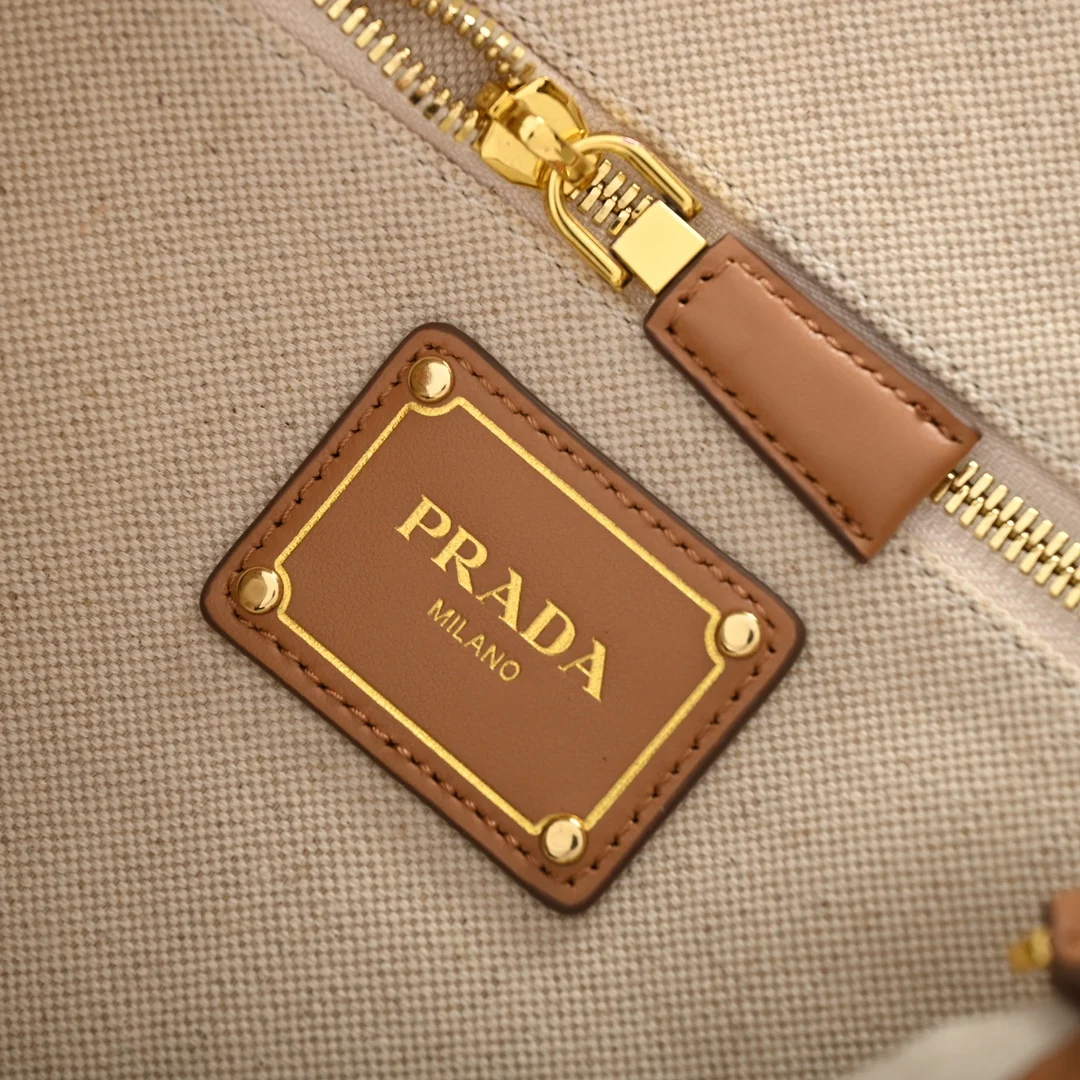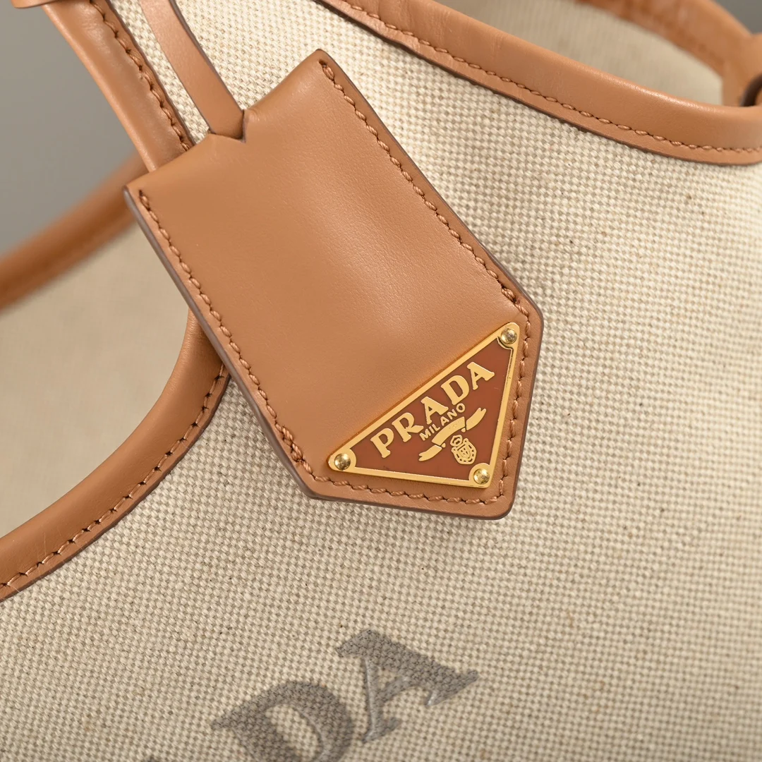 普拉达 1BG471 Summer新品亚麻混纺配皮托特包中号 手提包