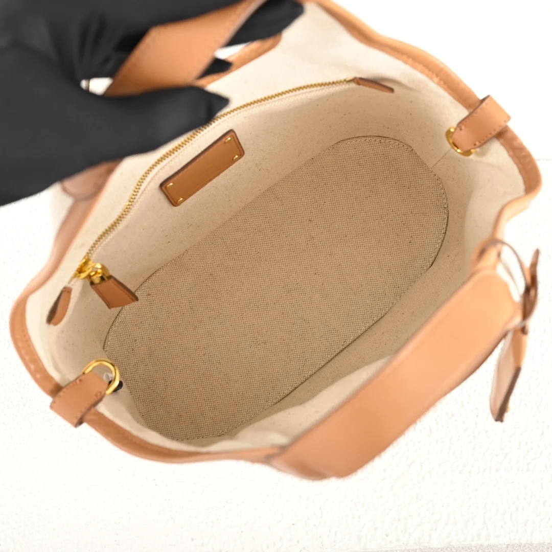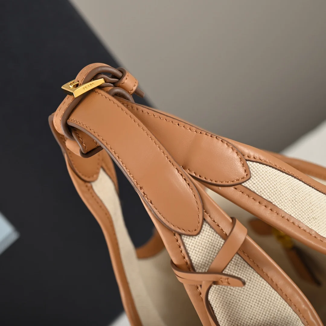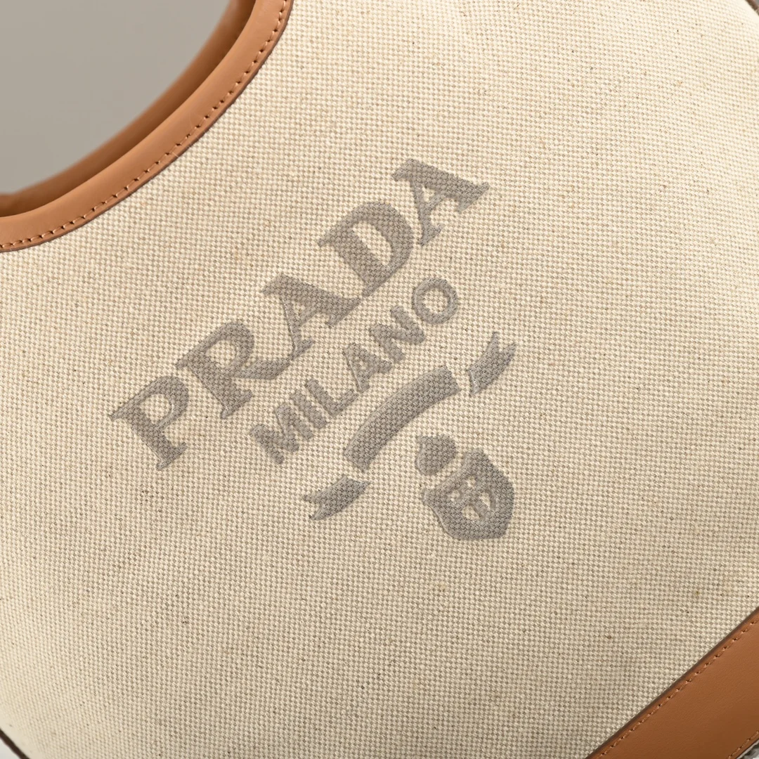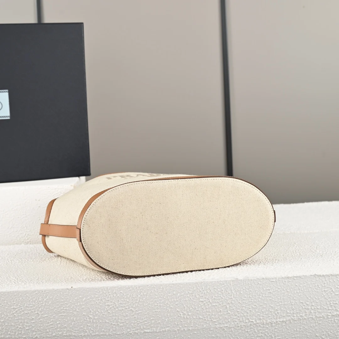 普拉达 1BG471 Summer新品亚麻混纺配皮托特包中号 手提包