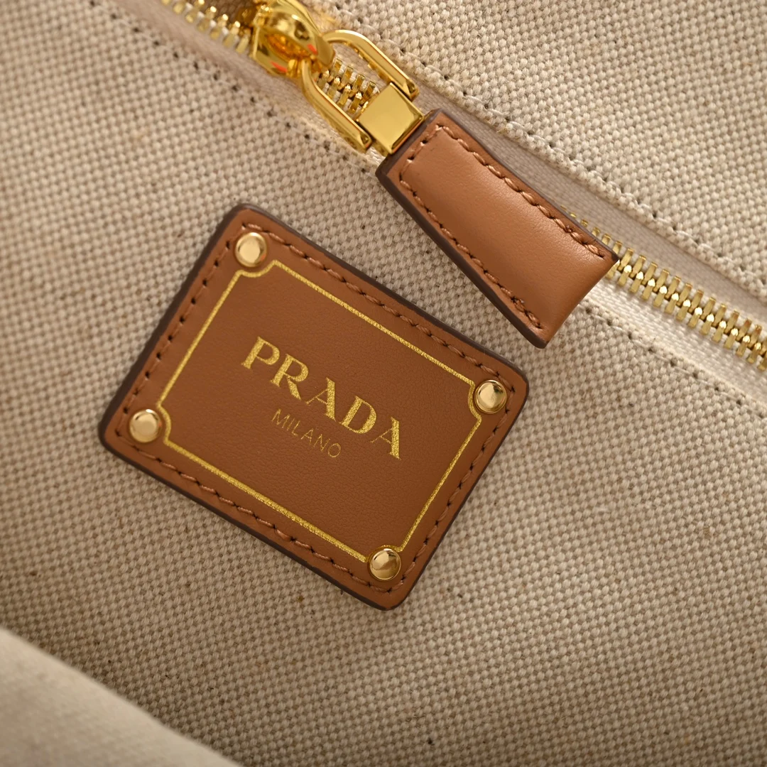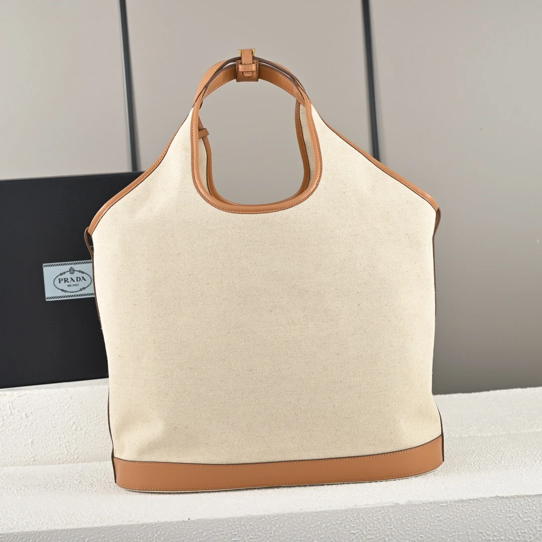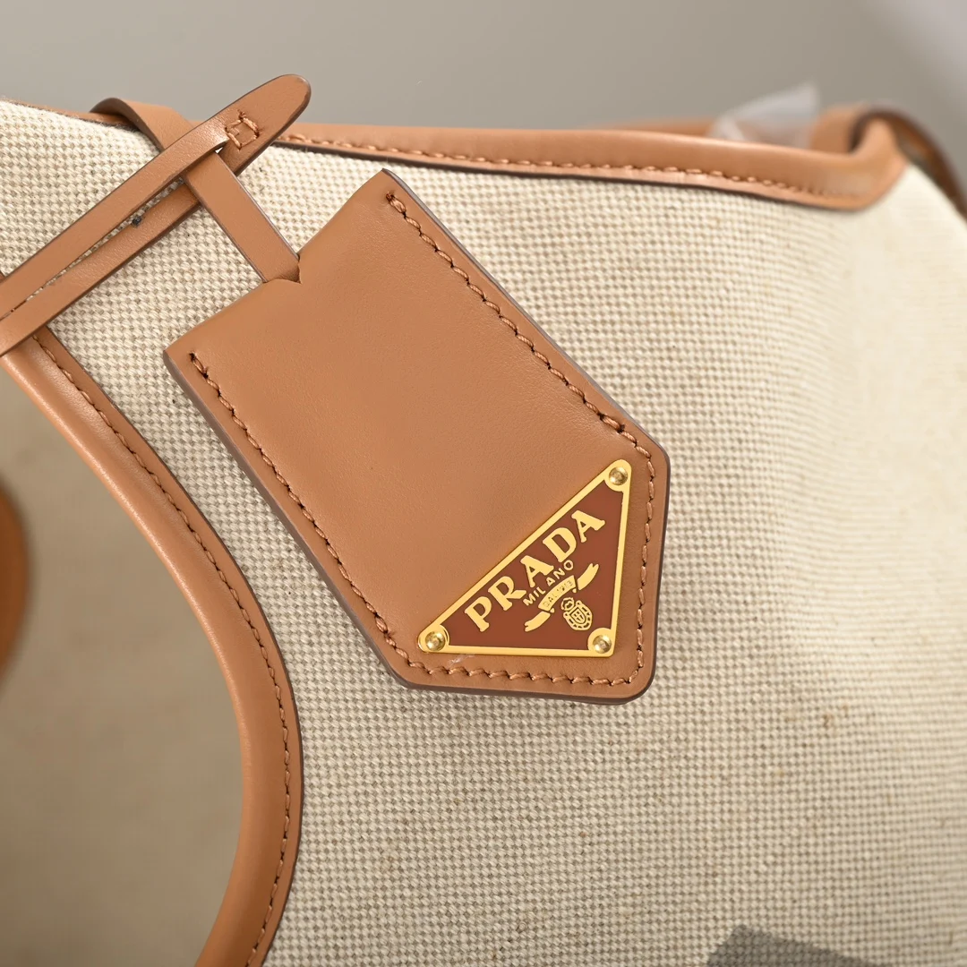 普拉达1BG472 Summer 亚麻混纺配皮大号托特包 手提包