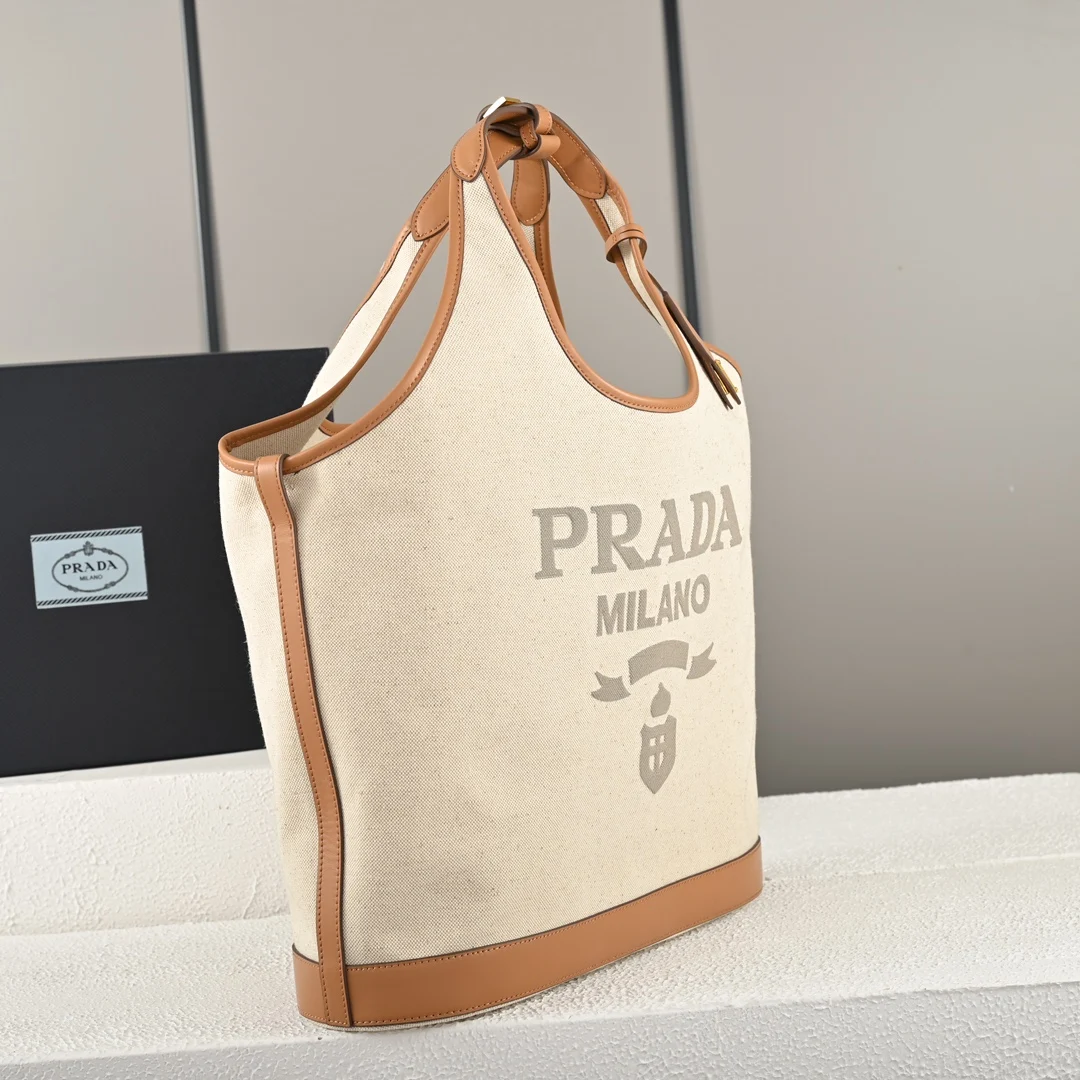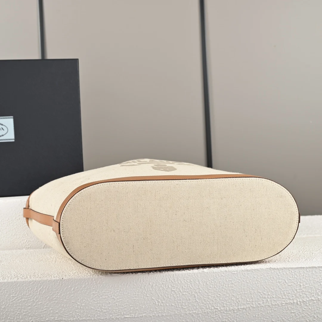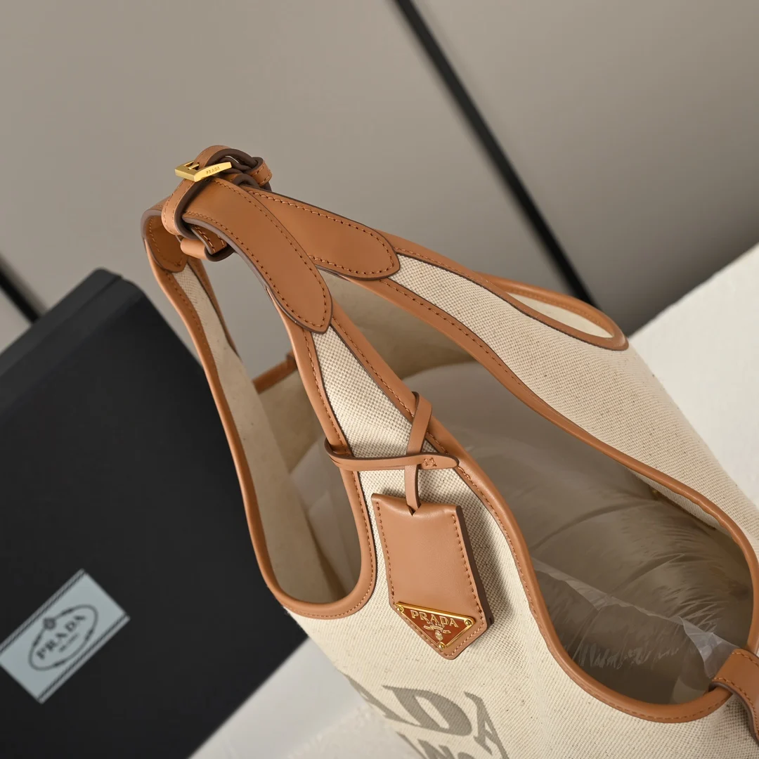 普拉达1BG472 Summer 亚麻混纺配皮大号托特包 手提包