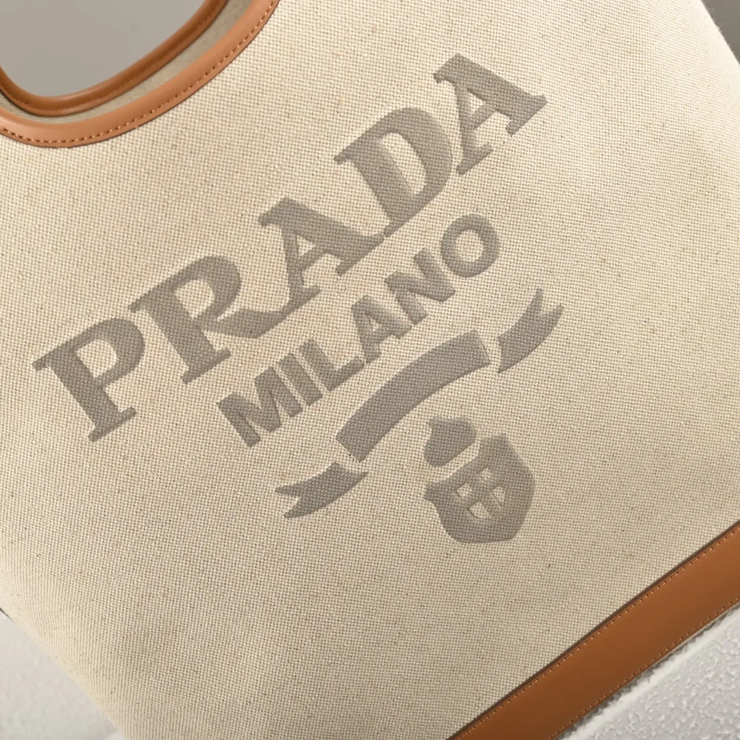普拉达 1BG472 Summer 亚麻混纺配皮大号托特包 手提包