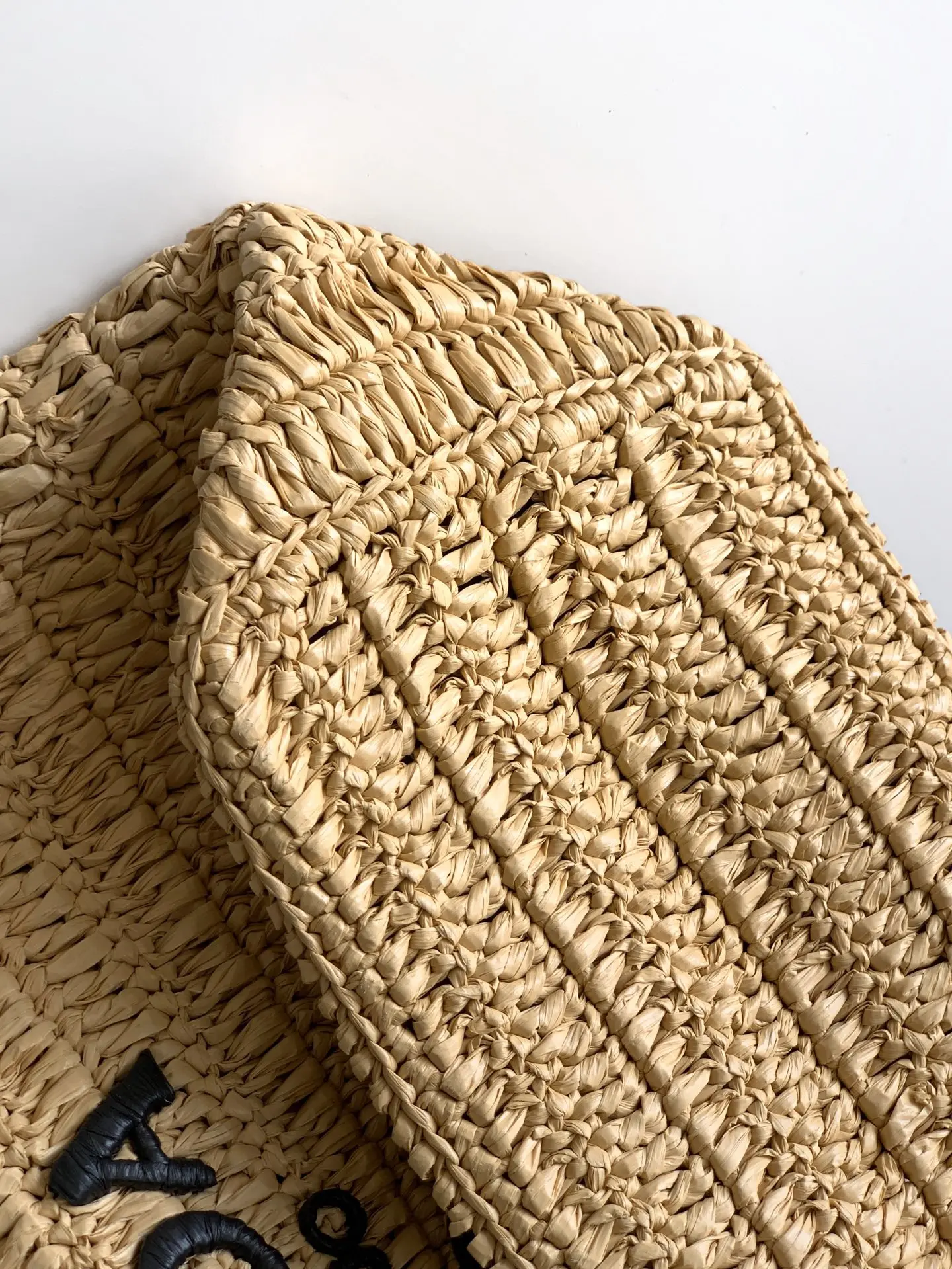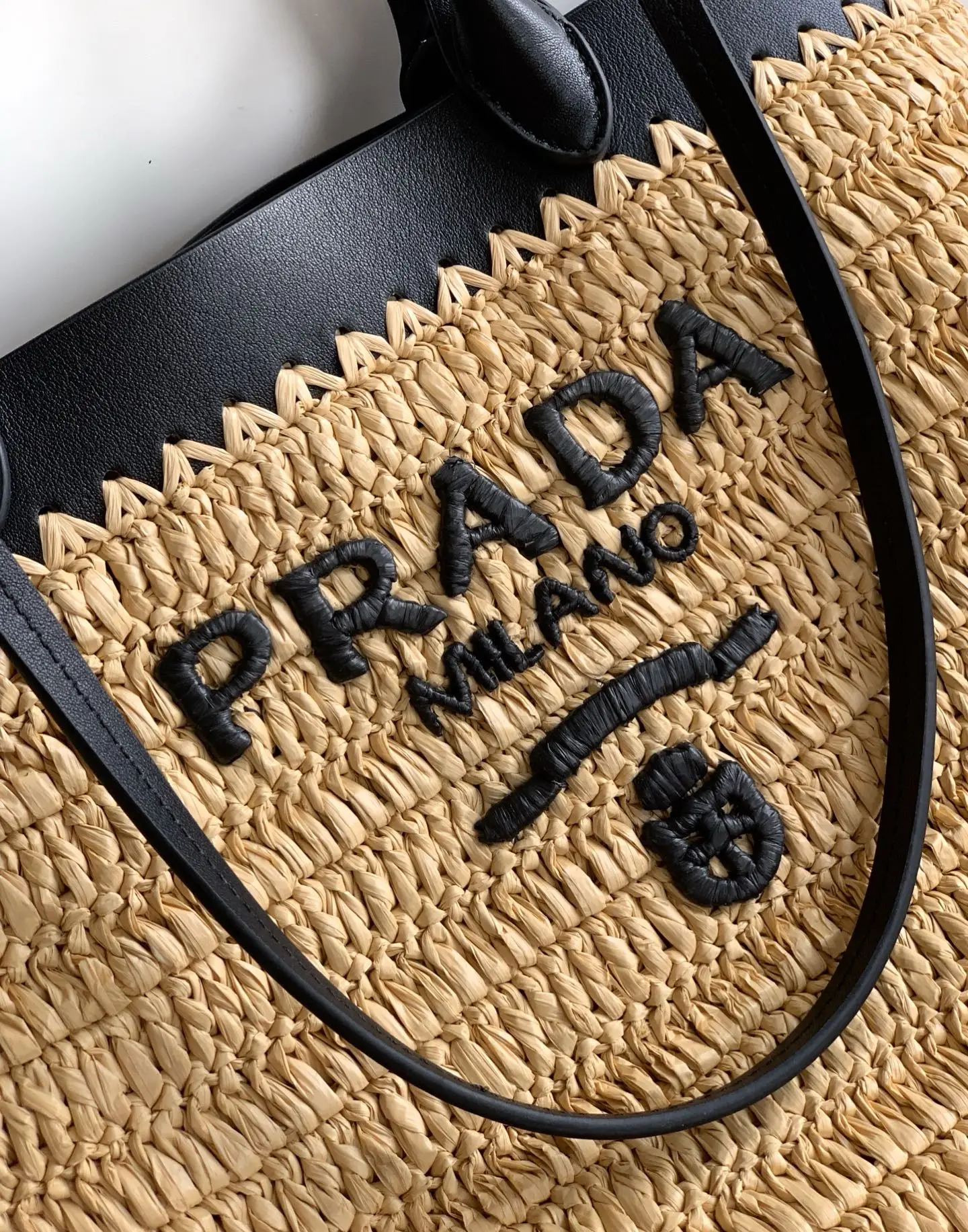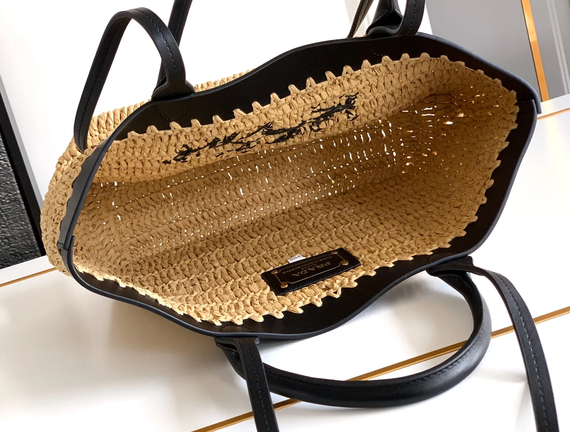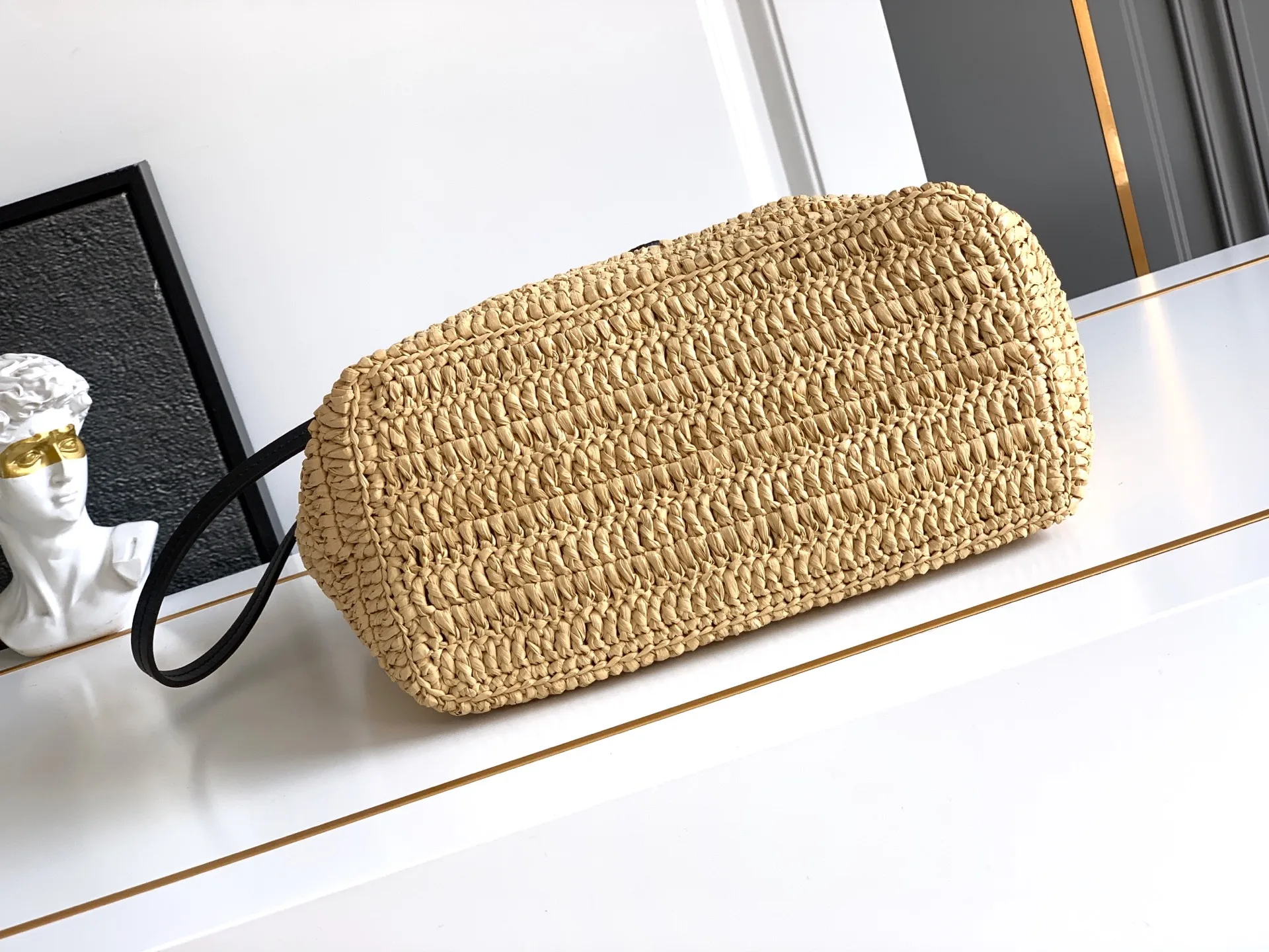 新款草编托特包 这款现代而精致的托特包结合钩编工艺和皮革细节 营造出夏日氛围 牛皮双提手 可用作手提包或单肩包 正面饰以撞色刺绣字母徽标 增添辨识度 精致的编织包身散发出浓郁的春夏气息啦 简单背着就能赋予无与伦比的高级质感啦 空间容量大 又是一个经典爆款啦