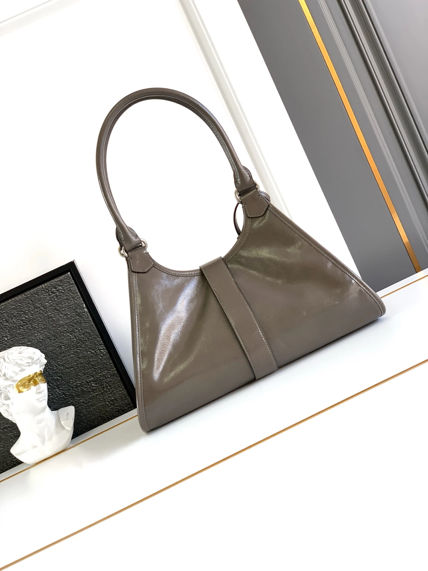 这款走秀款采用进口油腊皮 顶级五金 前幅配有插扣锁开合 容量空间大 又可手提又可肩背 上身效果非常大气时尚 喜欢宝宝们 赶紧入手吧