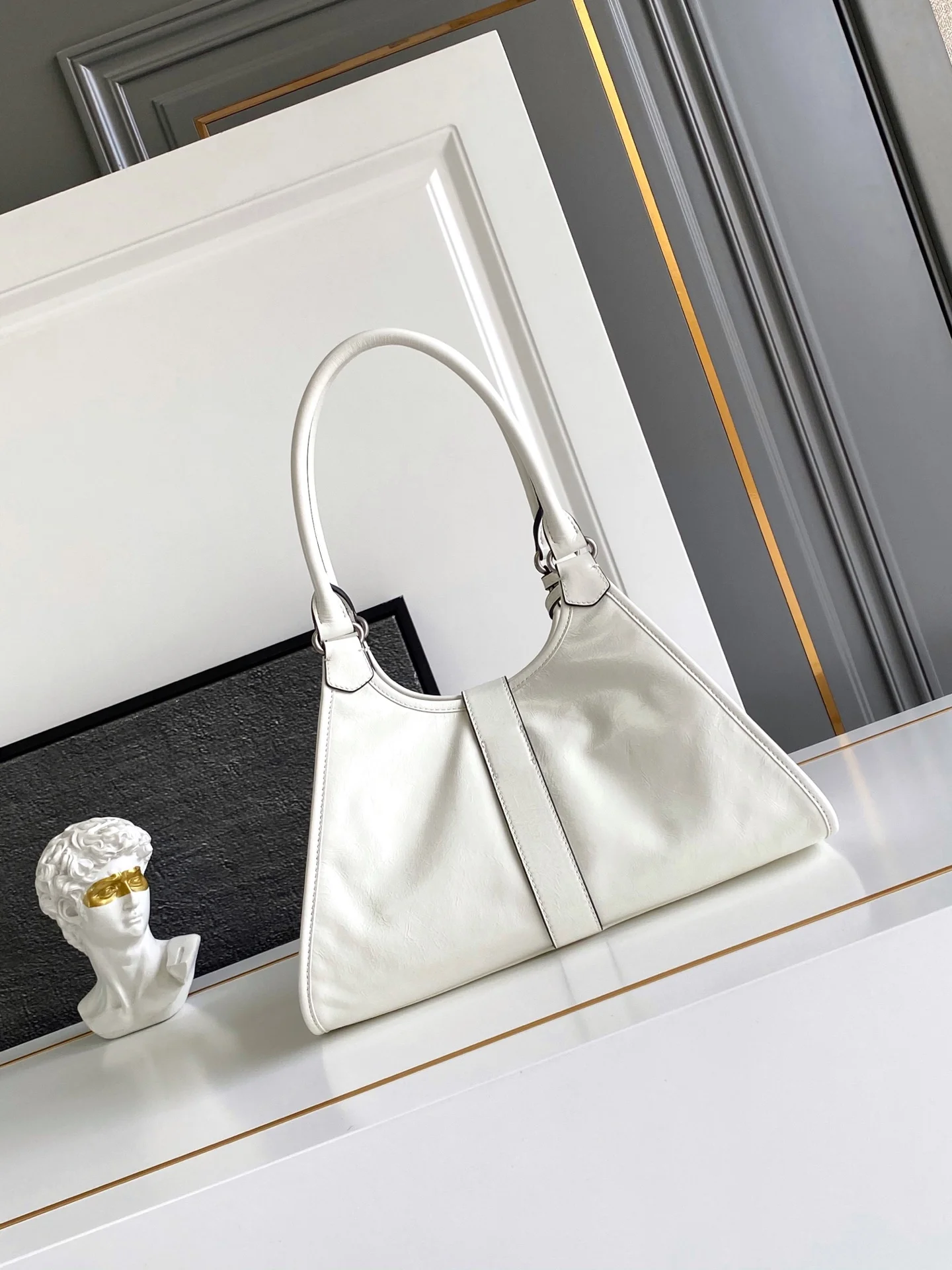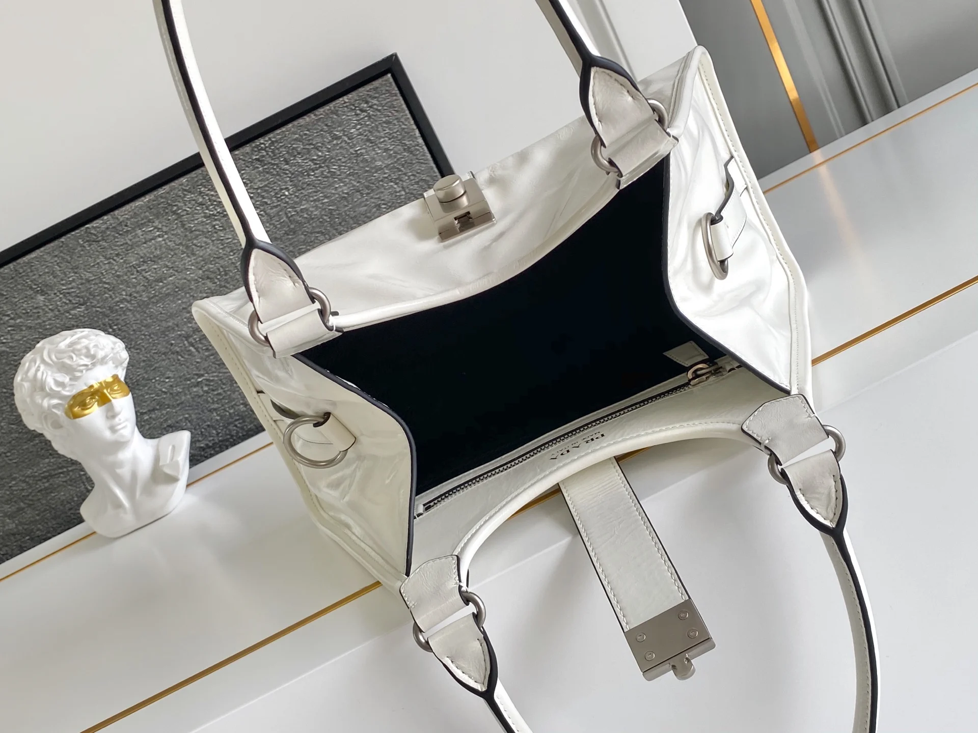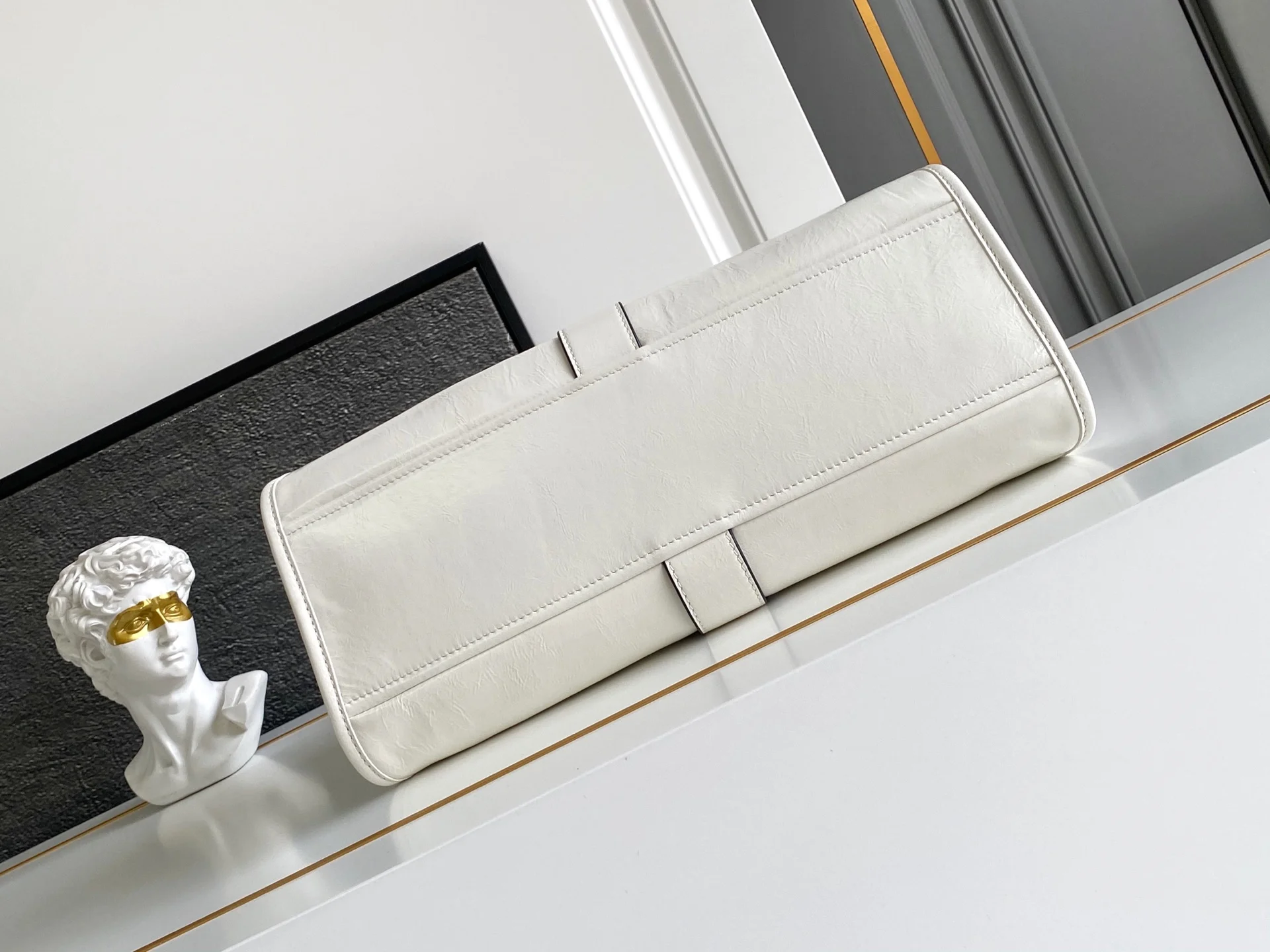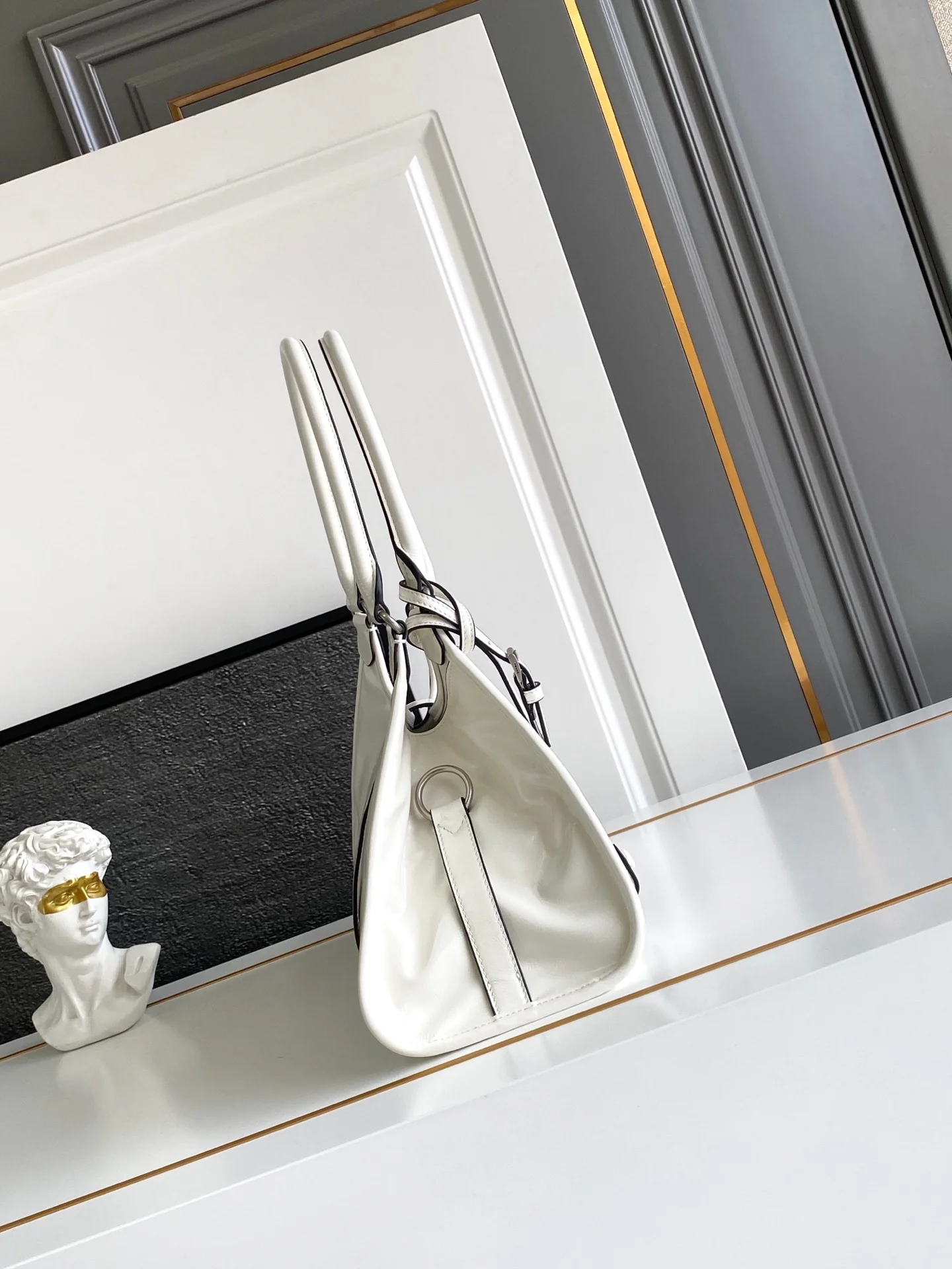 这款走秀款采用进口油腊皮 顶级五金 前幅配有插扣锁开合 容量空间大 又可手提又可肩背 上身效果非常大气时尚 喜欢宝宝们 赶紧入手吧