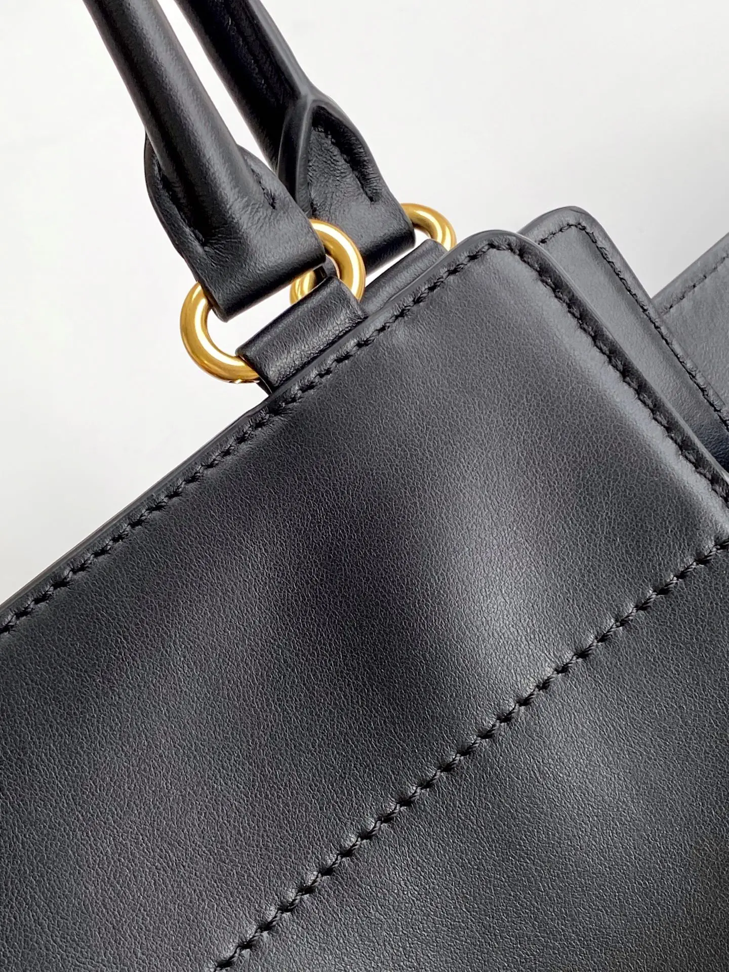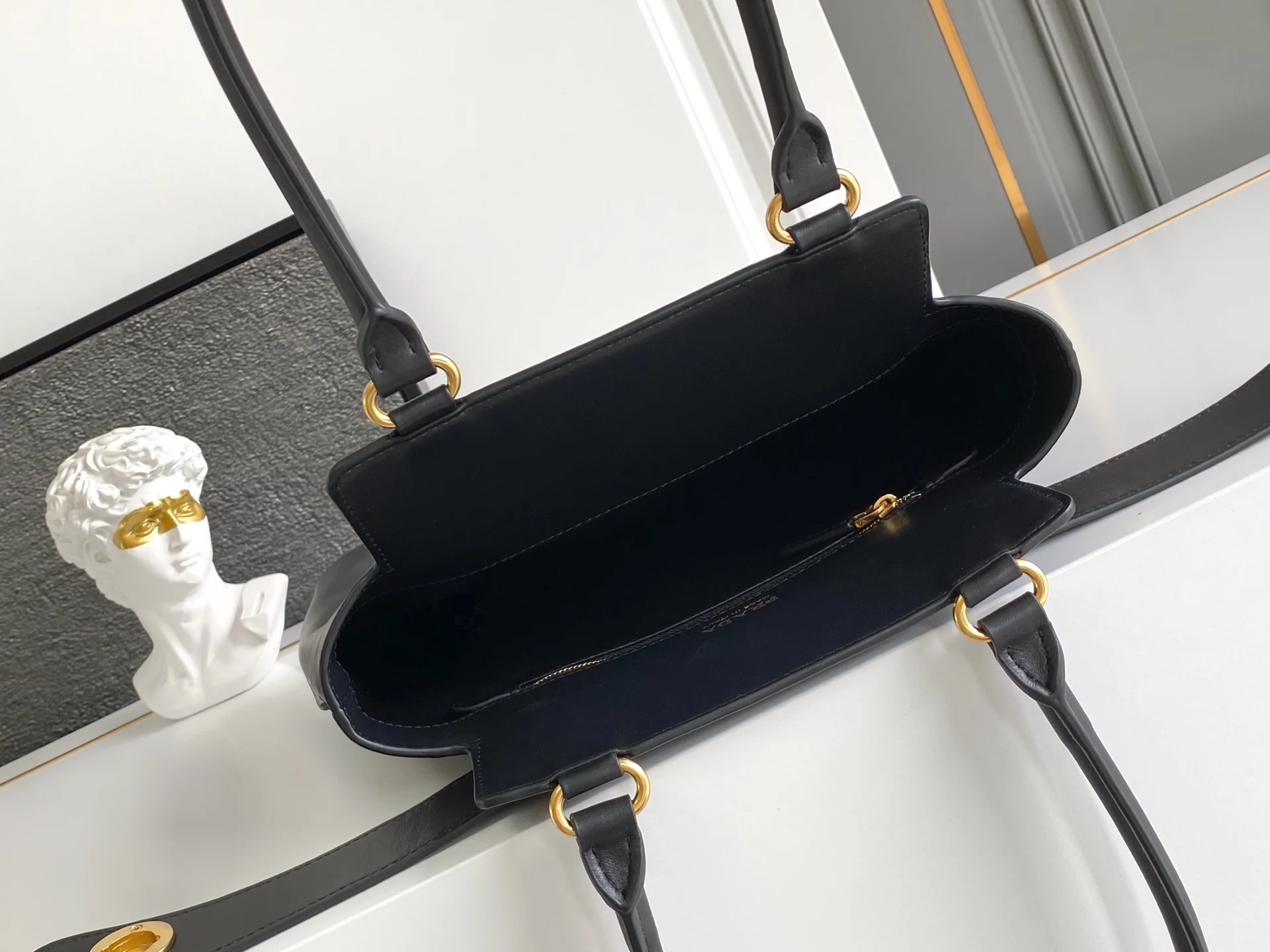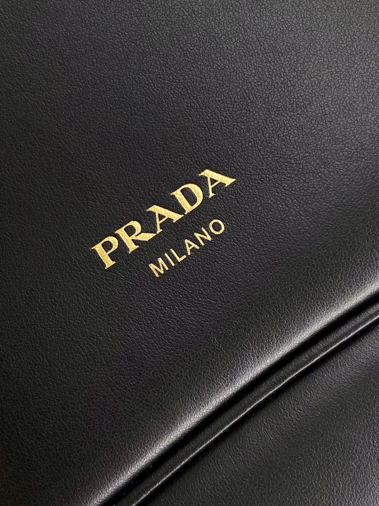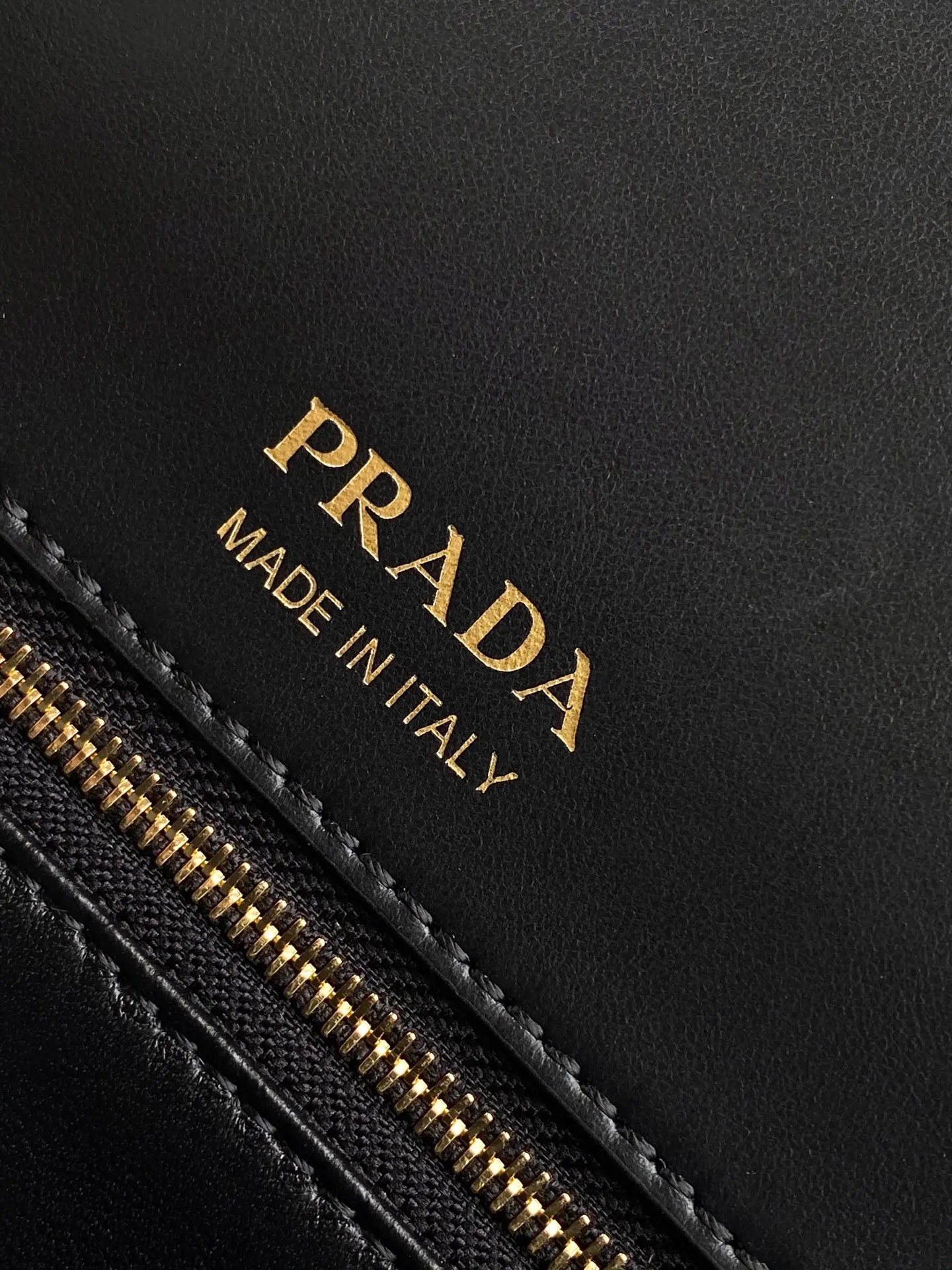 2025SS新款 长手腕Carey中号手提包 未来感与复古风和谐交融 以精致细节定义这款皮革手袋 在优雅设计中 经典与当代素并存 出自Prada档案库的精致转锁搭扣为整体造型添彩
