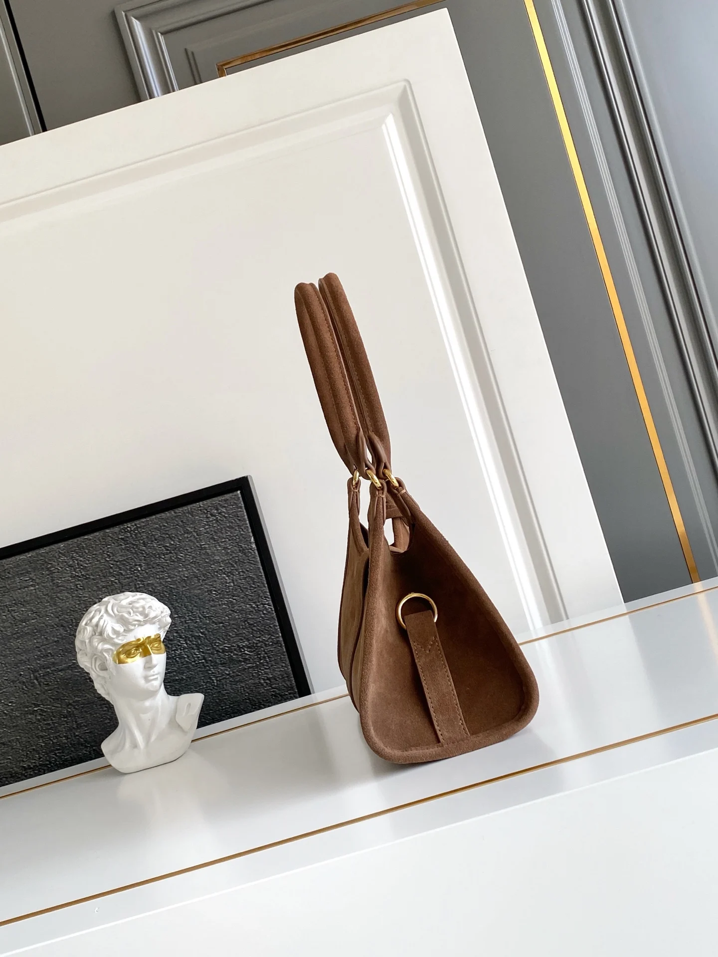 这款迷你走秀款采用进口麂皮 顶级五金 前幅配有插扣锁开合 容量空间大 又可手提又可肩背 上身效果非常大气时尚 喜欢宝宝们 赶紧入手吧