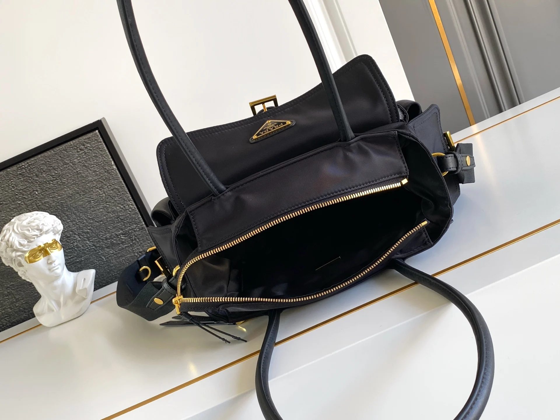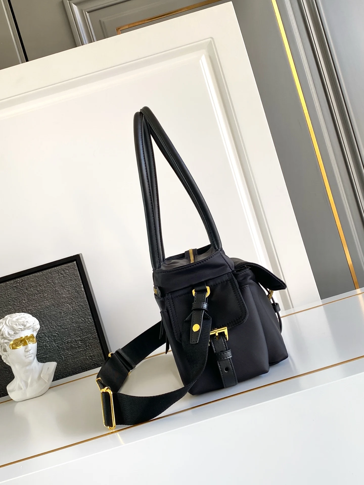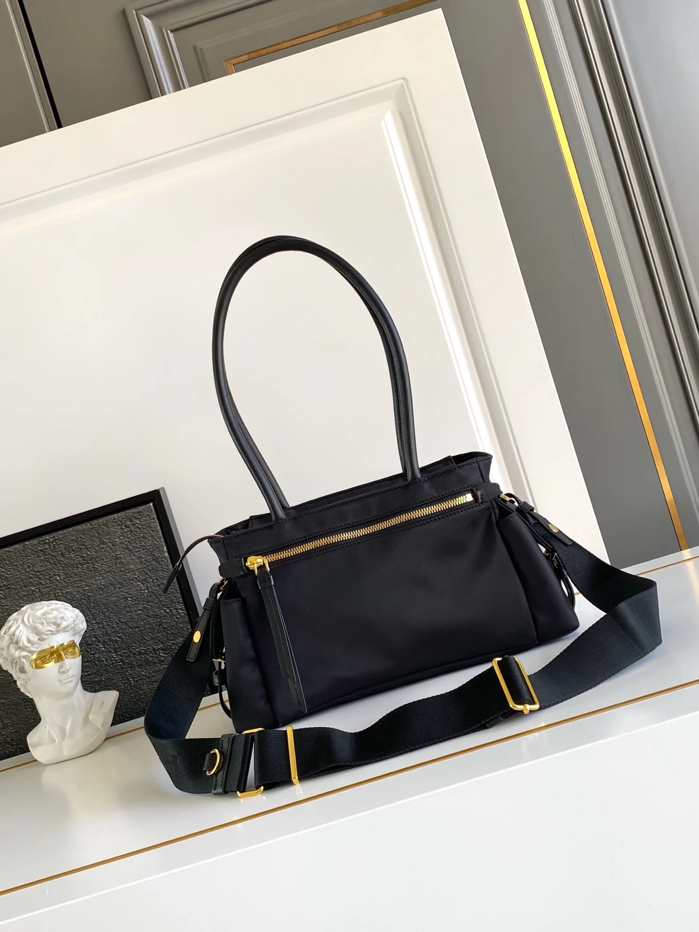 这款手提包采用进口尼龙面料和小牛皮 顶级五金 手提为小牛皮设计 配有一条可拆卸长肩带 又可肩背/手提/斜跨/ 配有多口袋 功能性非常实用 容量空间大 太完美了 又是一款永久不过时爆款 赶紧入手吧
