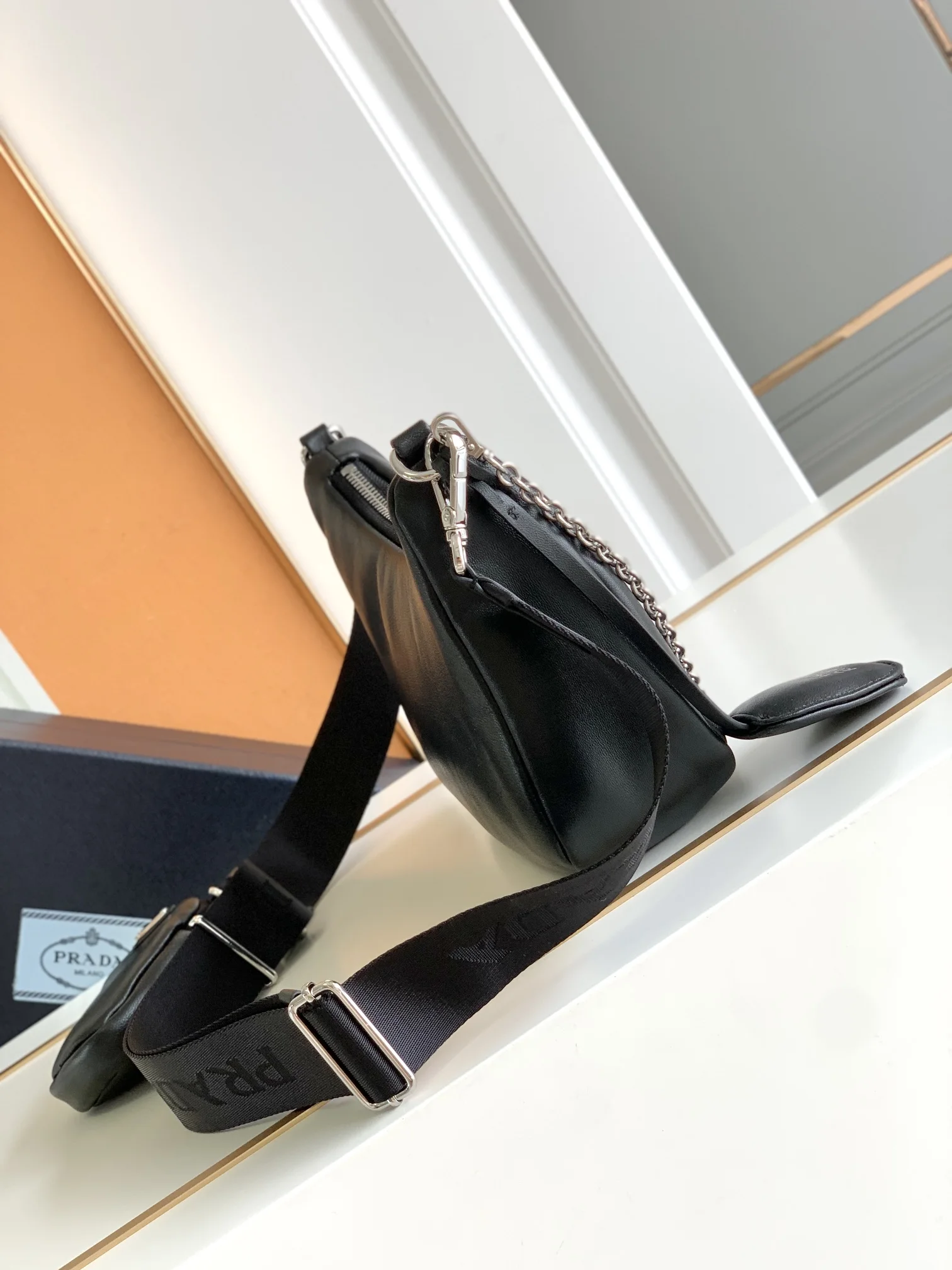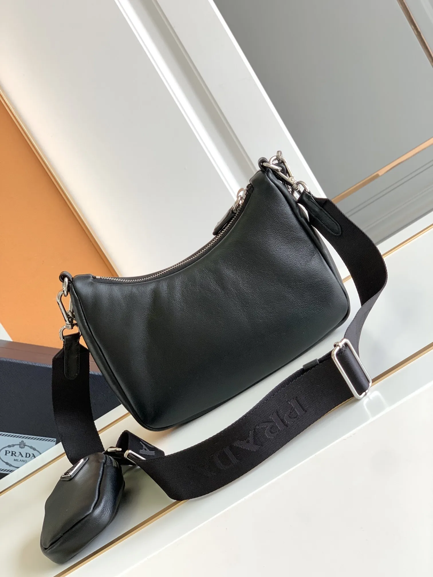 这款三合一加衬单肩包取材软羊革打造 塑就简约廓形 配有可拆卸尼龙长肩带和琏条 最爱的肩带上的小包 太可爱手感特别柔软 又实用又休闲 宝宝们赶紧入手吧