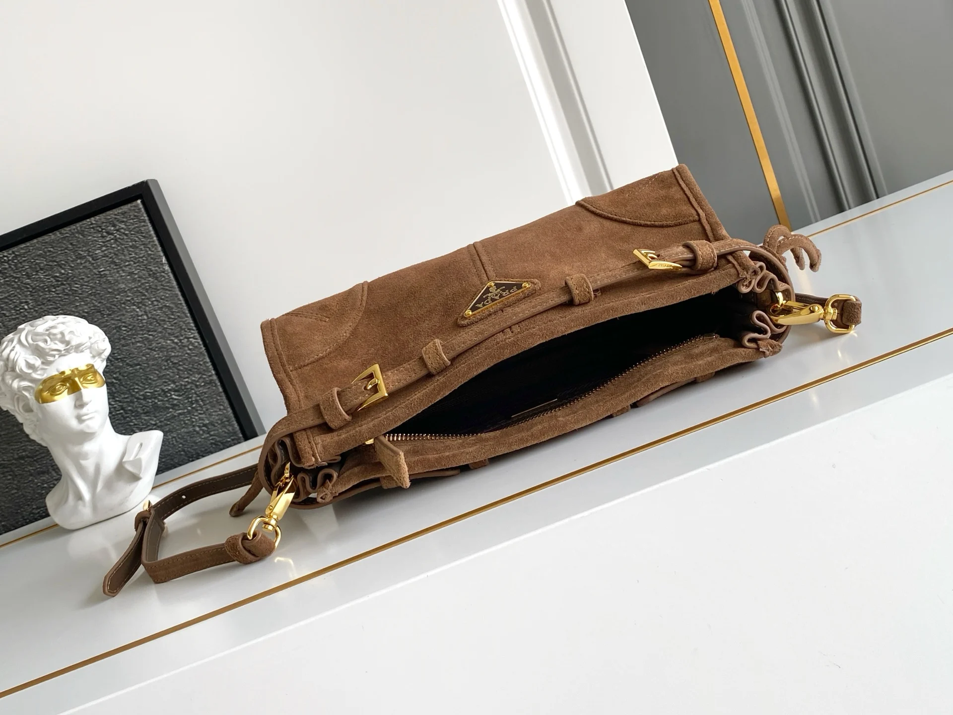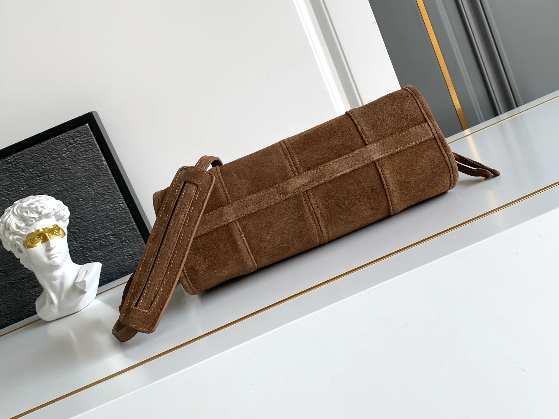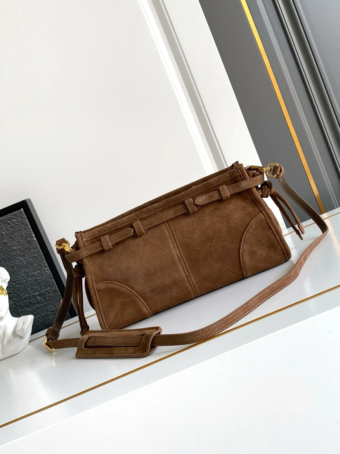 新款LusSolf麂皮 斜跨包这款斜挎包采用进口麂皮轮廓柔和 配有一条可拆卸调节的长肩带 方便肩背和斜跨 容量空间非常大 巨巨好用 绝对是时商达人们的必备款 赶紧把这款复古格调斜跨包带回家吧