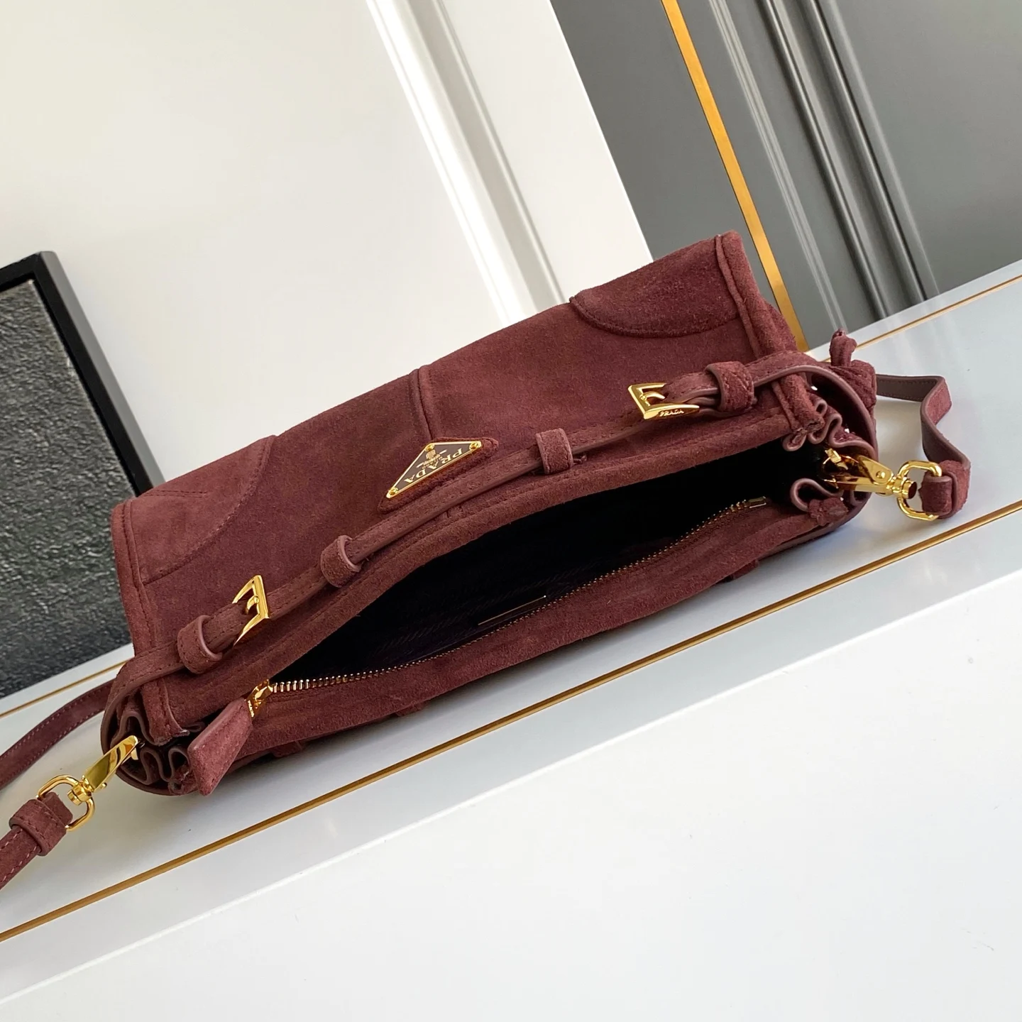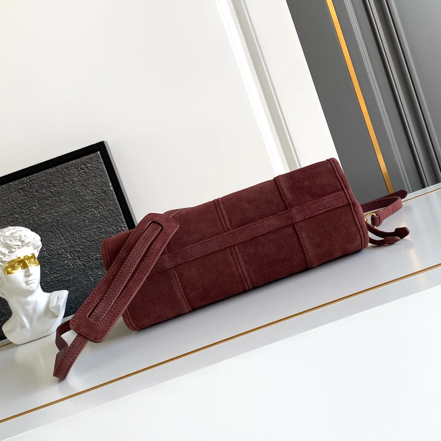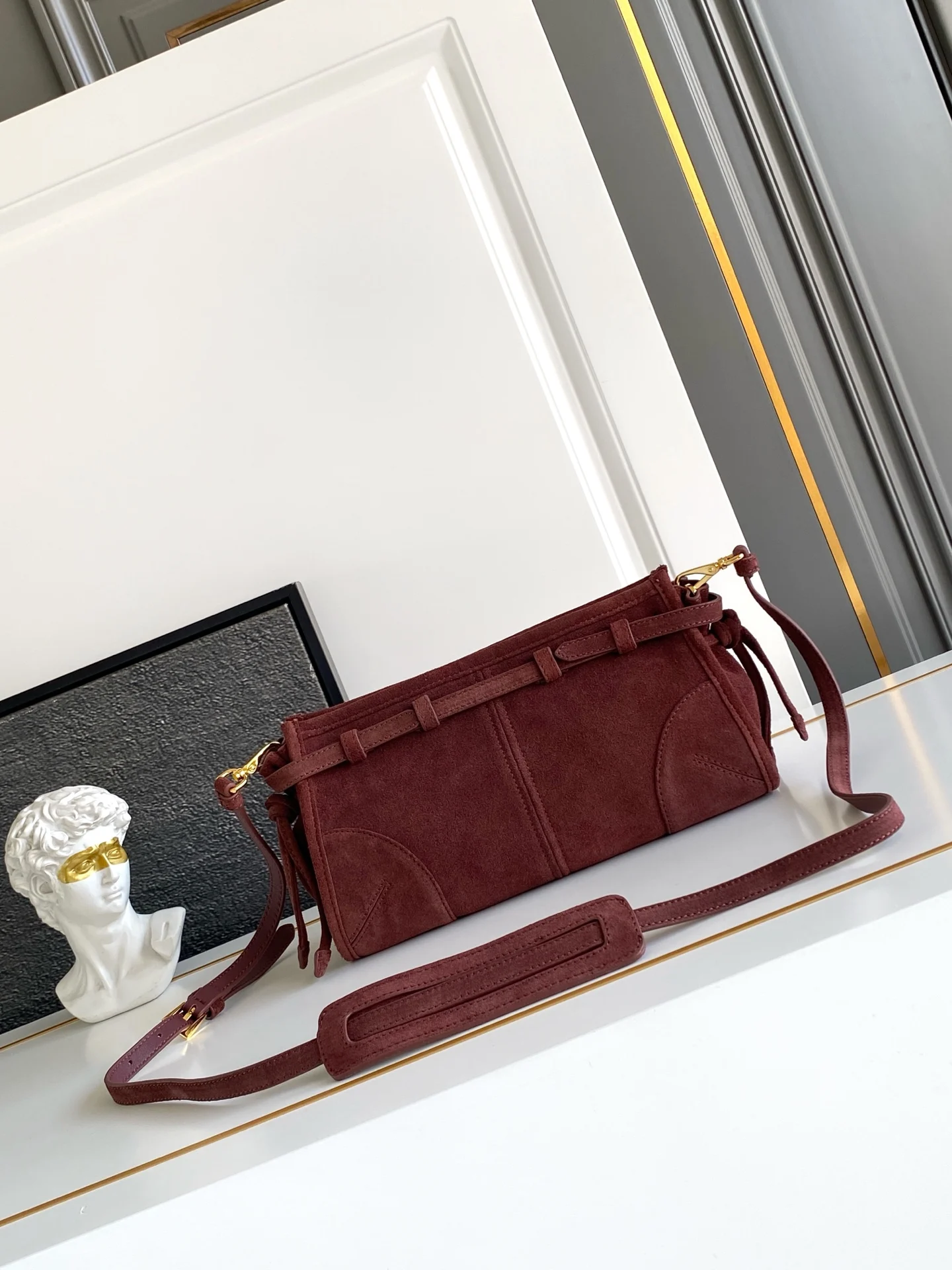 新款LusSolf麂皮 斜跨包这款斜挎包采用进口麂皮轮廓柔和 配有一条可拆卸调节的长肩带 方便肩背和斜跨 容量空间非常大 巨巨好用 绝对是时商达人们的必备款 赶紧把这款复古格调斜跨包带回家吧