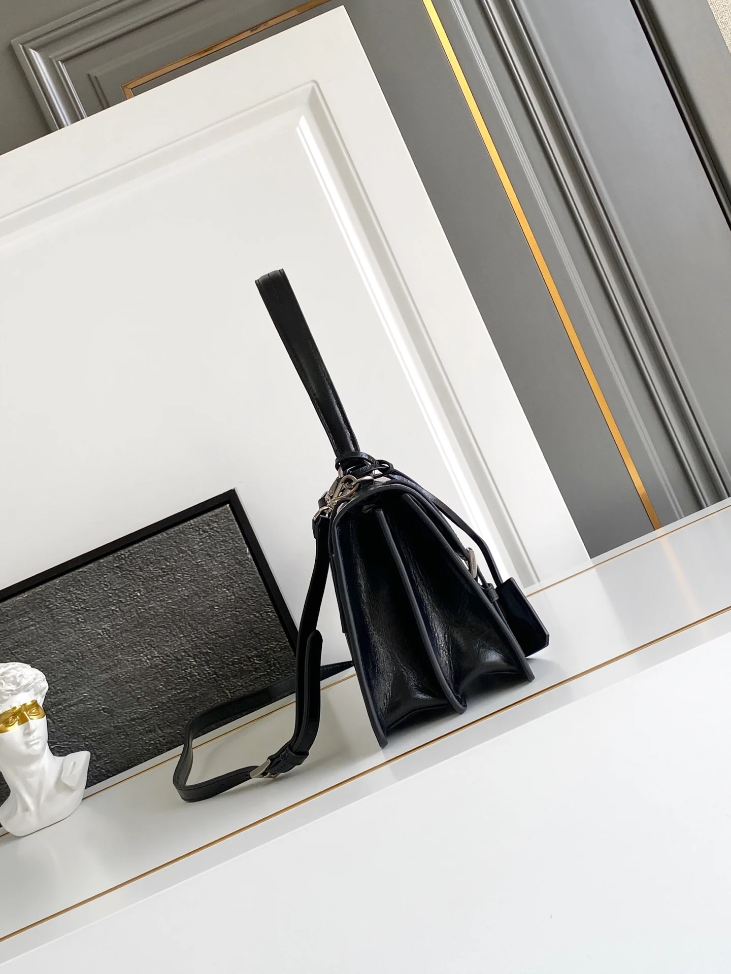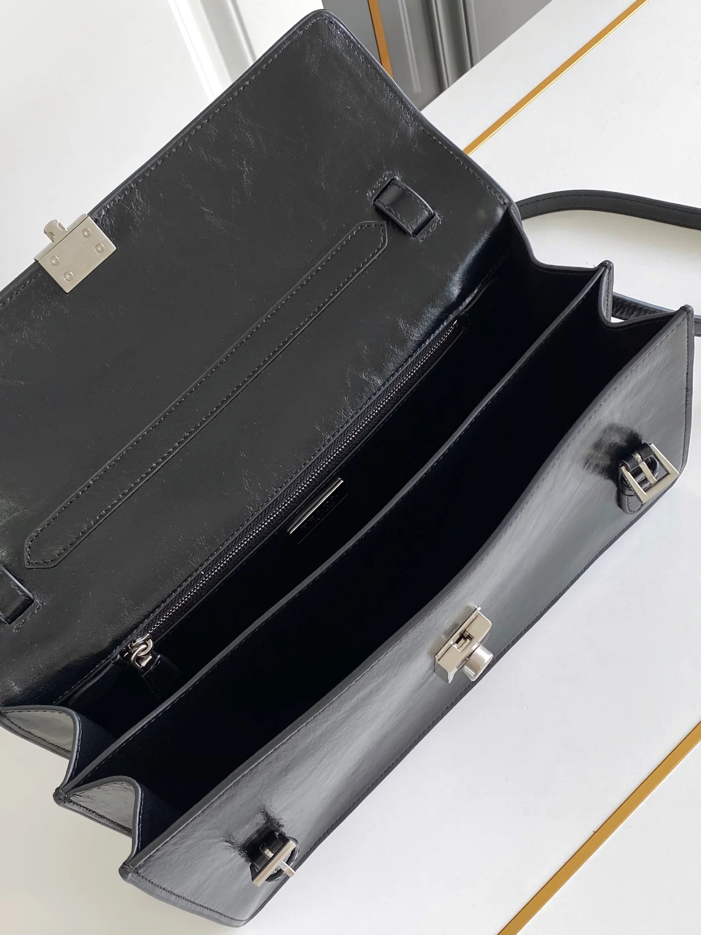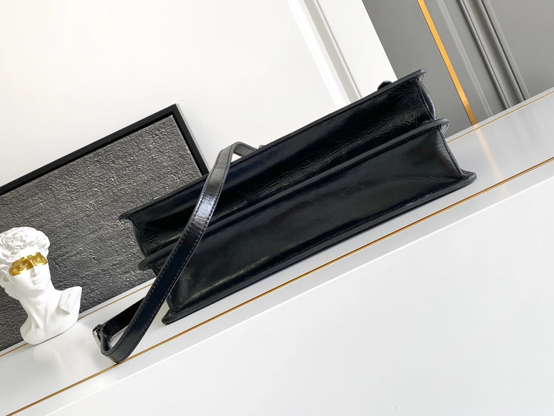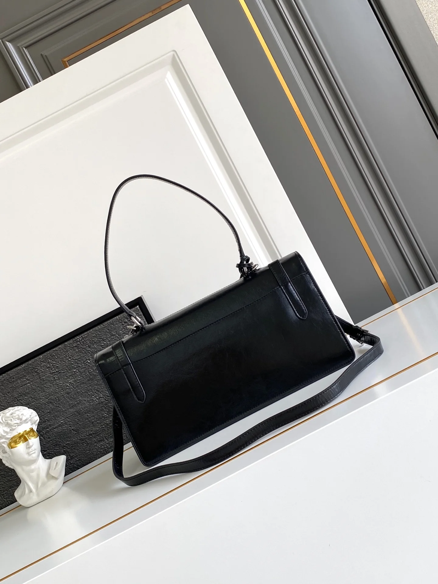 这款皮革手袋灵感源自挺括正式的公文包 质感细腻亮泽 以全新态度重释经典办公风格廓形 采用精致柔和细节设计 为包袋的经典造型更添温柔和百搭魅力 经典竖向锁扣装点细节 搭配长手提柄 可挎肩背携 更加实用 又是一款永久不过时爆款 赶紧入手吧