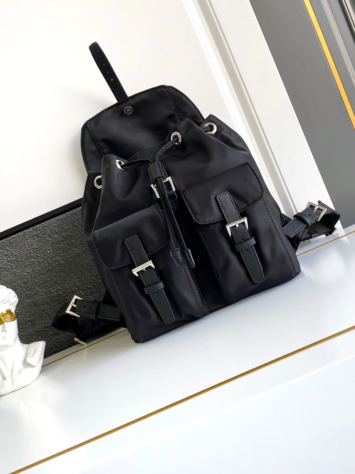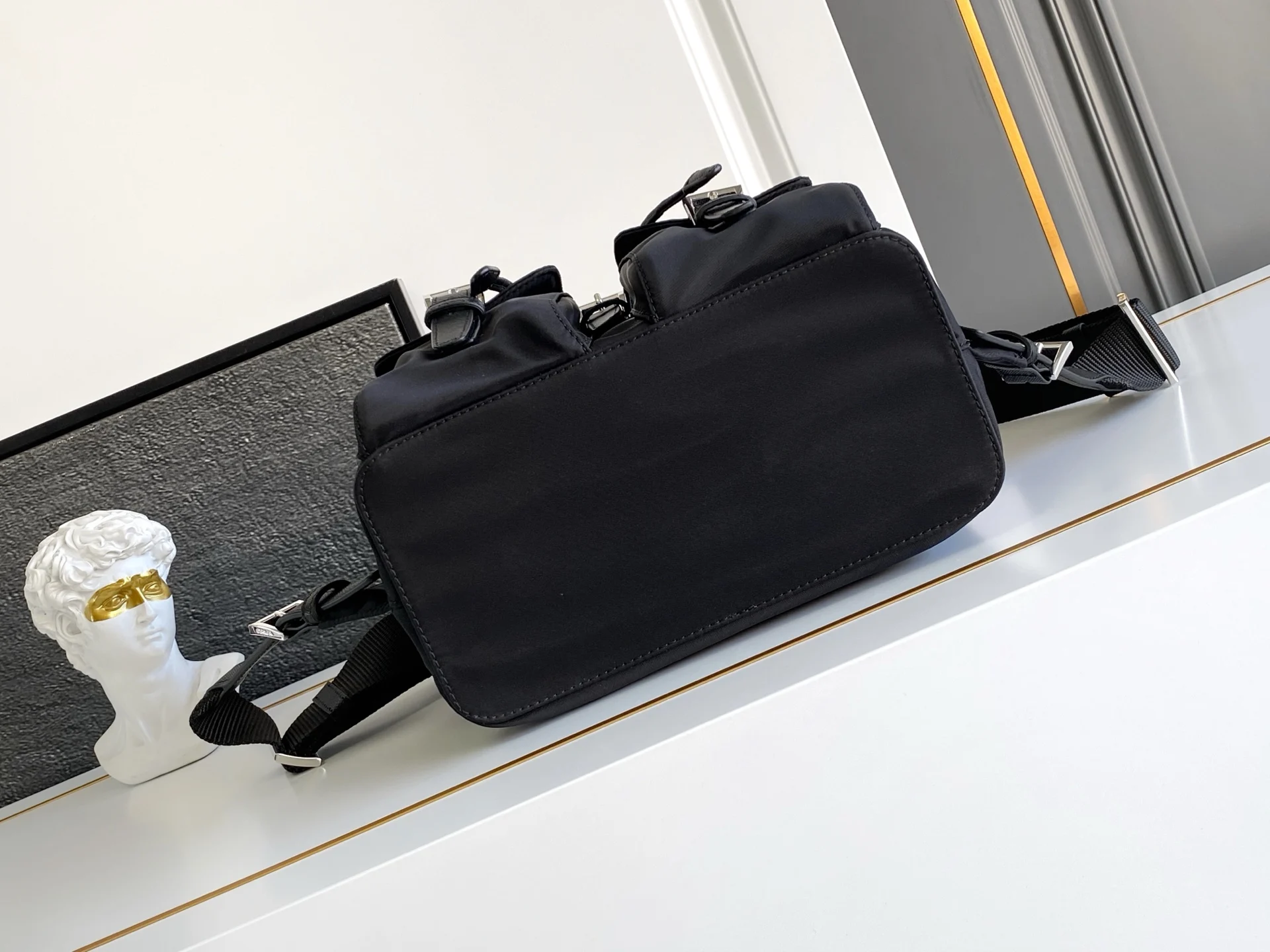 新款小号背包这款尼龙背包是Prad传统设计的组成部分 彰显着品牌的重要特质 创新性材质 奢华实用主义和经典重释 包身采用海洋塑料回收物提纯所制的Re-Nylon再生尼龙打造 现代感中透露出简约设计 彰显时尚优雅魅力 轻便又实用 上身效果超有范全面升级尼龙面料