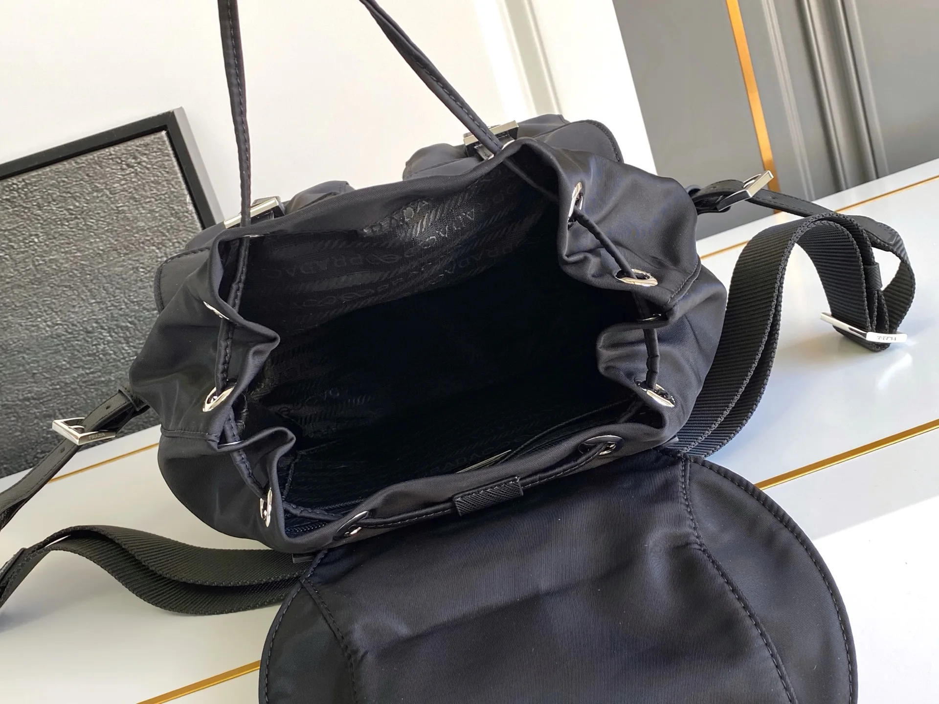 新款小号背包这款尼龙背包是Prad传统设计的组成部分 彰显着品牌的重要特质 创新性材质 奢华实用主义和经典重释 包身采用海洋塑料回收物提纯所制的Re-Nylon再生尼龙打造 现代感中透露出简约设计 彰显时尚优雅魅力 轻便又实用 上身效果超有范全面升级尼龙面料