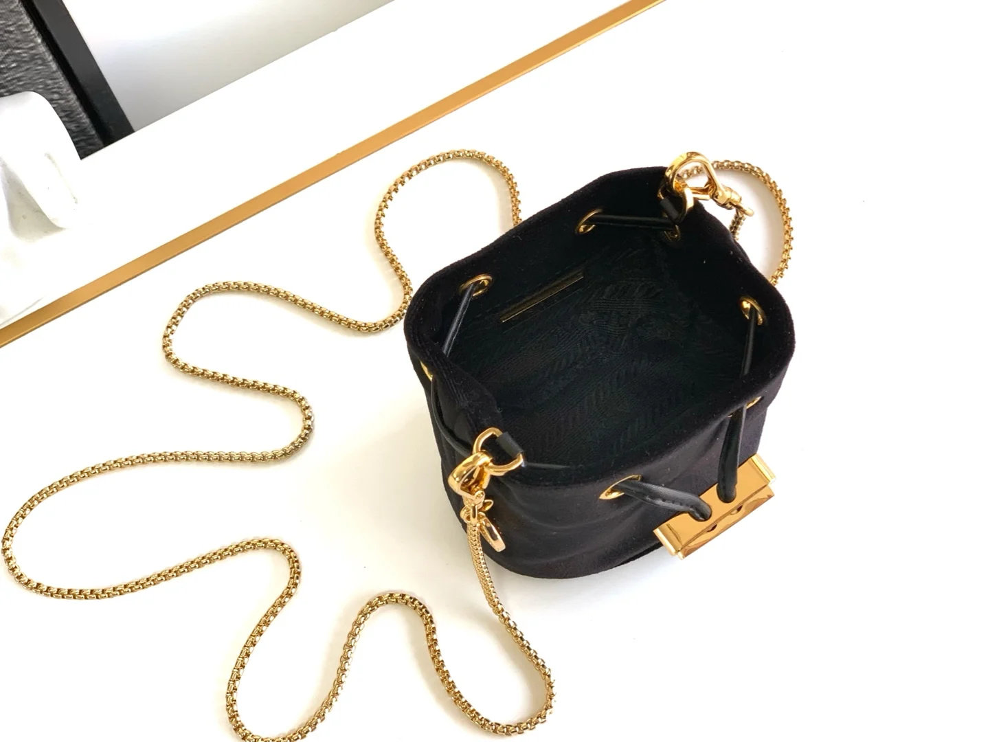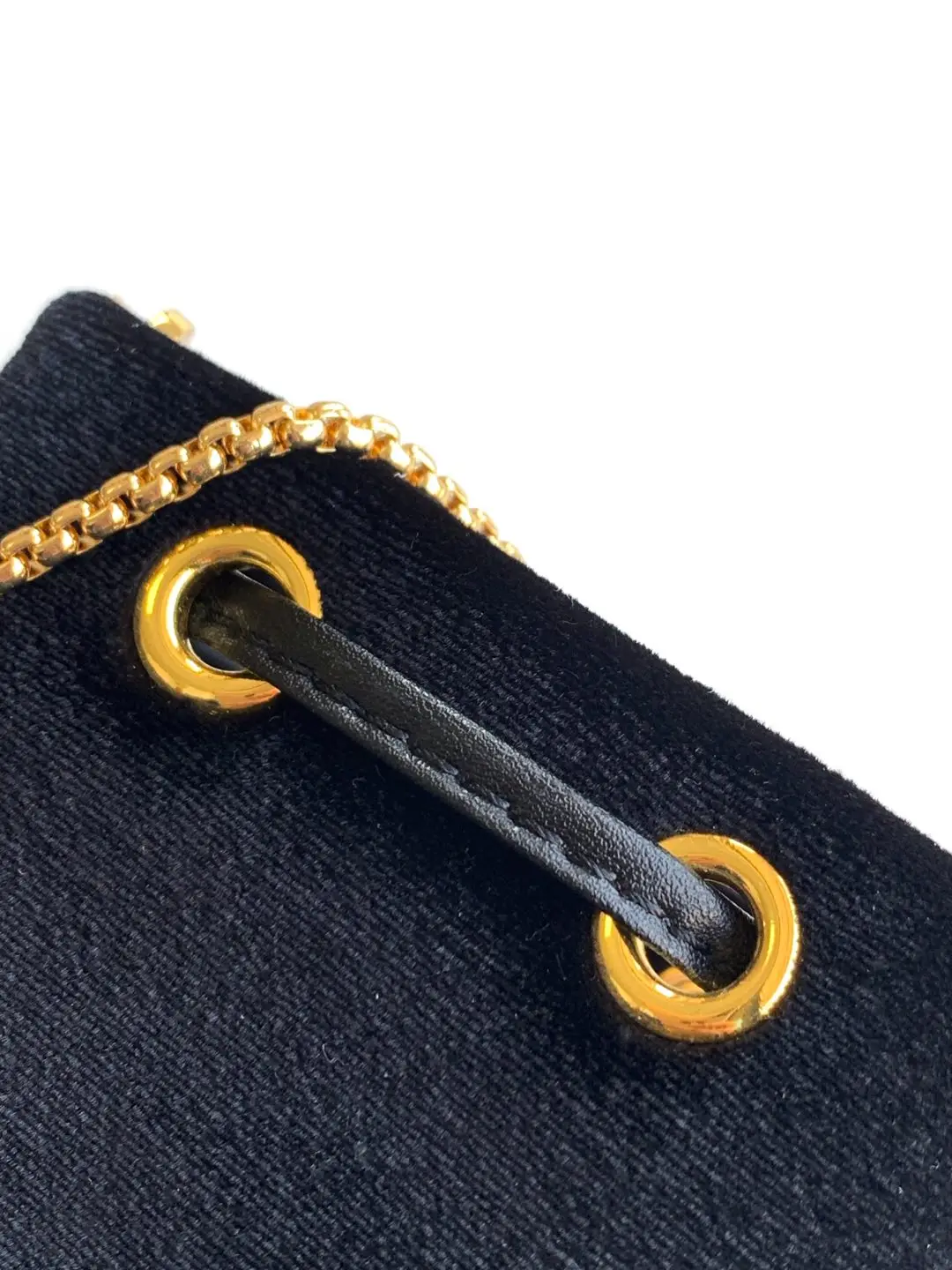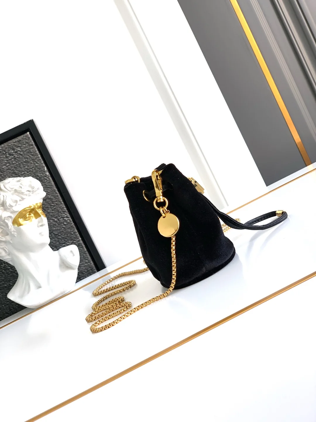 这款迷你抽绳手拿包配有肩带 灵感源自品牌资料库 金属铁琏可斜跨 太可爱了 效果非常吸眼 可仙可酷 是一款百搭实用的单品 难道你不心动 美妞们 赶紧入手吧