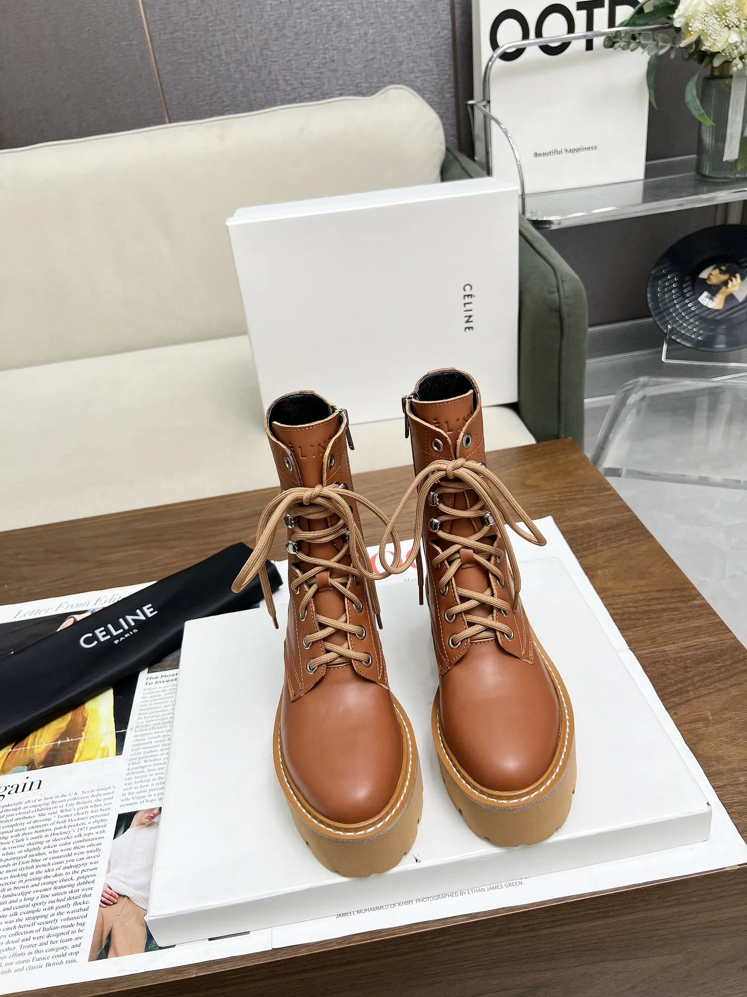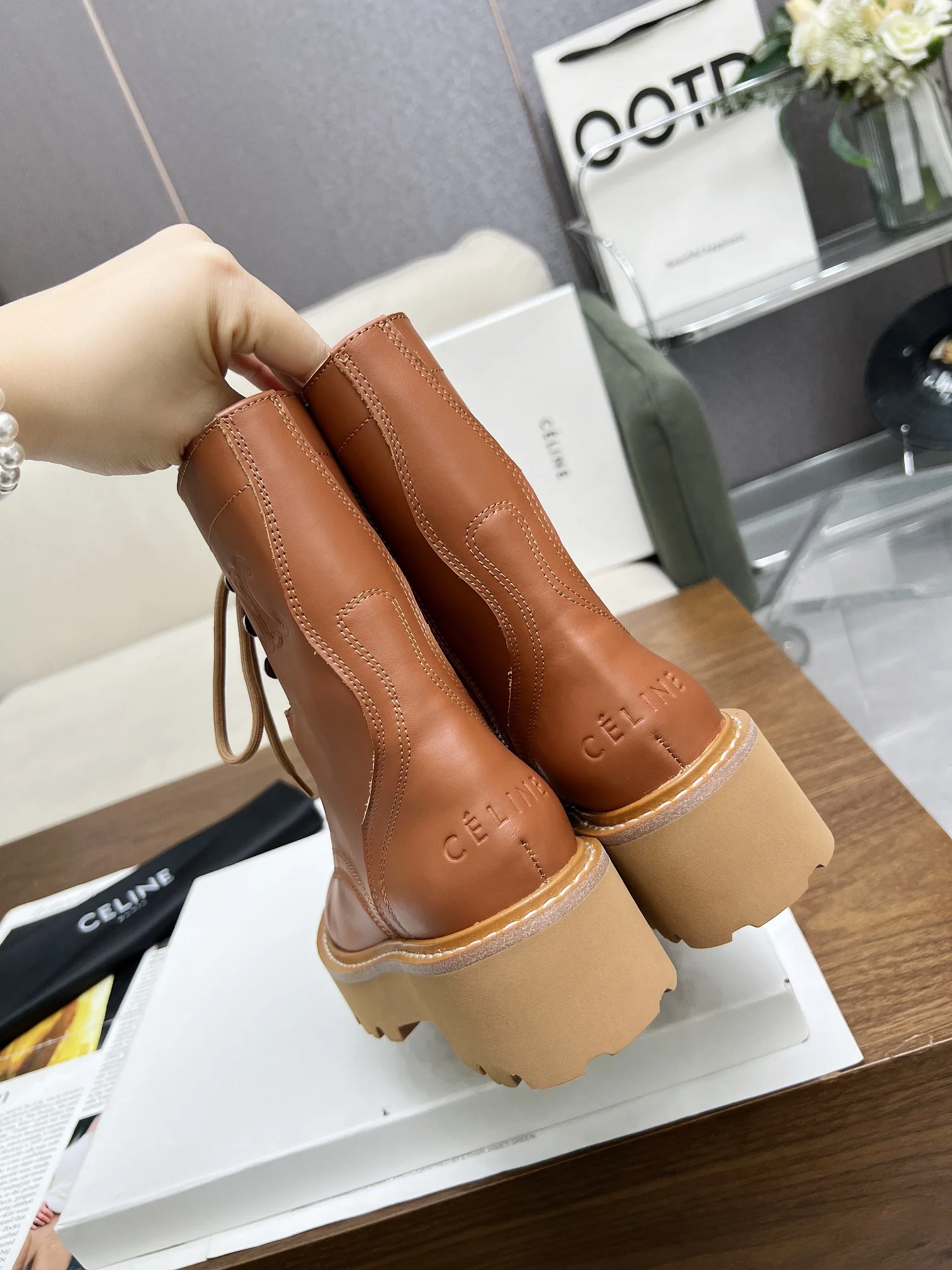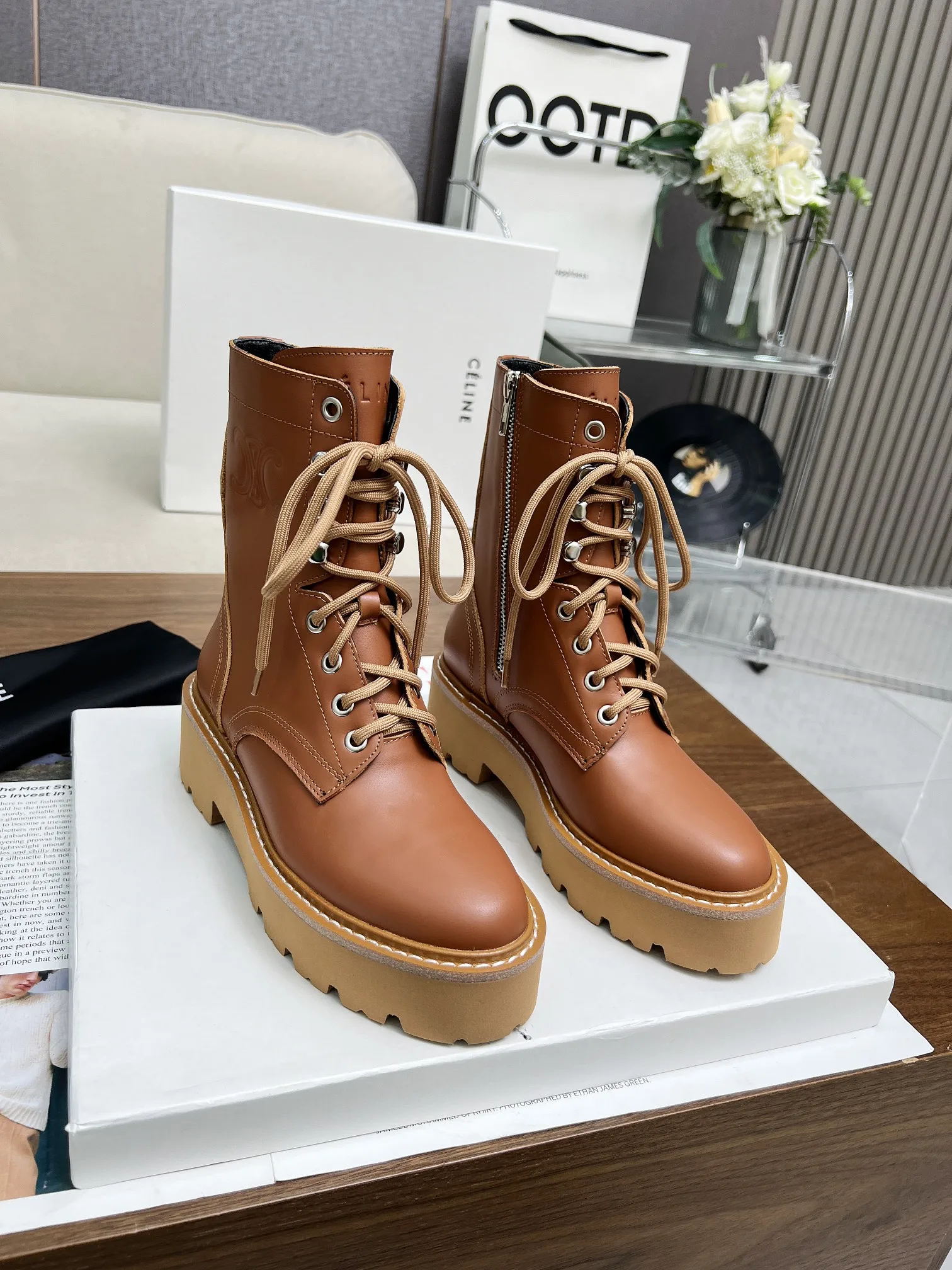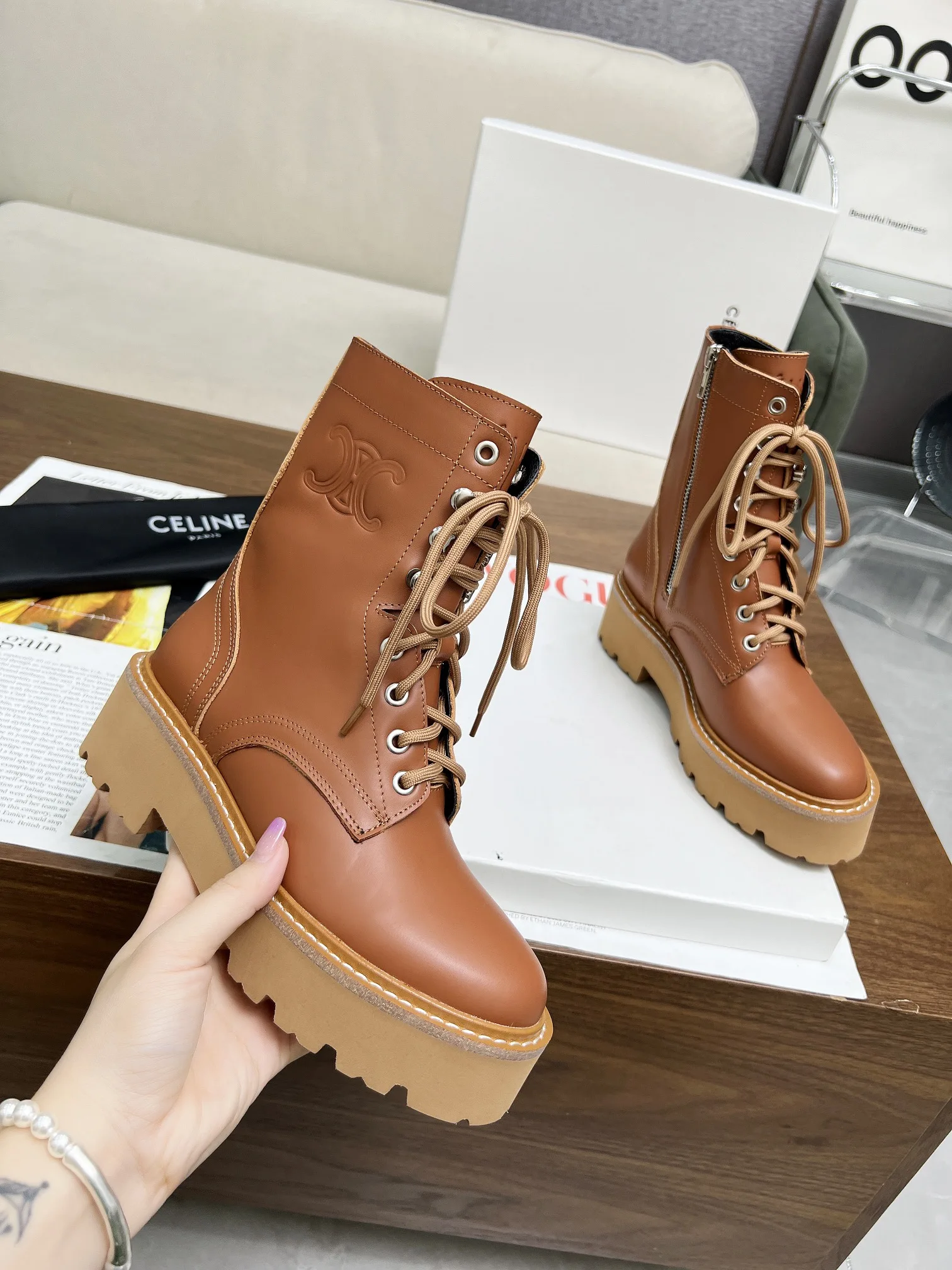 Celine 赛琳2024凯旋门马丁系带厚底平底粗跟粗靴 面料头层牛皮 内里羊 标准码数35/40 41 42订做不退不换